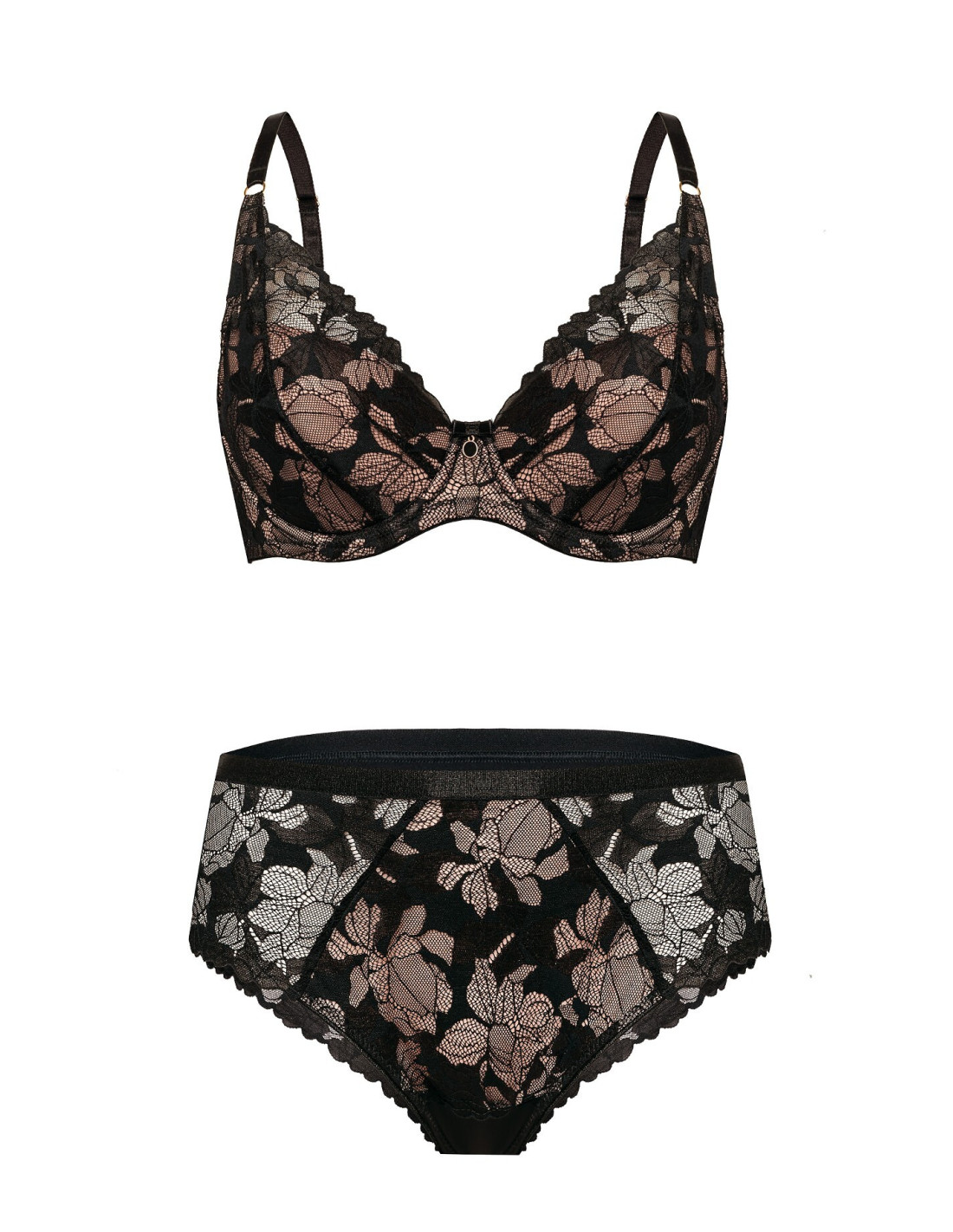 - pagamintos iš švelnių gėlėtų nėrinių su smėlio spalvos tinklelio pamušalu