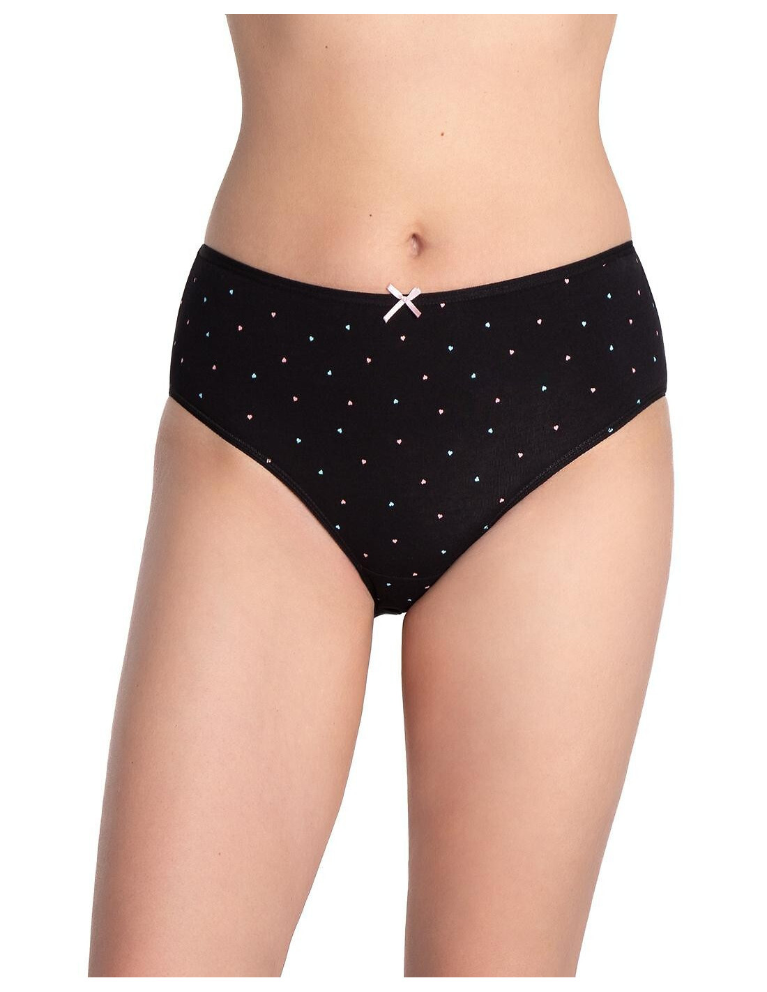 Medvilninės kelnaitės moterims - klasikinio kirpimo, bikinio stiliaus - plokščias elastingas juosmuo su lankeliu - šiek tiek padidinti klubai - supakuotos po 3 vienetus plastikiniame maišelyje