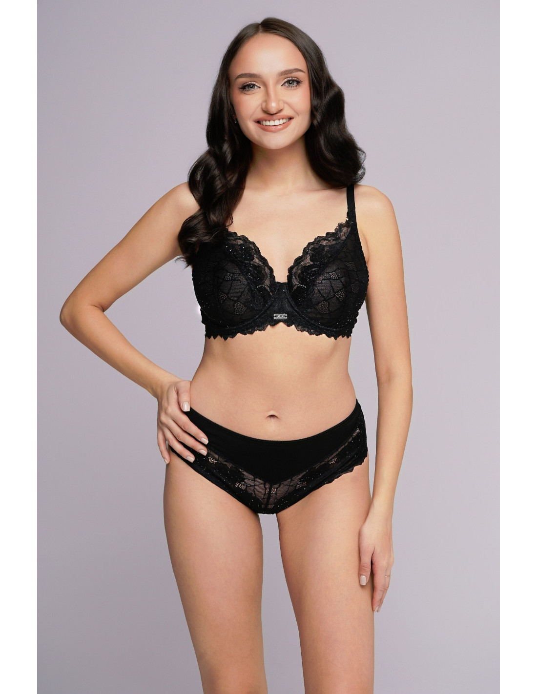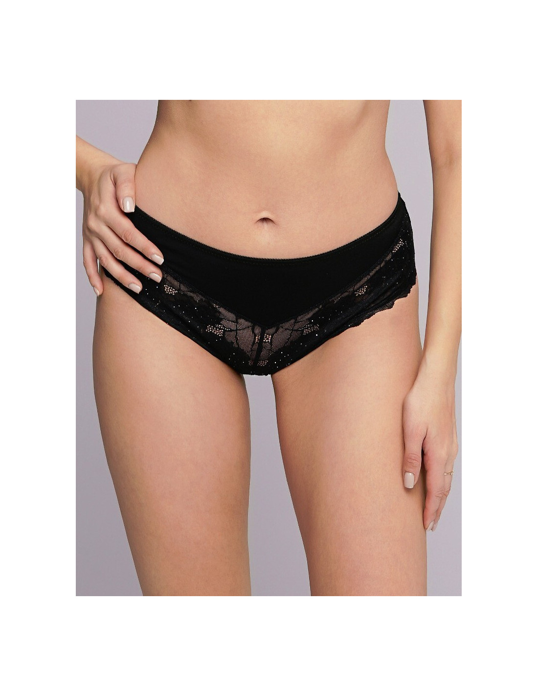 Moteriškas bikinio apatinis trikotažas - iš švelnių gėlių nėrinių su blizgiu brokatu ir švelnaus mikropluošto - modelis atidengia sėdmenis