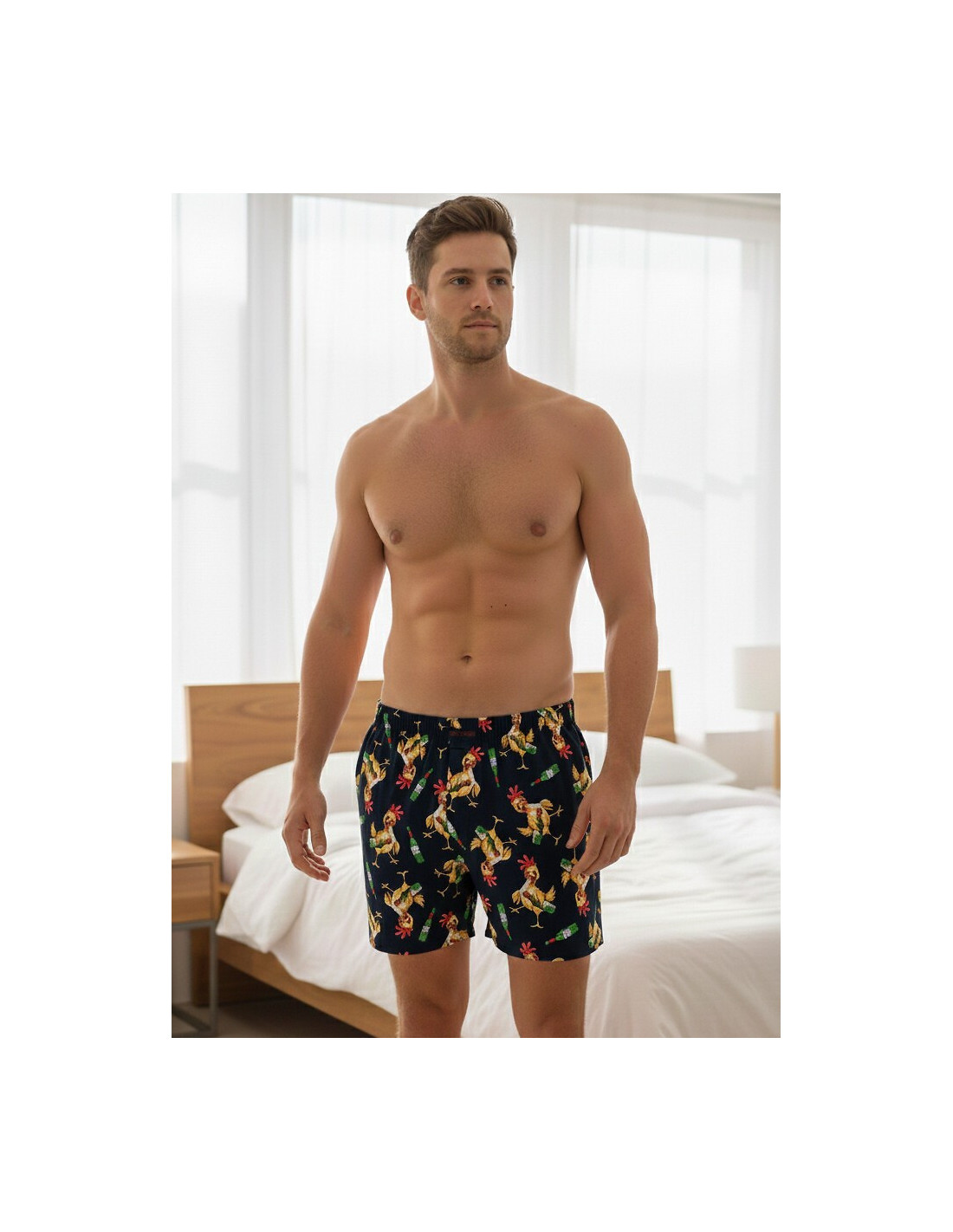 Bokserki męskie - wygodny, luźny fason - wysokiej jakości bawełna - wzór w koguciki - rozporek zapinany na guzik