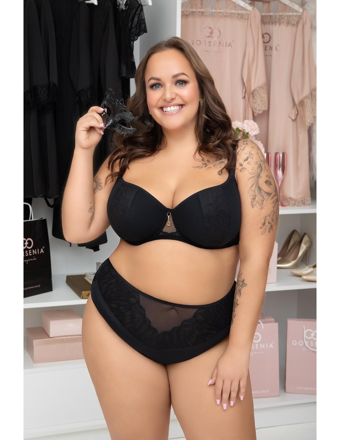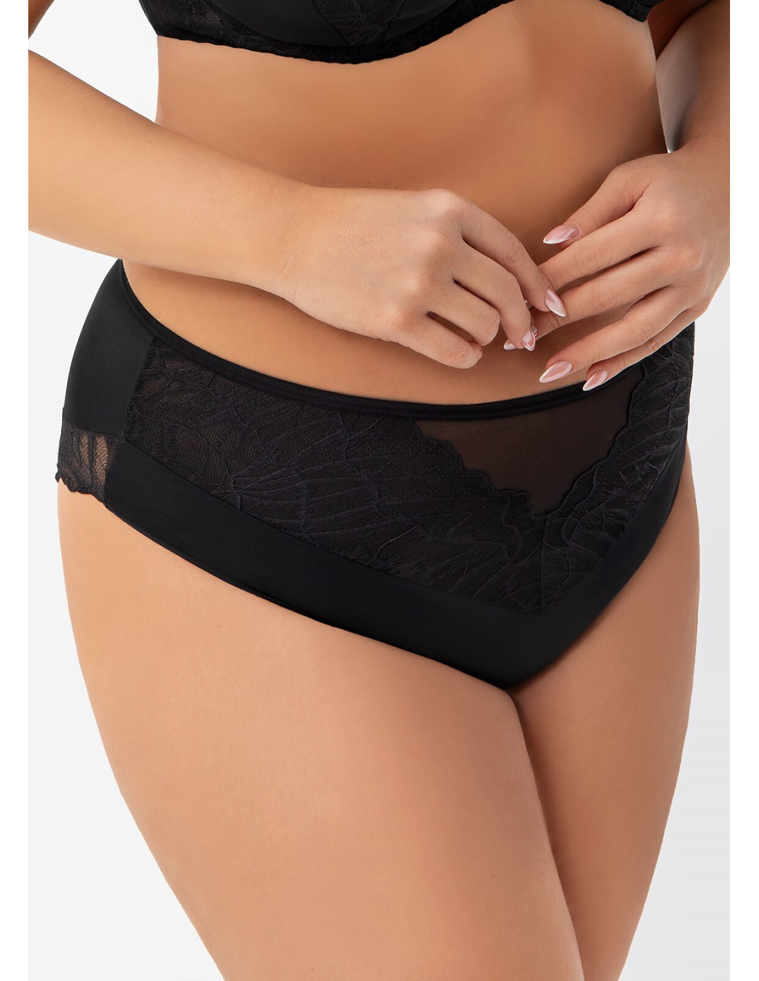 Figi damskie - zabudowany fason zasłaniający prawie całe pośladki - wykonane z kryjącej mikrofibry, elastycznego tiulu bei koronki
