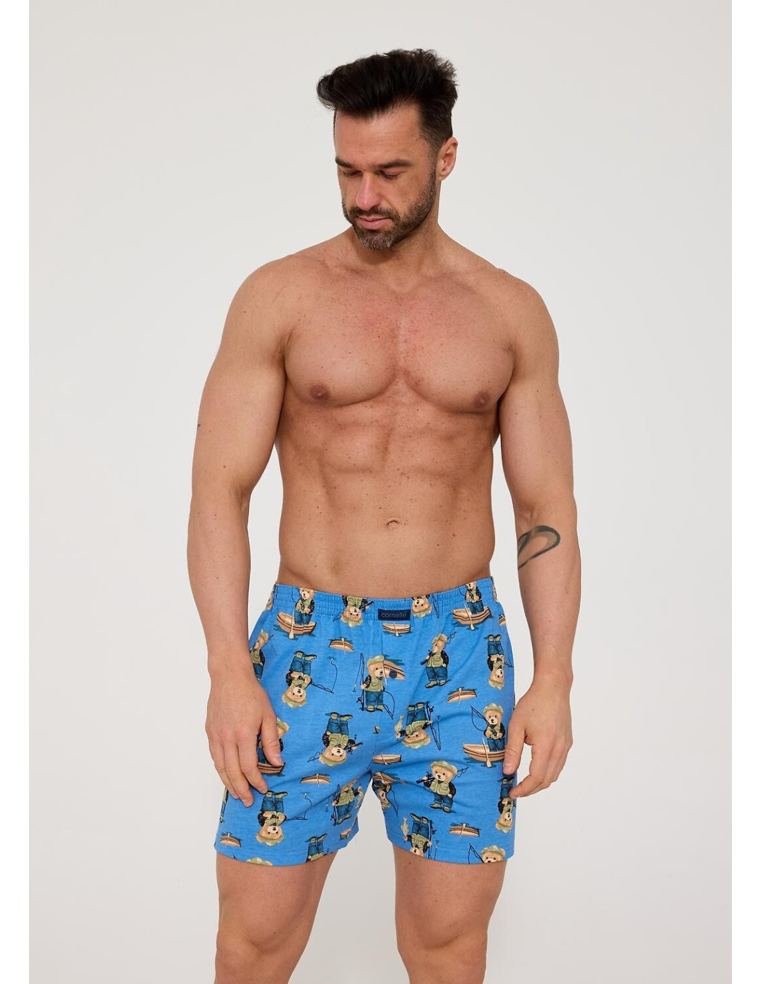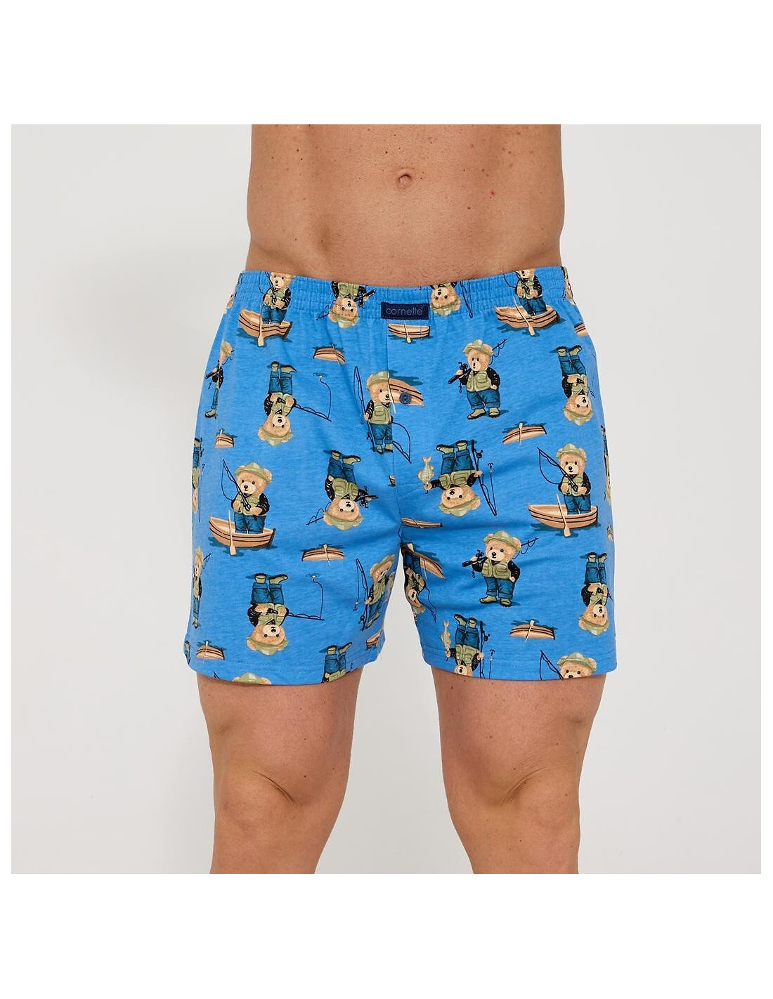 Bokserki męskie - wygodny, luźny fason - wysokiej jakości wzorzysta bawełna - rozporek zapinany na guzik