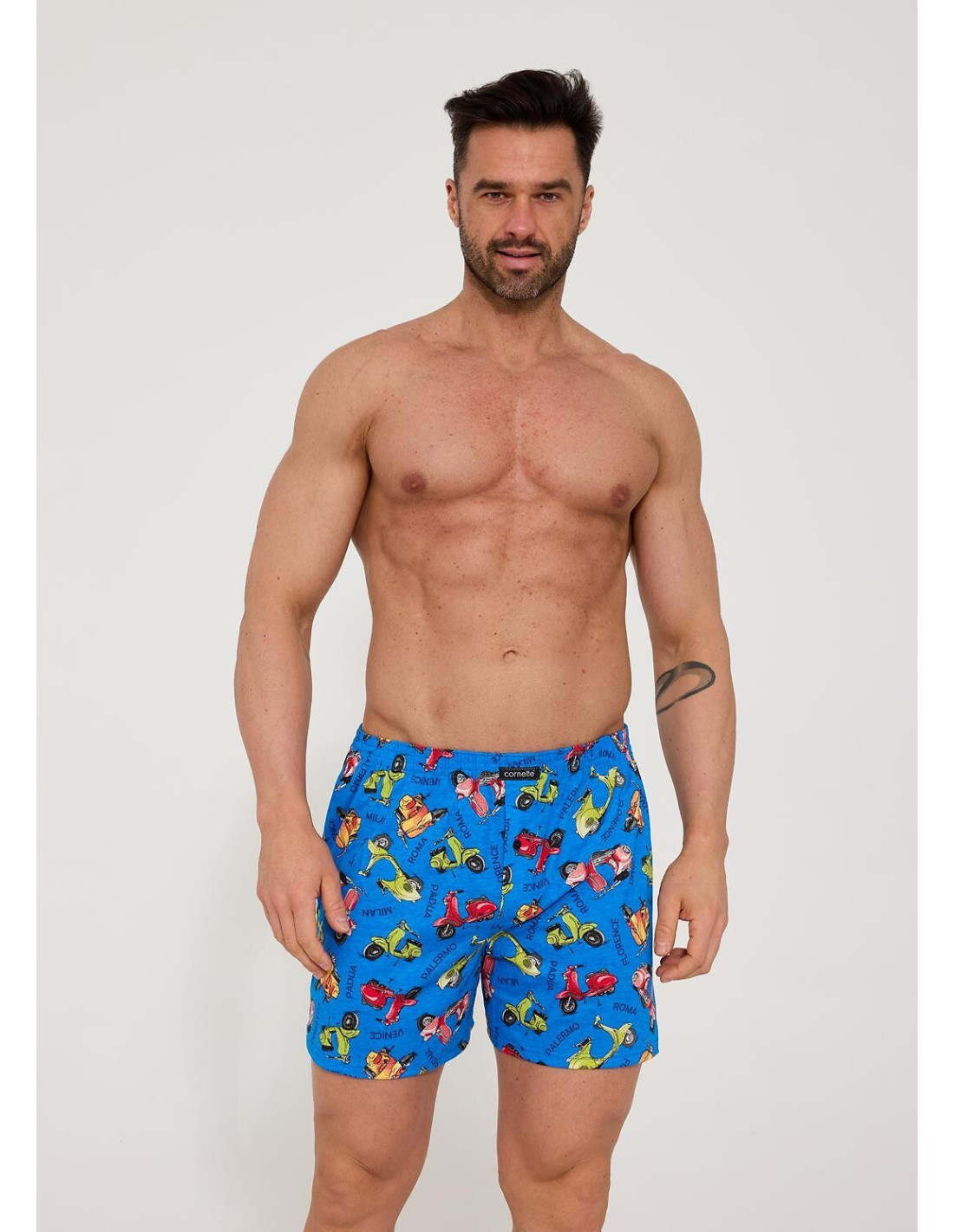 Bokserki męskie - wygodny, luźny fason - wysokiej jakości wzorzysta bawełna - rozporek zapinany na guzik