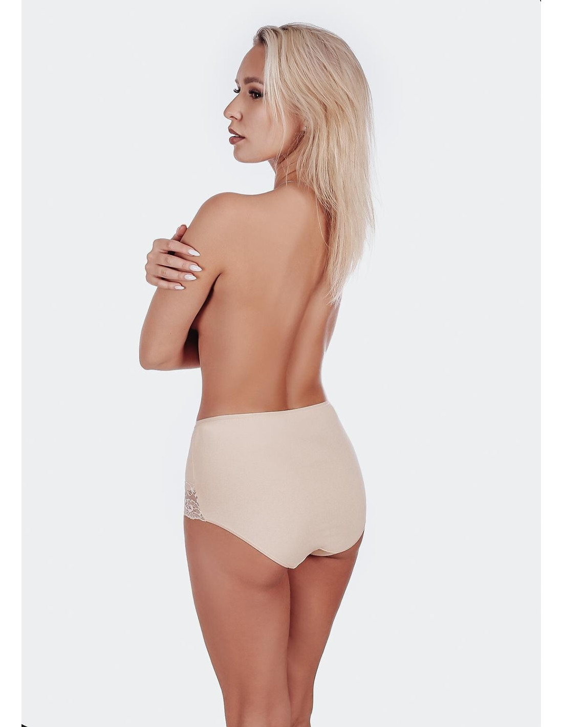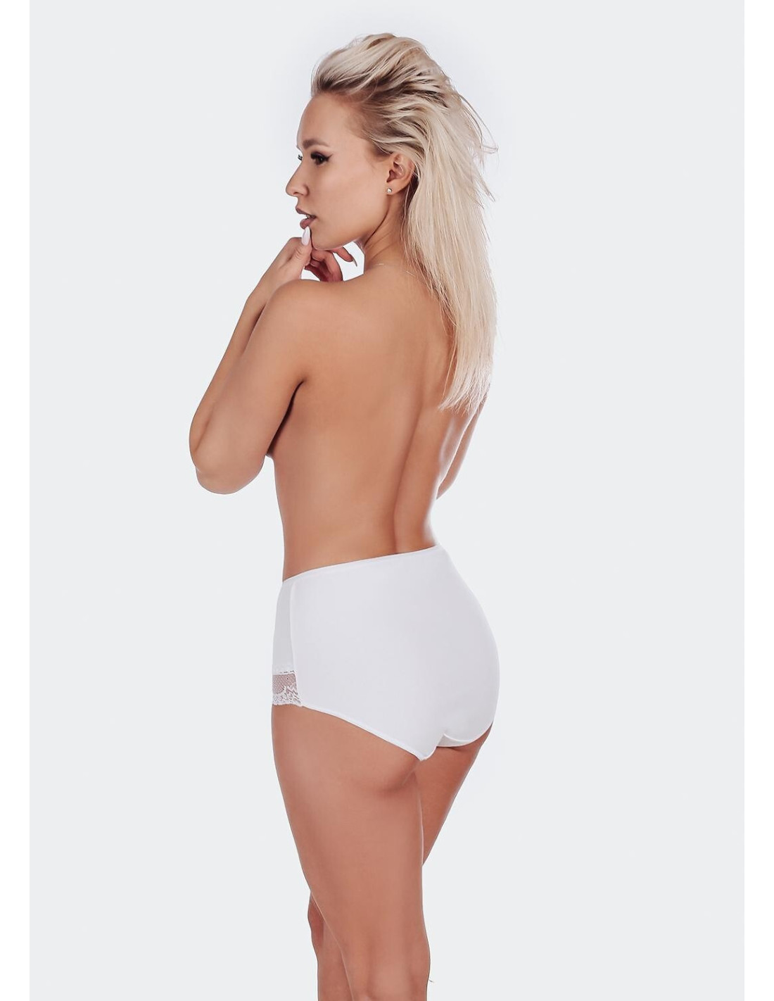 Figi damskie - wysokie, zabudowane biodra - z gładkiej bawełny - nogawki wykończone ażurową koronką o kwiatowym motywie