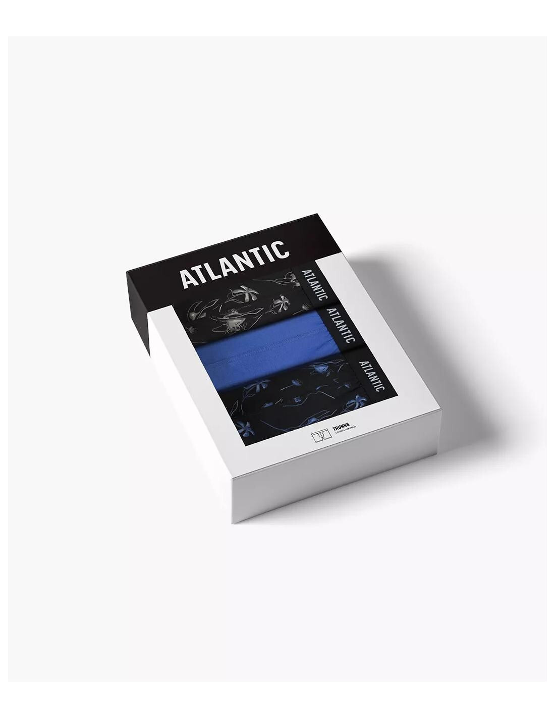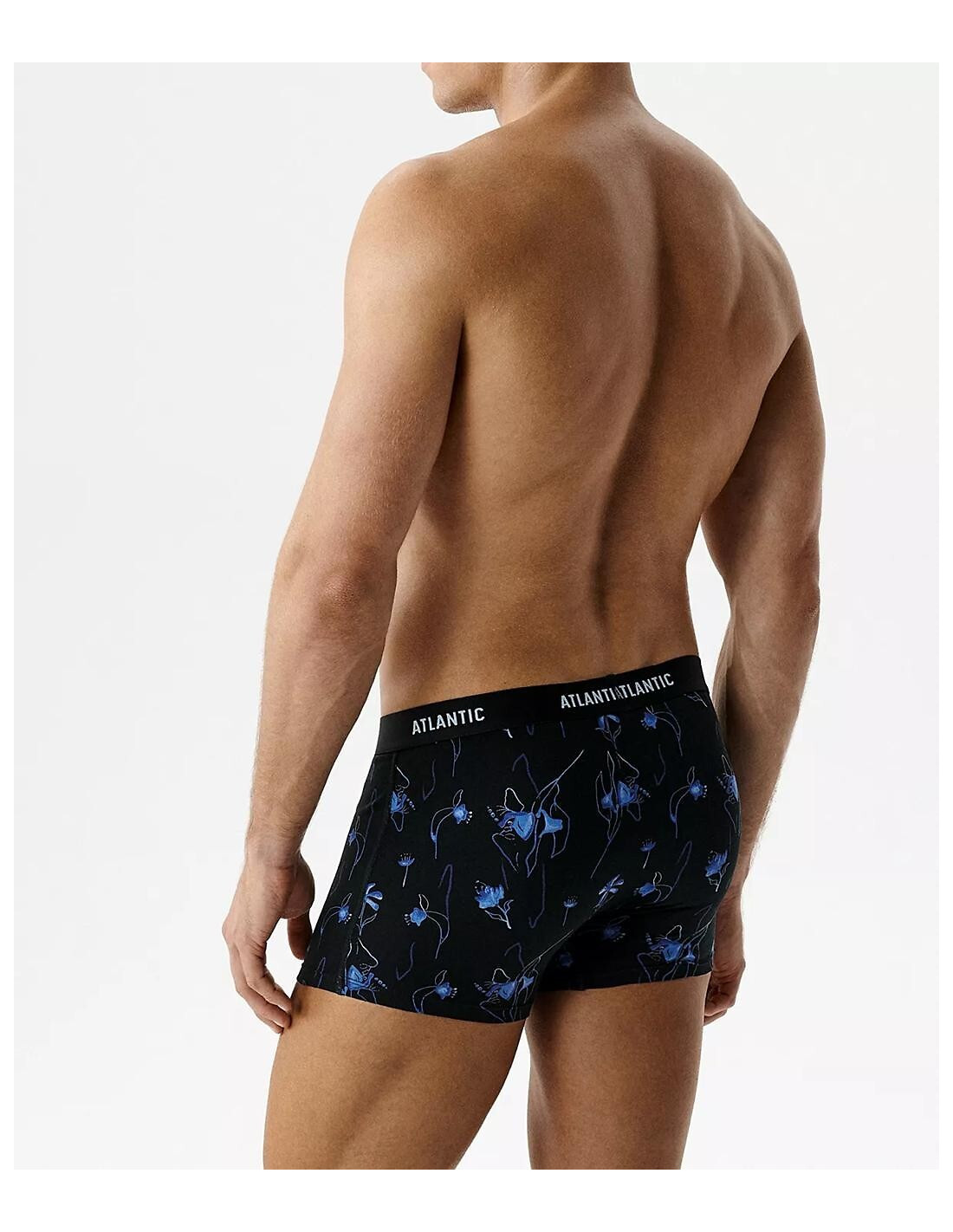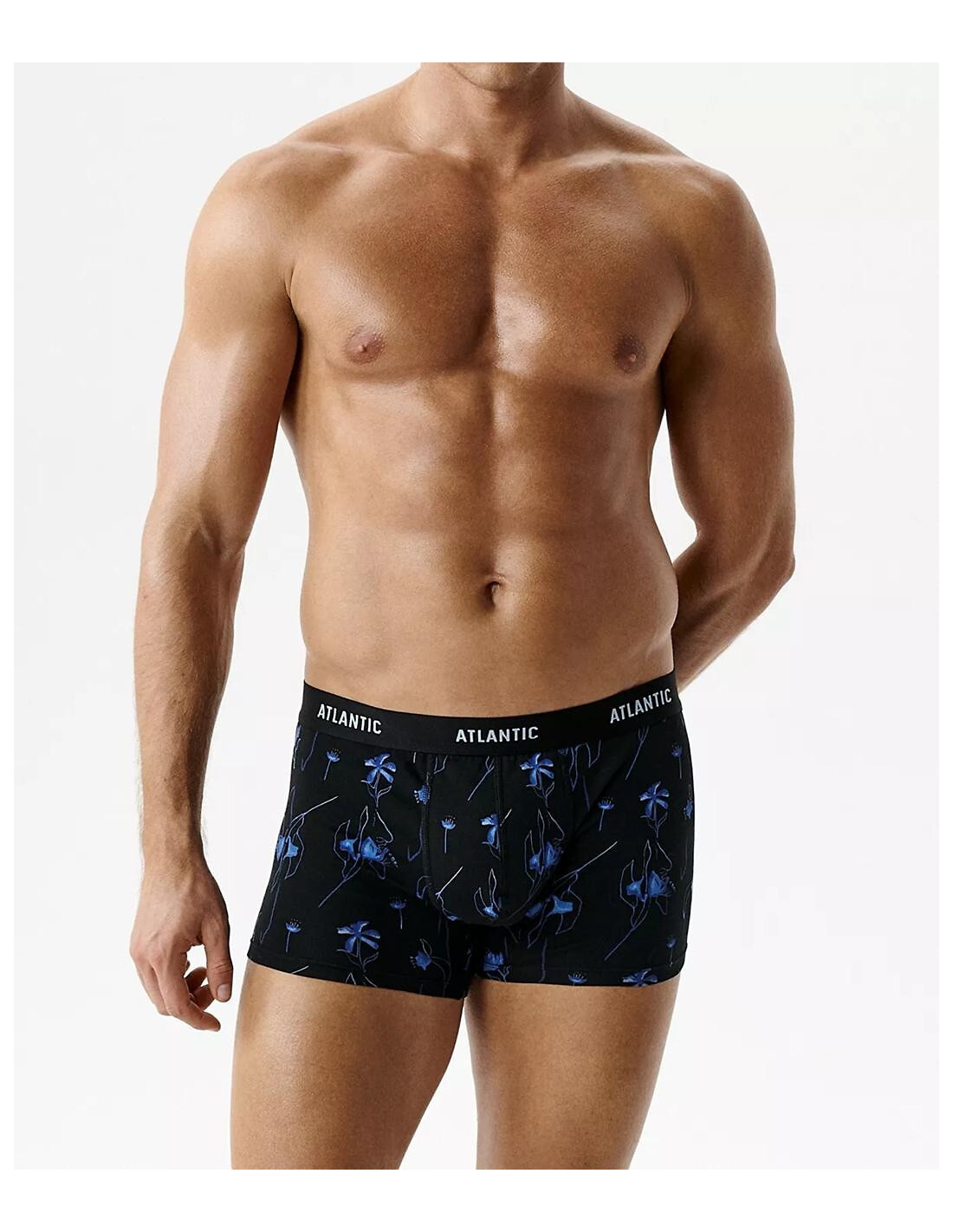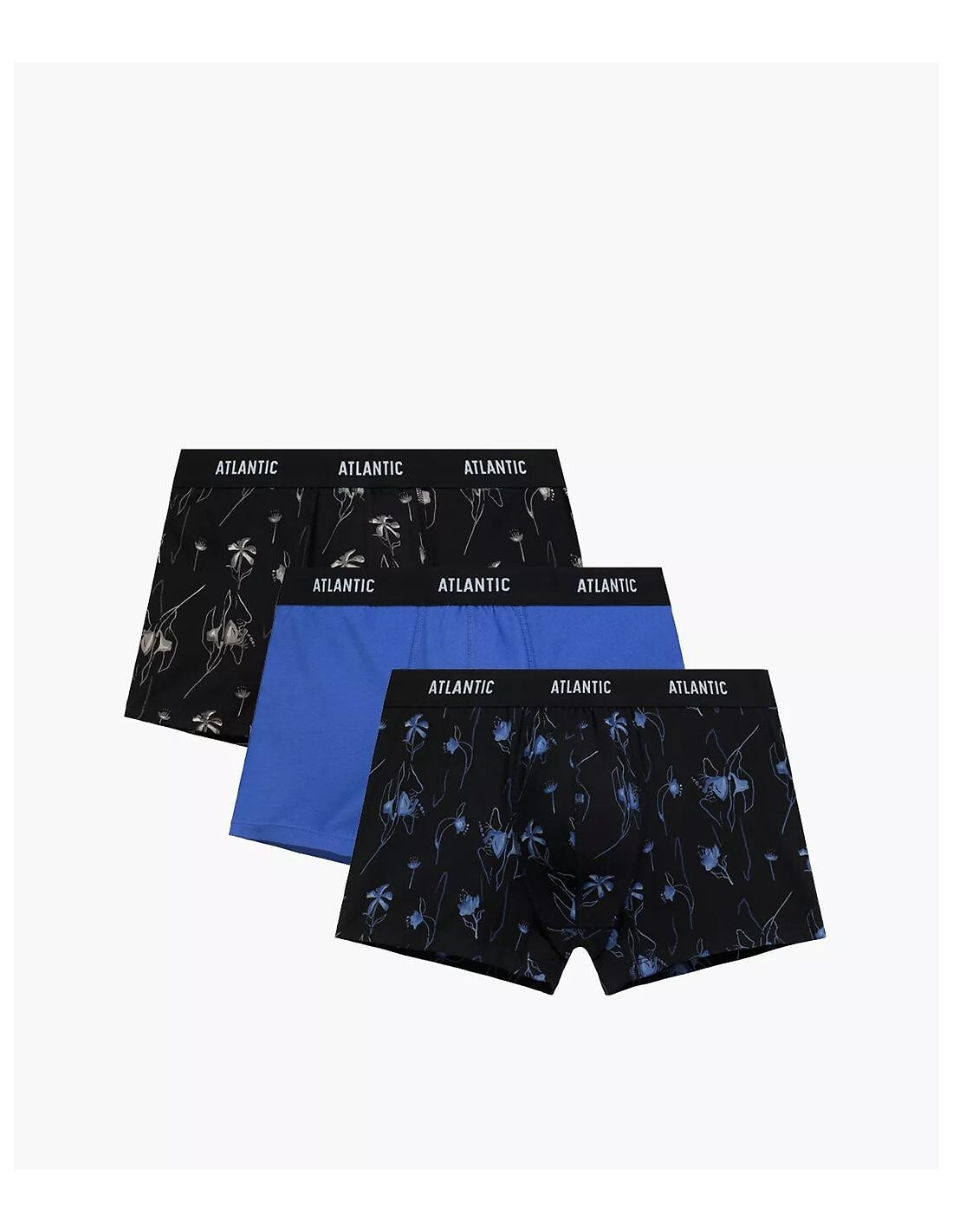 Bokserki męskie - delikatna i miła w dotyku bawełna - wzór w kwiaty i jednolite - w pasie szeroka guma z logo ATLANTIC - pakowane w pudełko po 3 sztuki