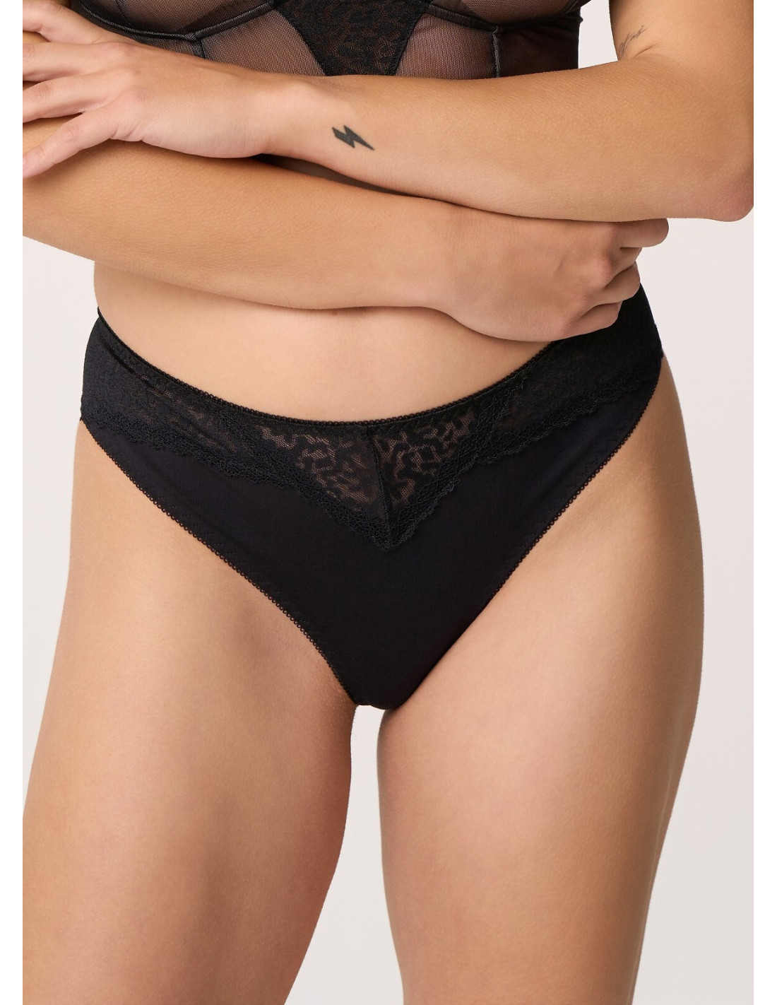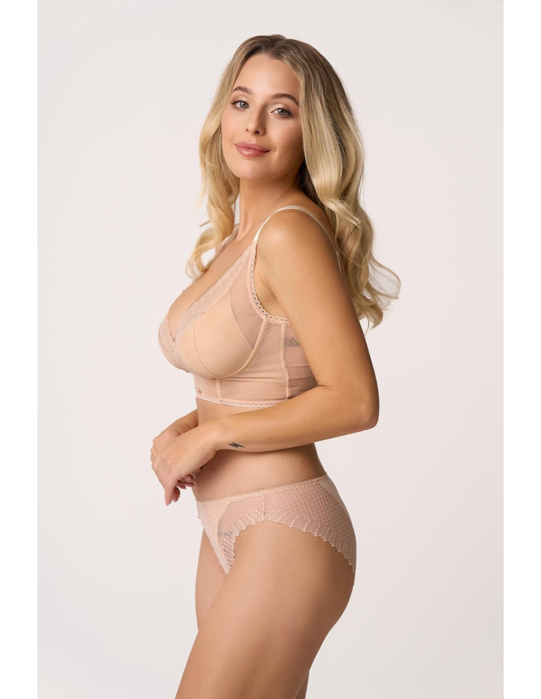 Figi damskie - lasyczny krój - wykonane z delikatnej bawełny i miłej w dotyku koronkowej siateczki - płaskie wykończenia