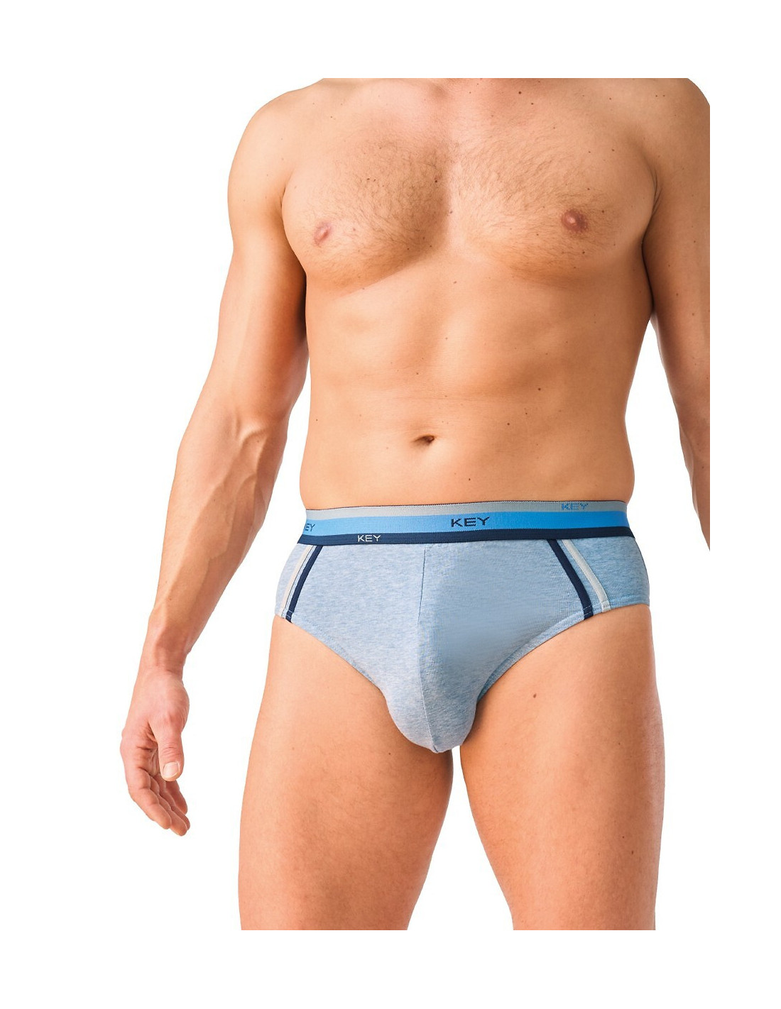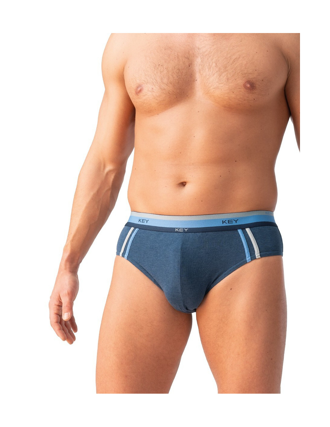 Slipy męskie - aukštos kokybės melanžowa bawełna - w pasie szeroka guma w paski z logo firmos - po bokach kontrastujące wypustki - pakowane w pudełko po dwie sztuki