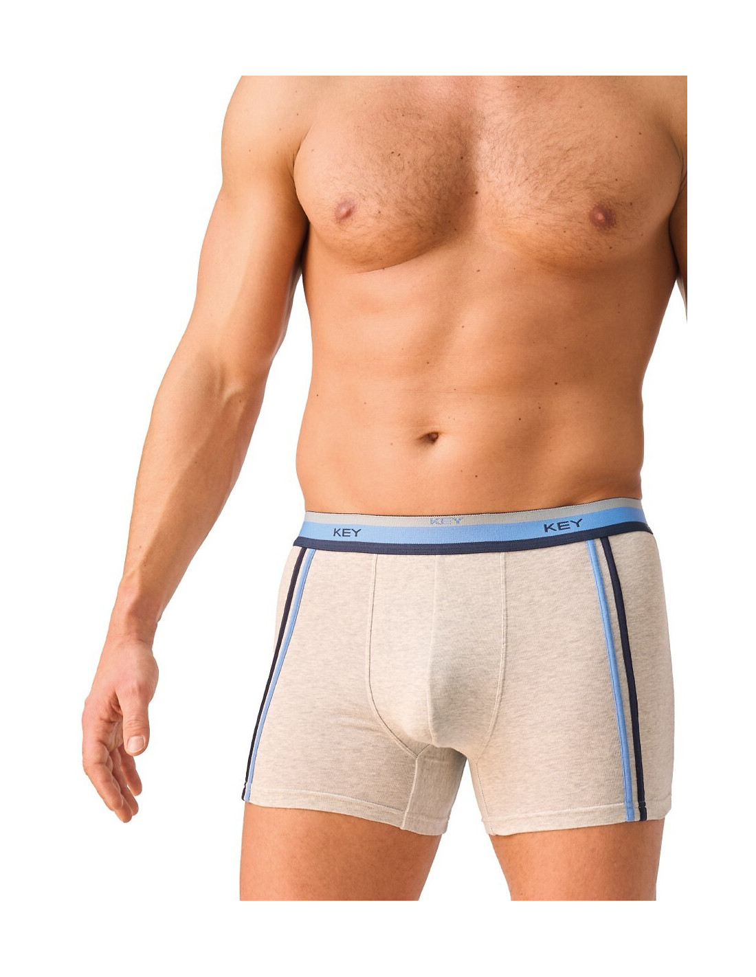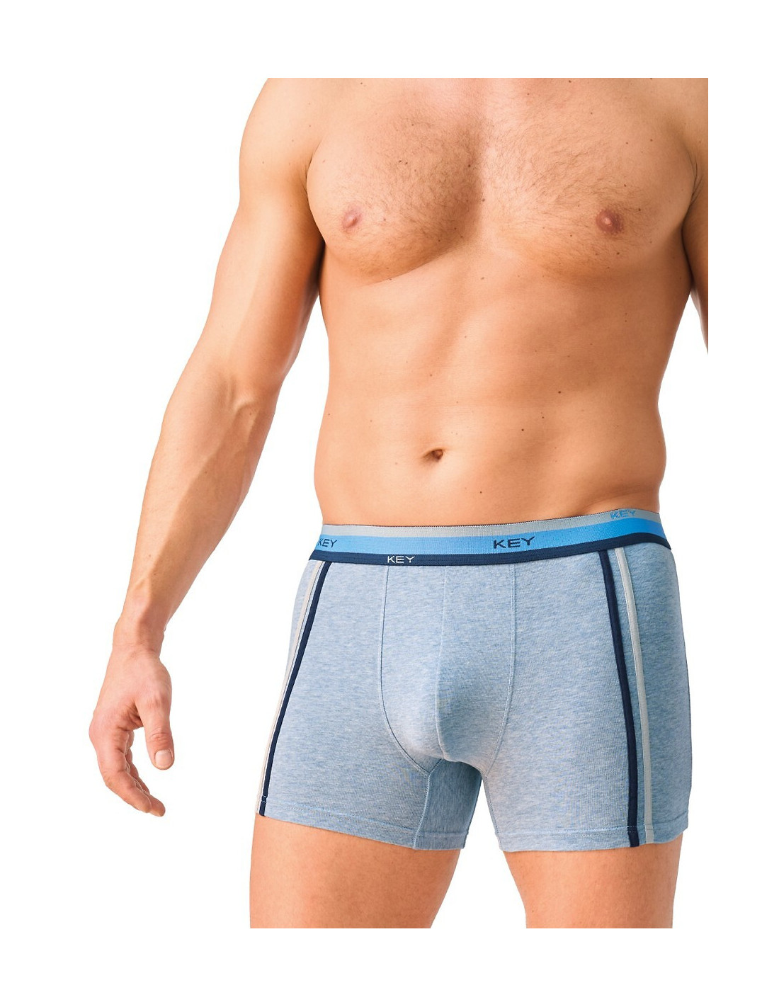 Bokserki męskie - aukštos kokybės bawełna - w pasie guma išorna w paski z logo KEY - nogawki z kontrastującymi lampasami - nieuciskająca nogawka - pakowane w pudełko