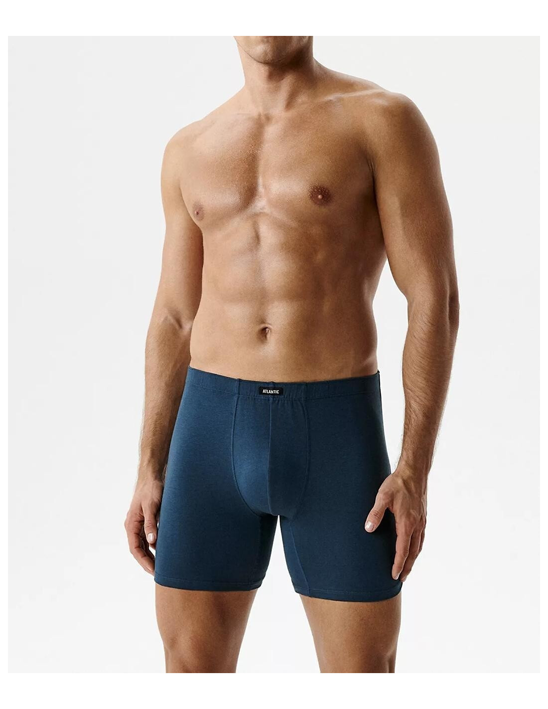 Bokserki męskie - minkka dzianina - wydłużone nogawki - w pasie wygodna guma z logo ATLANTIC - dopasowane do ciała - pakowane w pudełko po 2 sztuki