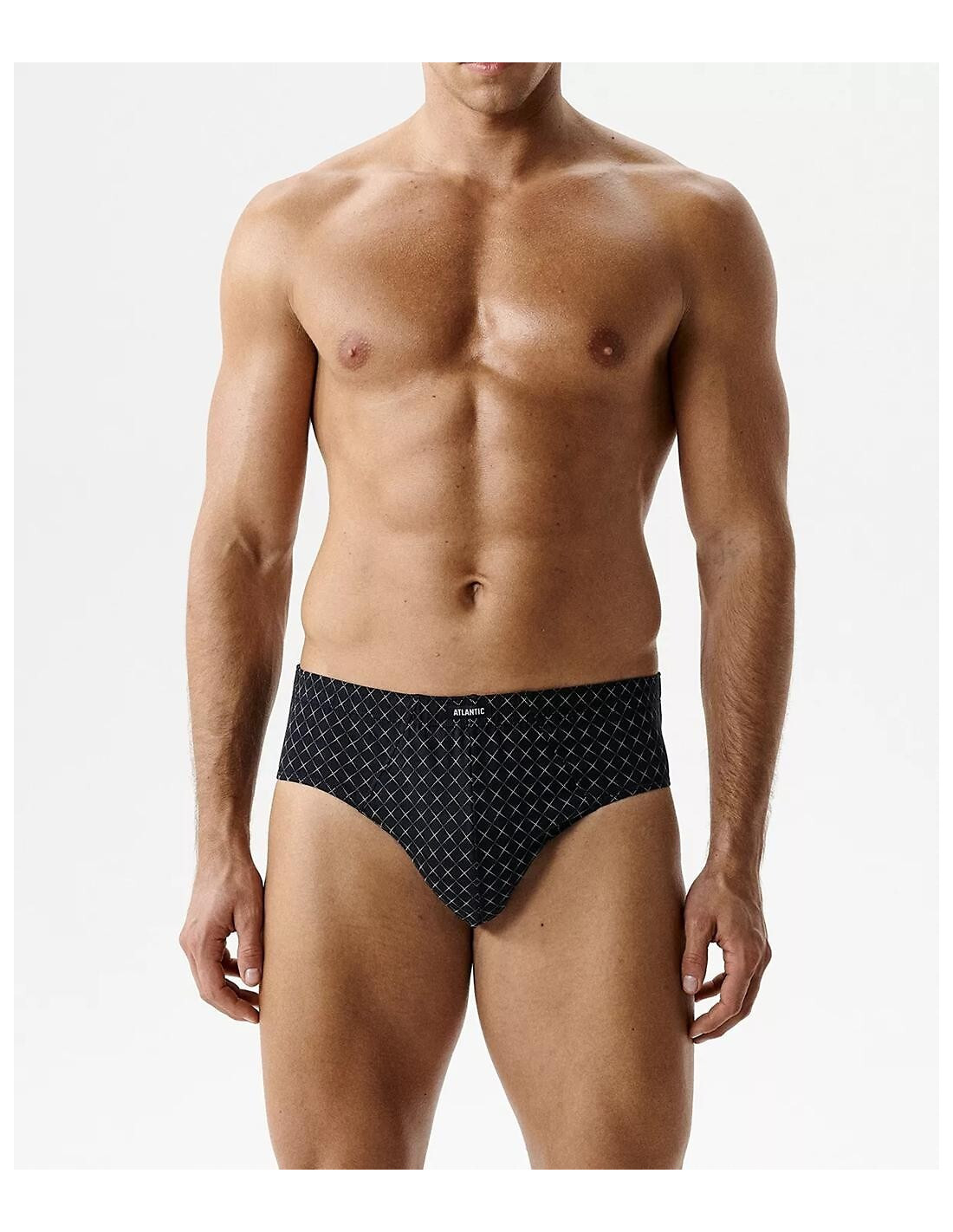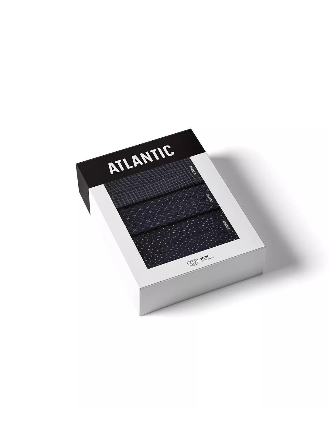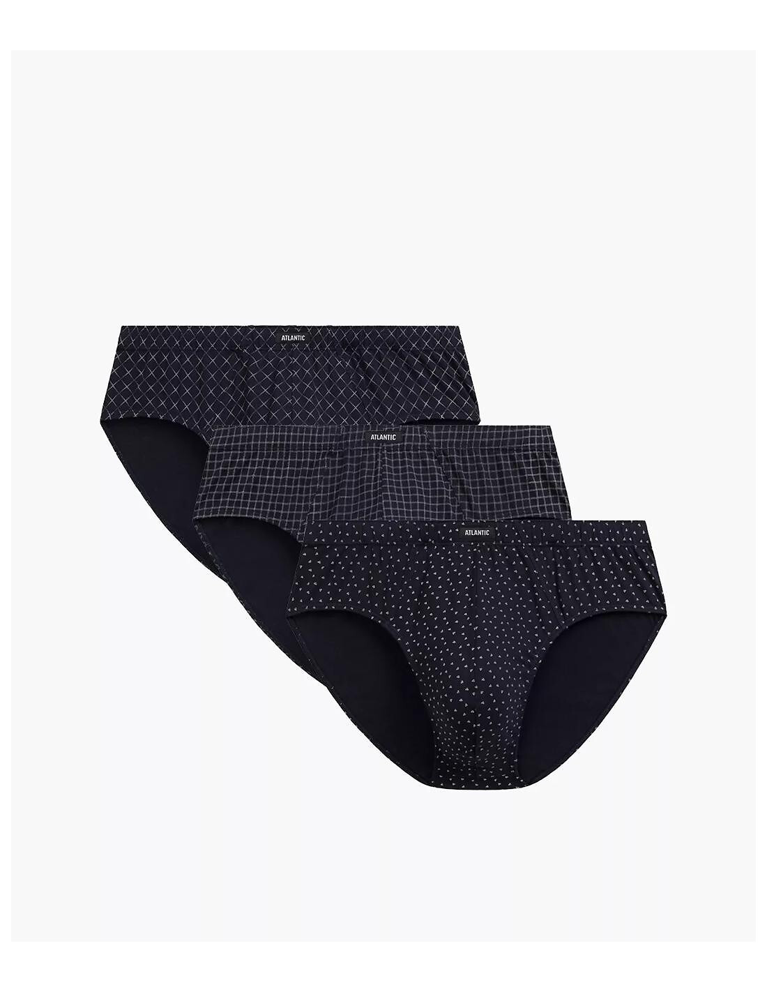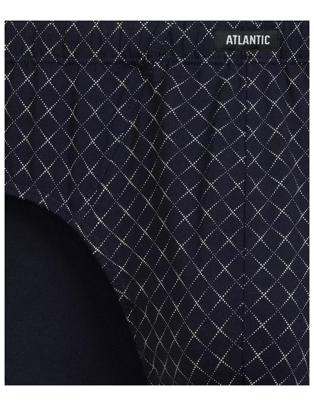 Klasyczne slipy męskie - miękka, wzorzysta bawełna - wygodna guma obszyta bawełną z naszywką z logo ATLANTIC - szerszy bok - dopasowane do sylwetki - pakowane w pudełko po 3 sztuki