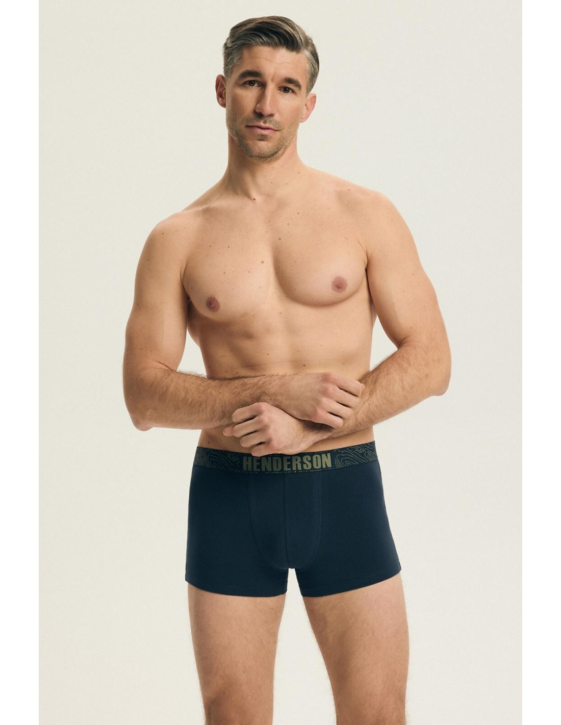 Bokserki męskie - aukštos kokybės bawełna - w pasie szeroka guma z logo firmos - nogawka tipo trumpa koja - pakowane w pudełko po dwie sztuki w kolorze khaki i granatowym