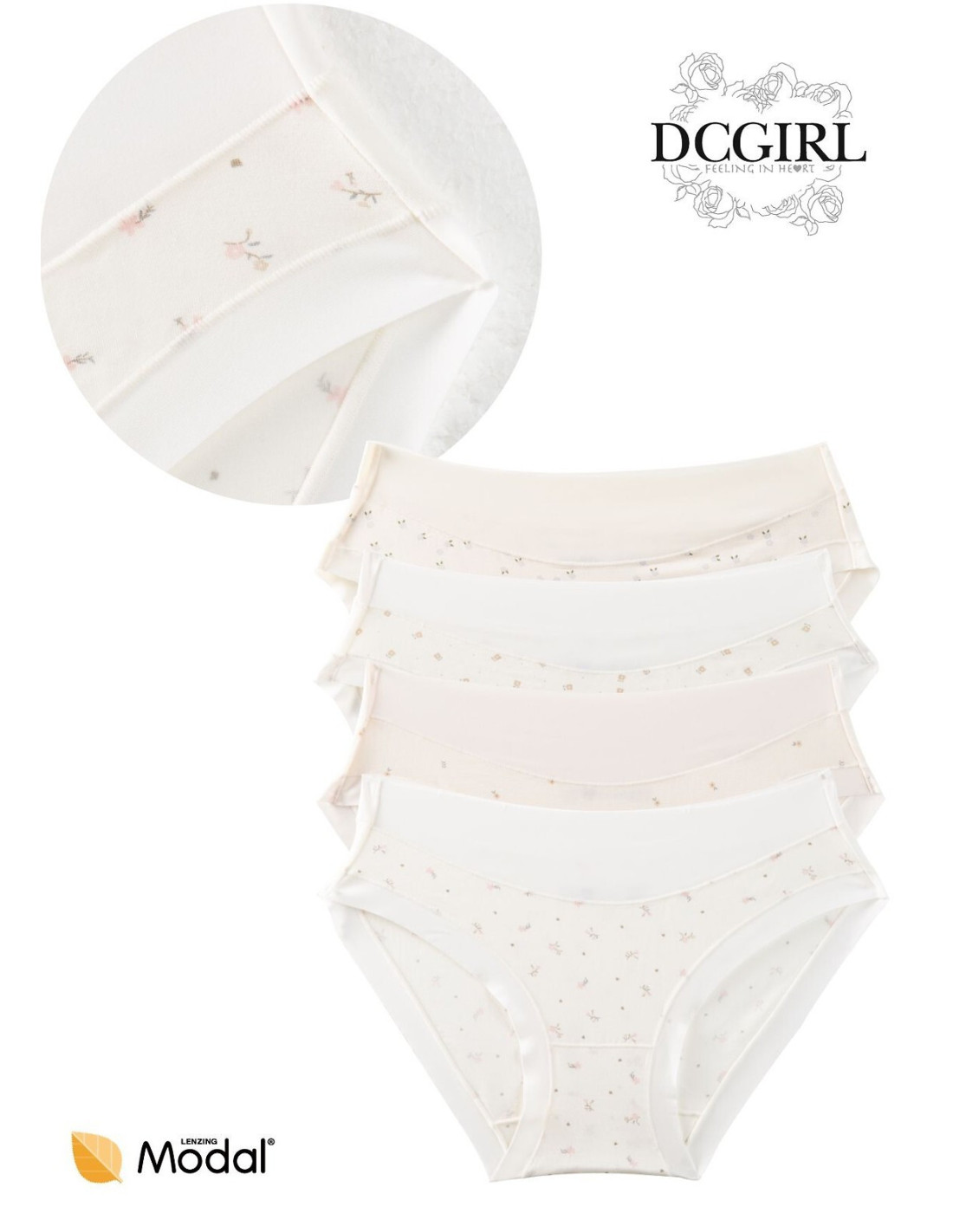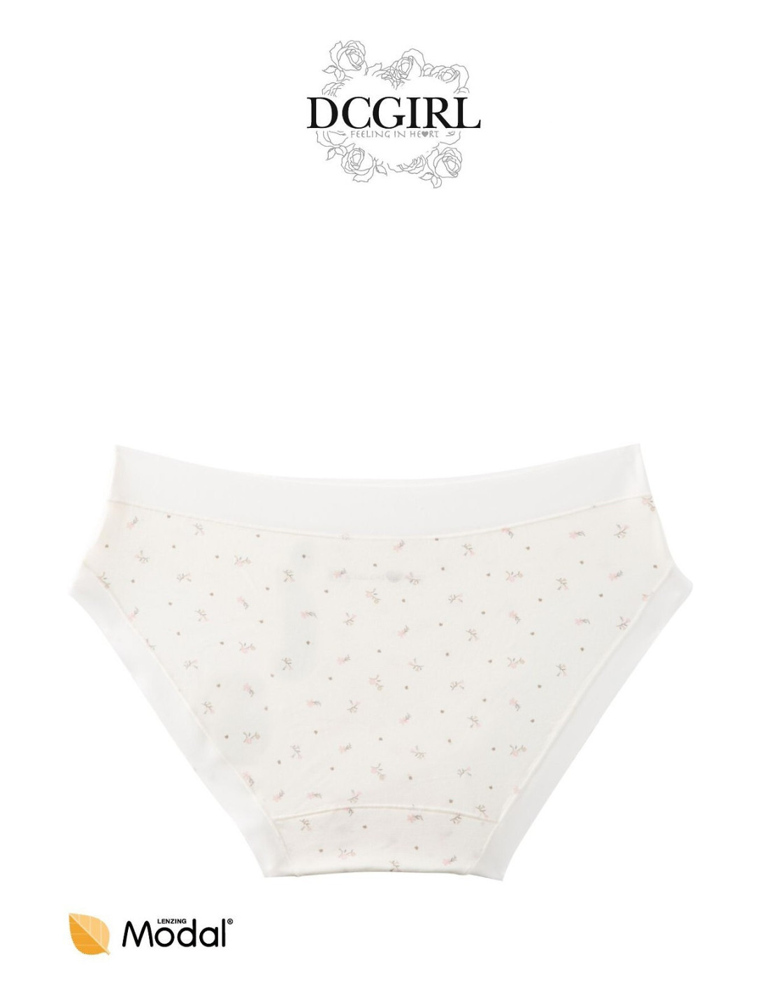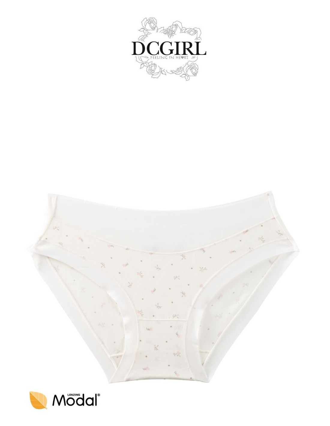 Figi damskie - z miłego dla ciała modalu - print w kwiatki - wysoka linia talii - pas i nogawki jednolite, cięte laserowo - pakowane w foliowy woreczek po 12 sztuk - kolory w paczce : ecru, waniliowy, j.różowy