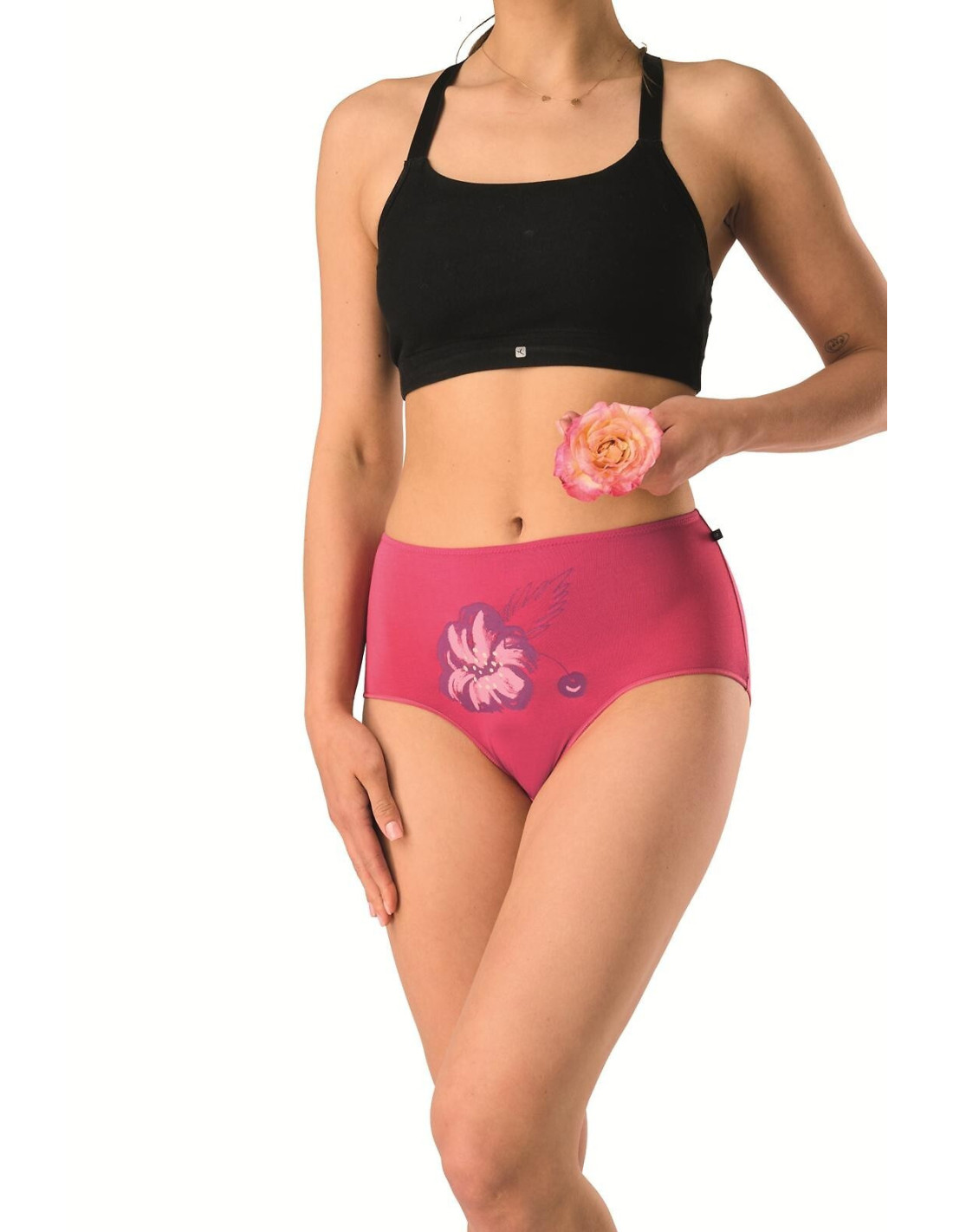 Figi damskie o kroju maxi bikini - wysoko zabudowane, z szerszymi bokami - wykonane z wysokiej kokybės włókna bambusowego - w talii płaska gumka - pakowane w pudełko po dwie sztuki