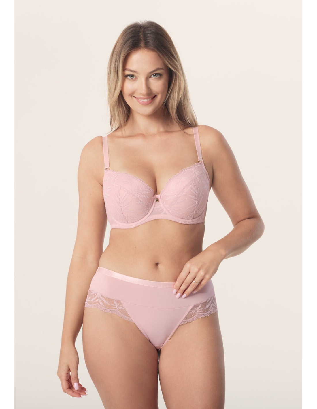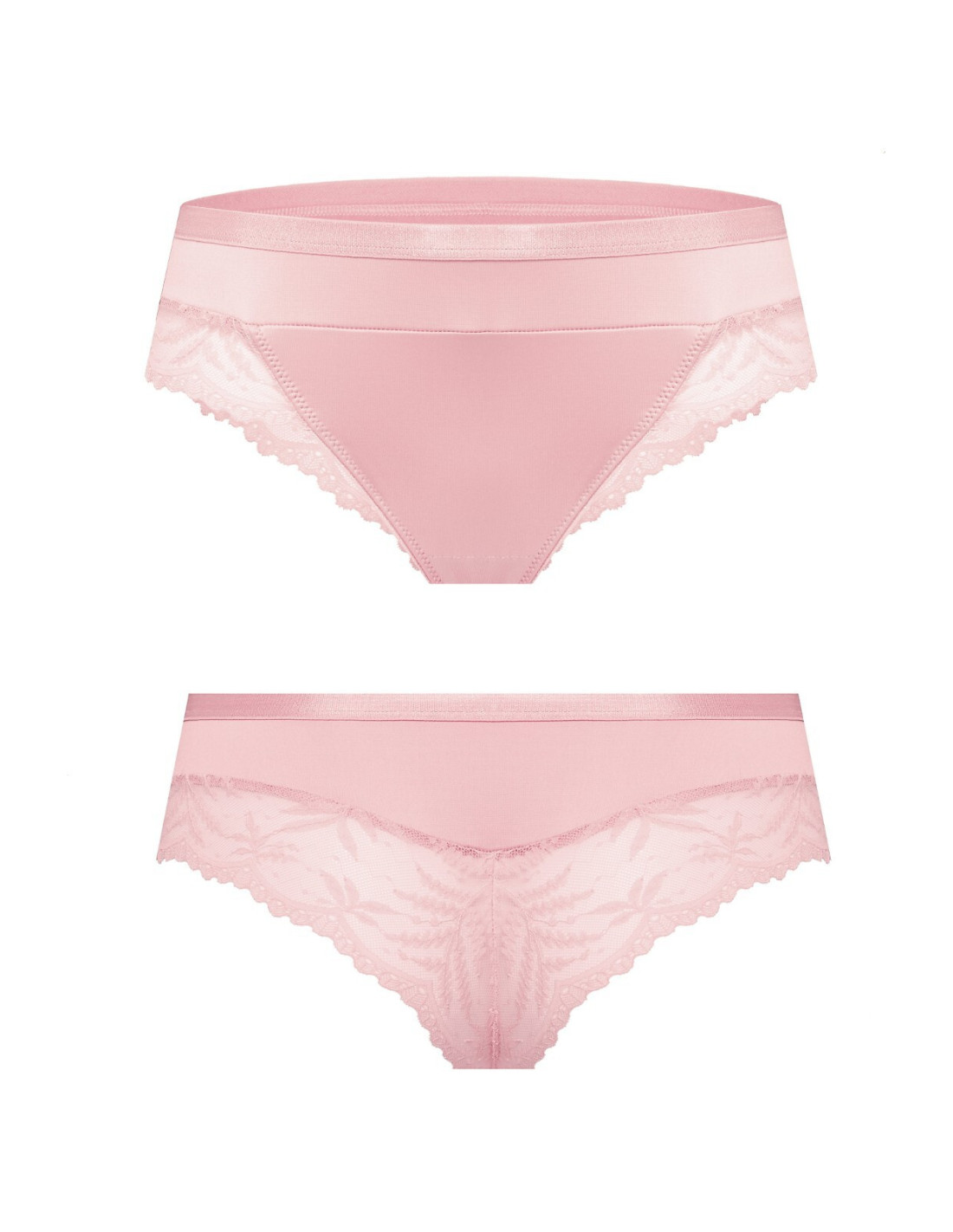 Figi damskie - lekko zabudowany krój - wykonane z gładkiej mikrofibry ażurowej koronki - w pasie płaska gumka - tył wykończony koronką