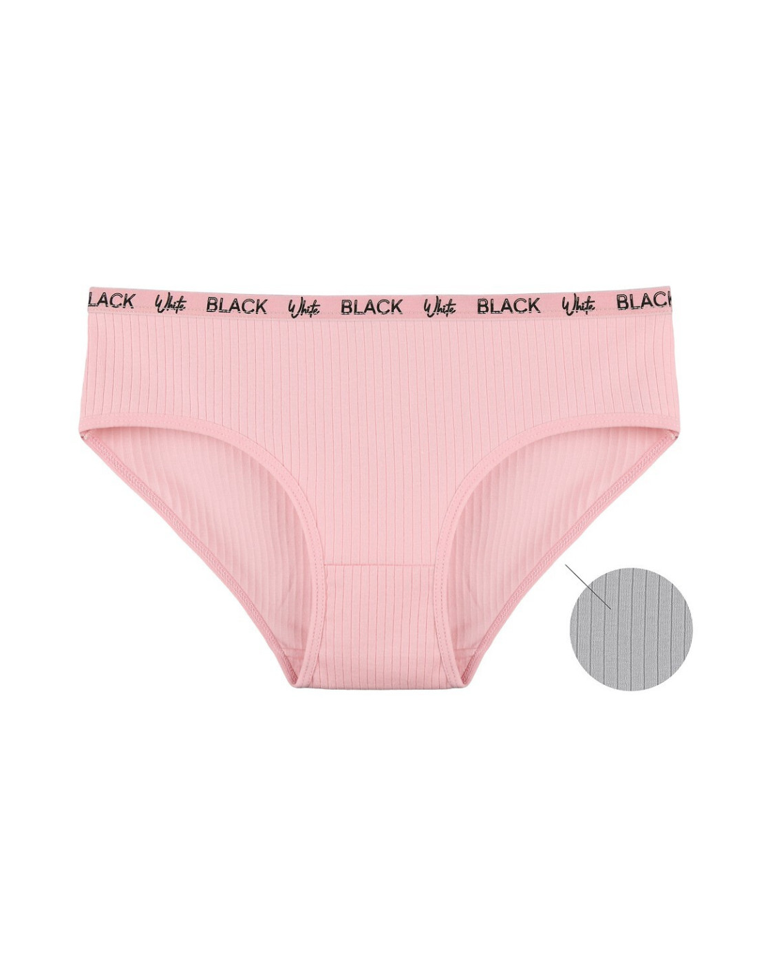 Figi damskie - bawełna prążkowana - klasyczny krój - pas z płaską gumką ozdobioną napisem - pakowane po dwa sztuki w foliowy woreczek - dostępne kolory, mieszane i wybierane losowo: czarny, szary, różowy, łososiowy, grafitowy