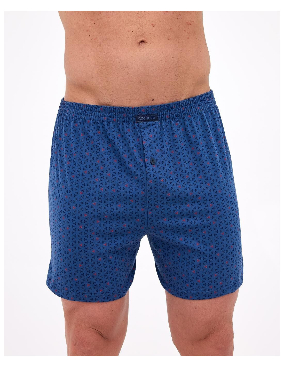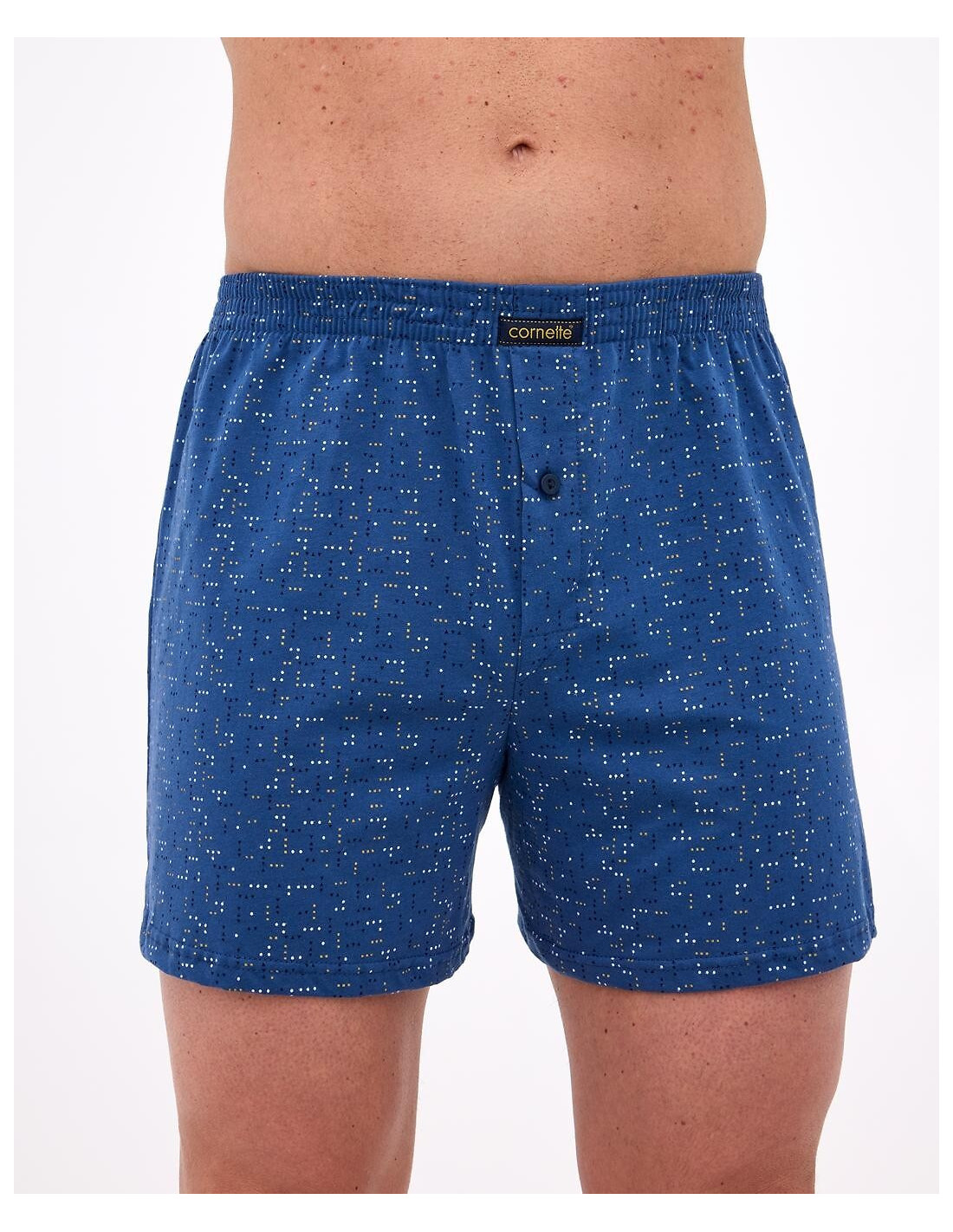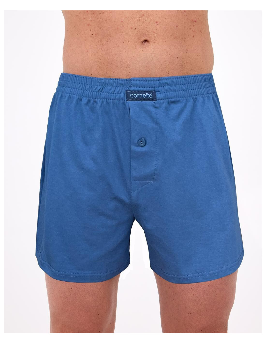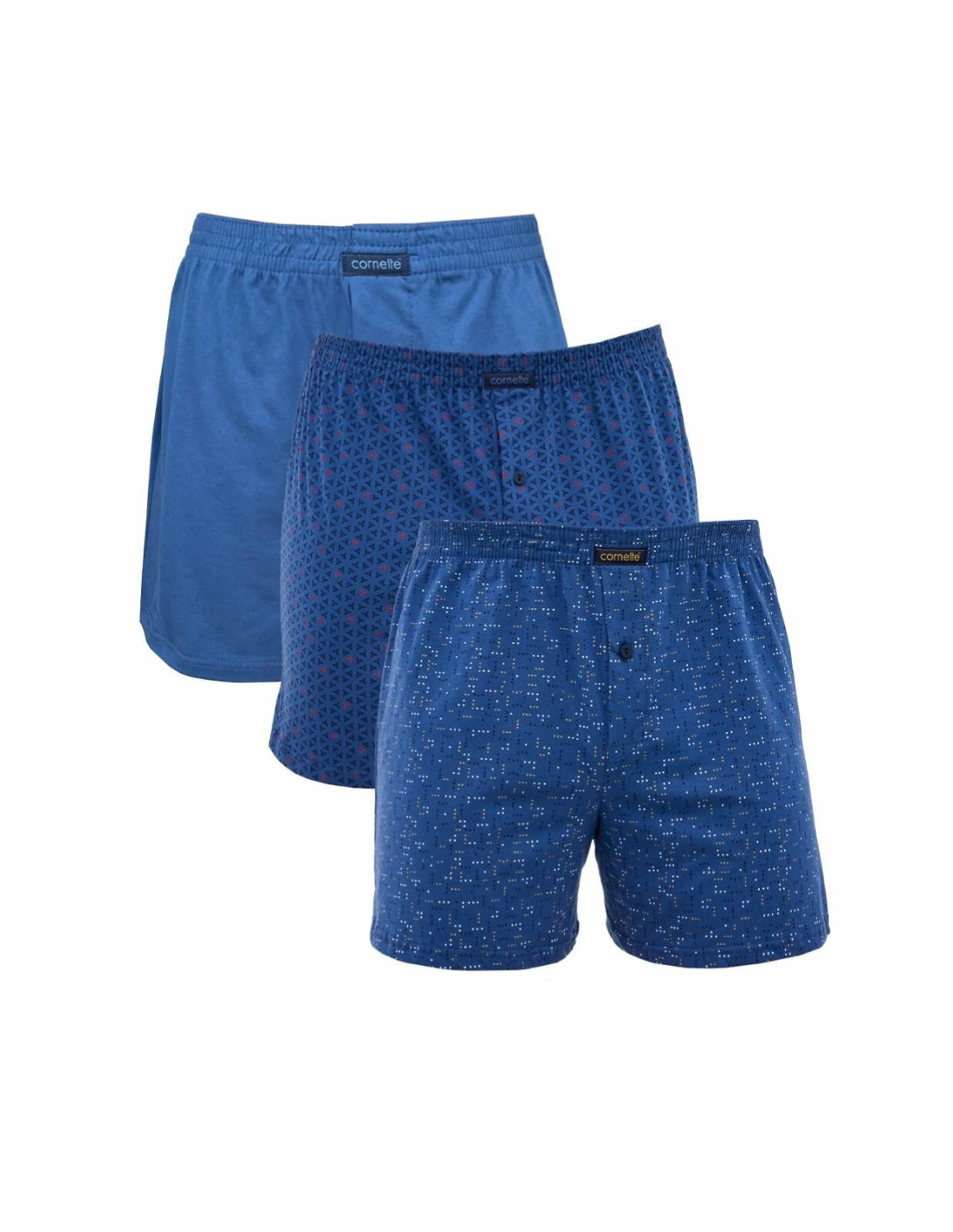 Bokserki męskie - aukštos kokybės bawełna - wygodny, luźny fason - rozporek zapinany na guzik - w pasie guma obszyta bawełną - pakowane po 3 sztuki w foliowy woreczek - kolor w paczce: jeans/dwie sztuki wzorzyste, viena jednolita