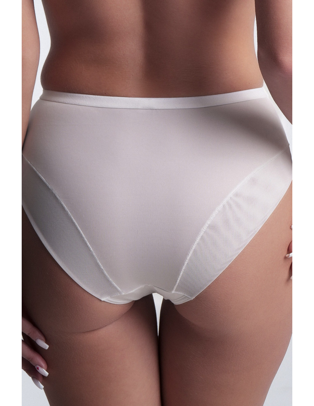 Figi damskie o klasycznym kroju - z mikrofibry, delikatnej siateczki i efektownej koronki o kwiatowym motywie - tył nogawek z podwójnej siateczki - model zasłaniający pośladki