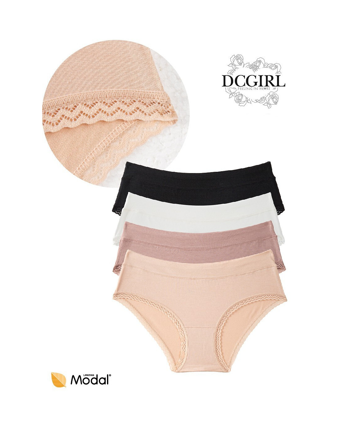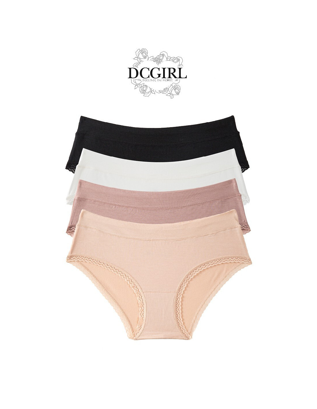 Klasikinės figūros damskie - z miłego w dotyku modalu - w pasie podwójny materiał - nogawki obszyte ozdobną tasiemką - pakowane w foliowy woreczek po 2 sztuki dostępne kolory: beżowy, czarny, ecru, mocca