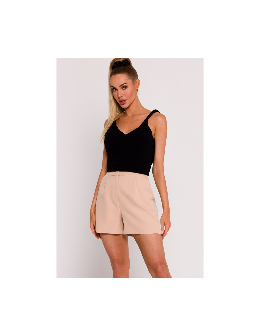 Kelnės / Sijonai M530 High waisted trousers with decorative press studs - red MOE MO_10146 95% polyester 5% elastanase High-waisted trousers with decorative press studs in the front. PRODUCT DETAILS: woven fabric straight leg trousers wighwaisted with decorative press studs in the front along the pockets hidden side zip unlined our model is 171 cm tall and wears size S Į krepšelį