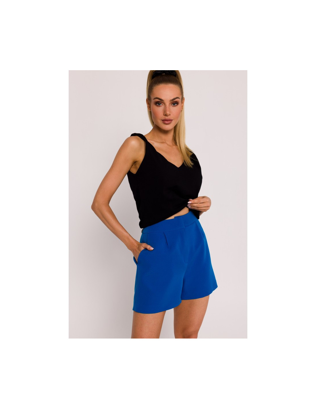 95% polyester 5% elastanase PRODUCT INFORMATION: woven fabric  shorts with pleats at the waistband zip and a hook fastening side pockets our model is 171 cm tall and wears size S designed and made in Poland
