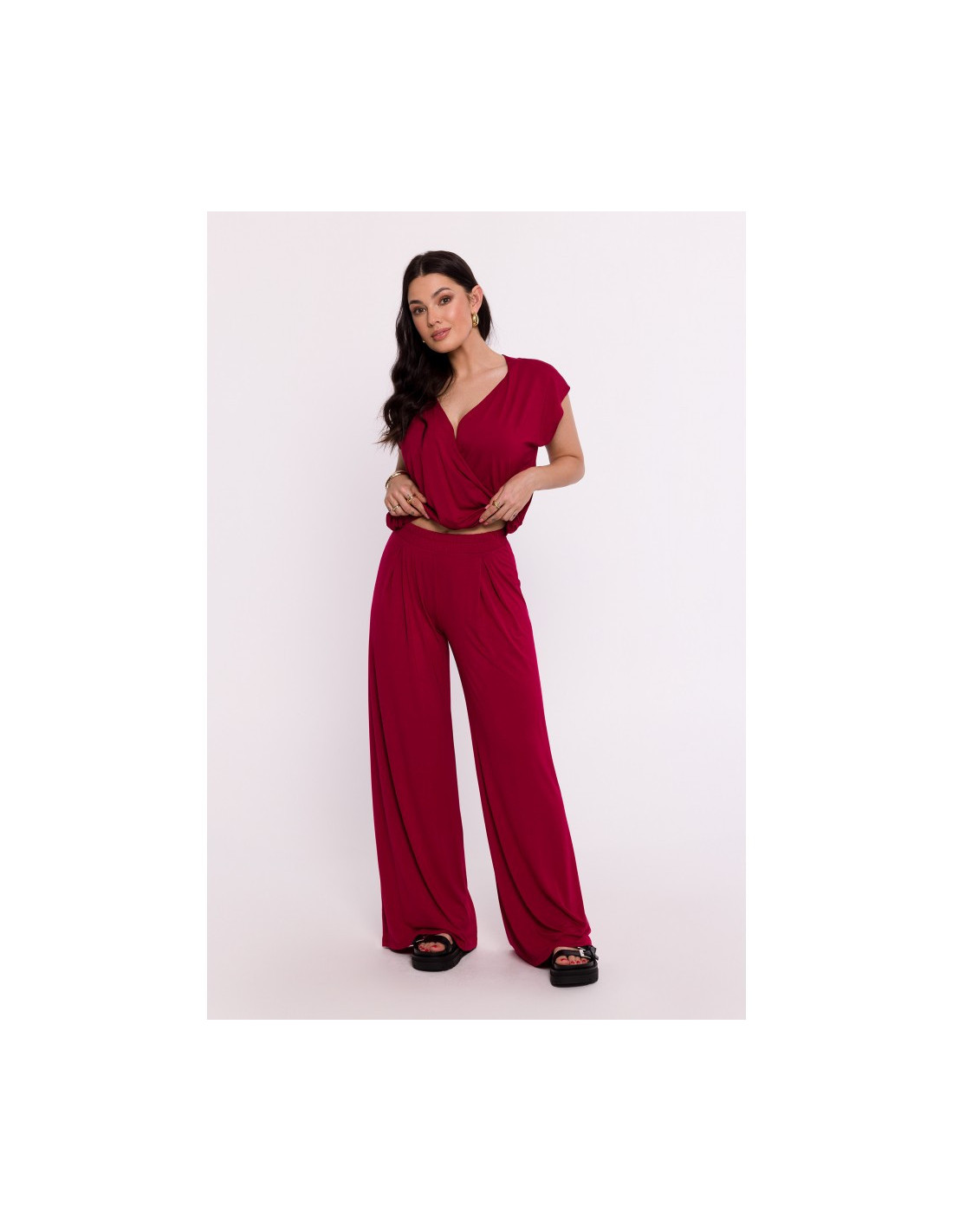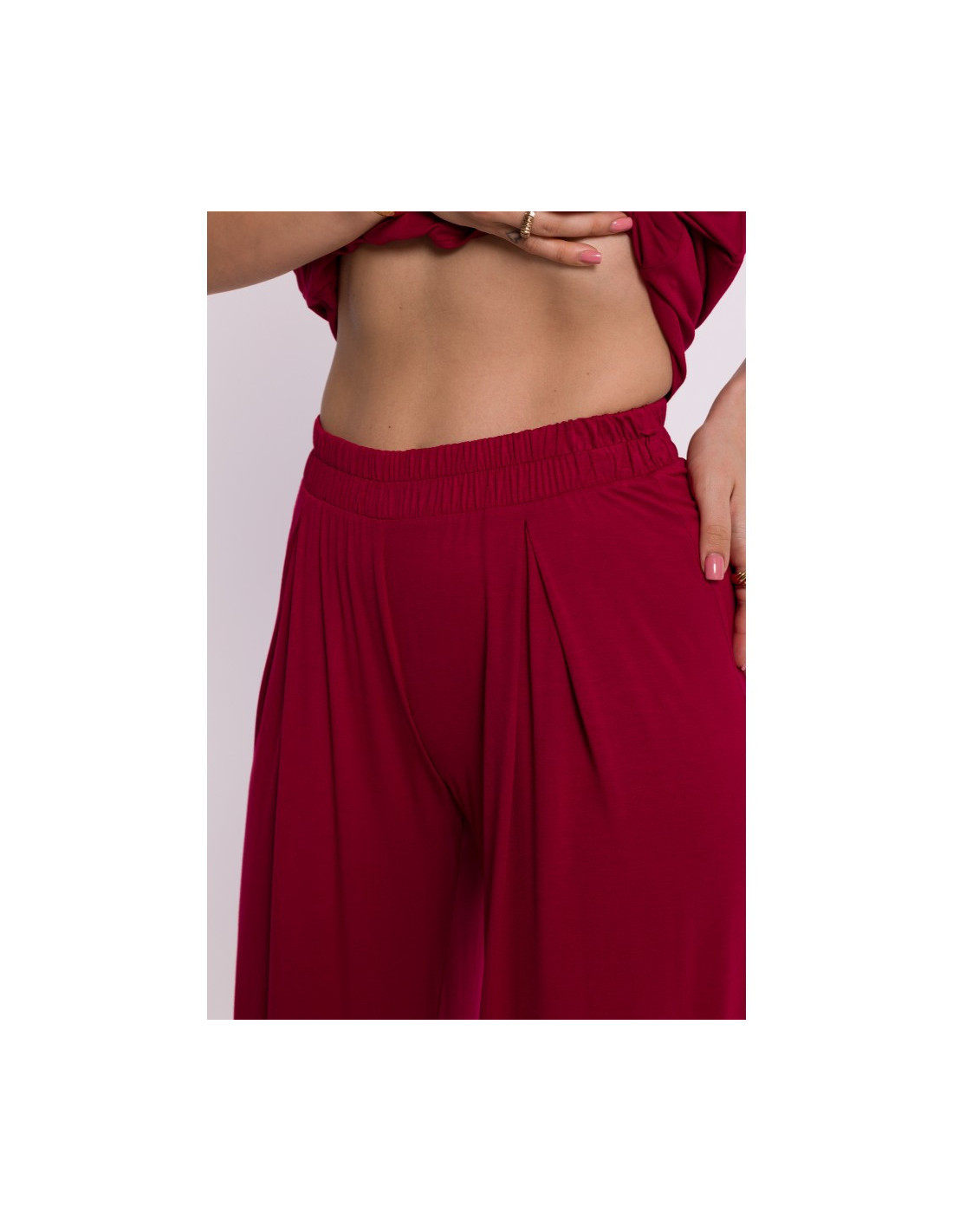 92% viscose 8% elastanase PRODUCT DETAILS:      viscose knit fabric flared trousers elasticated waistband our model is 164 cm tall and wears size S designed and made in Poland