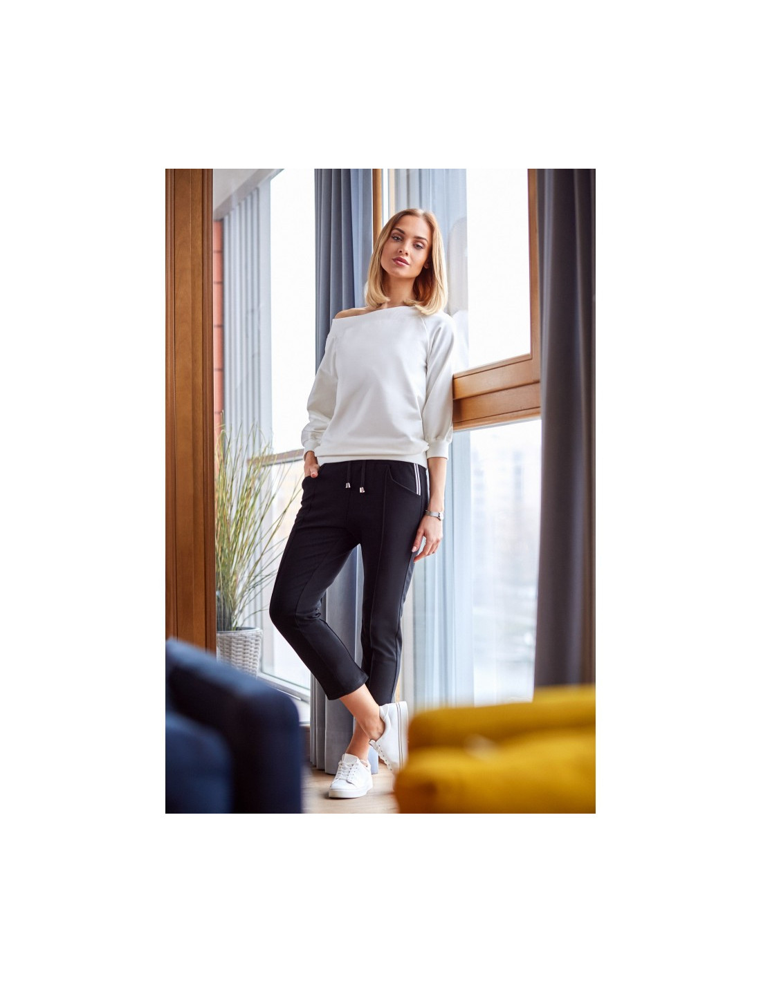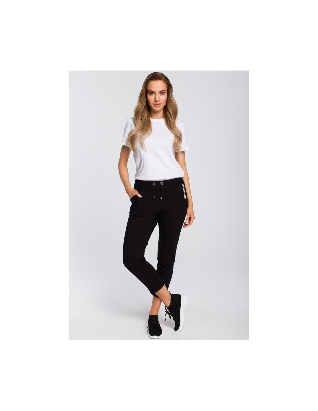 Nėra nieko patogiau už medvilnines kelnes. Šios kelnės yra klasikinio kirpimo, su elastiniu raišteliu juosmenyje, tiesiomis 7/8 ilgio kelnėmis, kurių apačios panašios į siūles, todėl jas galima derinti su marškiniais ar džemperiu ir sukurti elegantišką bei patogų ansamblį.