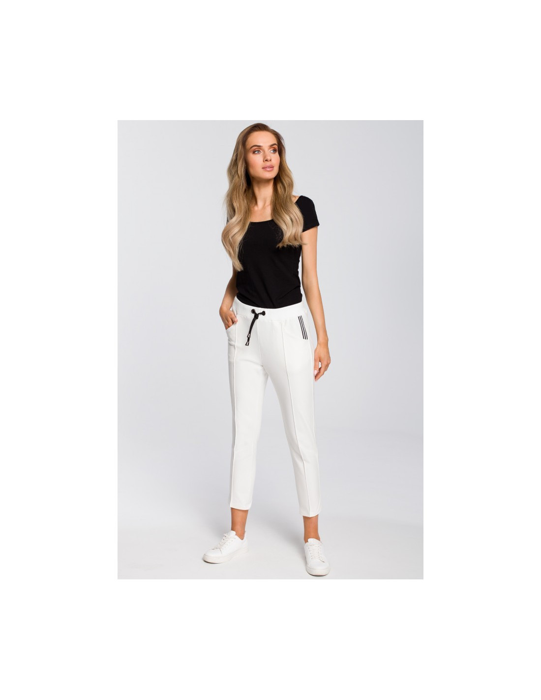 Nėra nieko patogiau už medvilnines kelnes. Šios kelnės yra klasikinio kirpimo, su elastiniu raišteliu juosmenyje, tiesiomis 7/8 ilgio kelnėmis, kurių apačios panašios į siūles, todėl jas galima derinti su marškiniais ar džemperiu ir sukurti elegantišką bei patogų ansamblį.