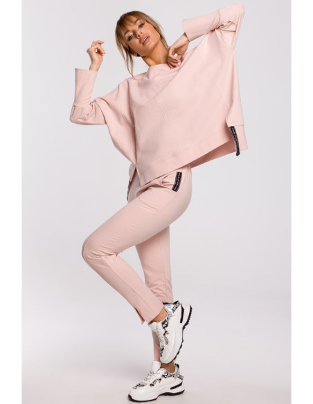 90 % medvilnės 10% elastano Madingos kelnės - tai tokios, kurias galite dėvėti kiekvieną dieną su sportiniais bateliais. Šios kelnės yra tiesaus kirpimo, priekyje atsegamos, o ant šlaunų yra įdomios siūlės. Jos pasiūtos iš minkšto medvilninio trikotažo ir turi elastingą juosmenį. INFORMACIJA APIE GAMINĮ: trikotažas tiesios kelnės su klostėmis priekyje ir įdomiomis siūlėmis kojų šonuose geometrinės kišenės dekoratyvinis apvadas su logotipu ant kairės kišenės elastinga juosmens juosta mūsų modelis yra 171 cm ūgio ir dėvi S dydžio drabužius