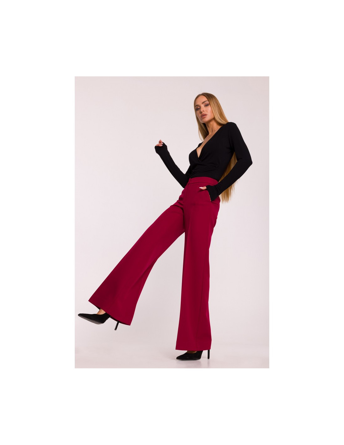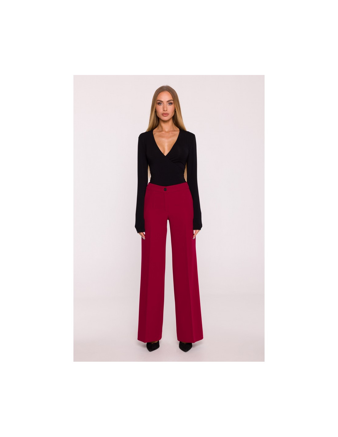 95 % poliesteris 5 % elastano MATERIALAS Medžiaga: lygus kostiumo audinys su matine apdaila INFORMACIJA APIE GAMINĮ Būklė: vidutinė Užsegimas: priekyje saga ir paslėptas užtrauktukas Kišenės: šoninės kišenės Kojinės: ilgos, plačios, klostuotos Pamušalas: be pamušalo Modelis: M875 Sukurta ir siūta Lenkijoje Nuotraukoje pavaizduotas modelis yra 171 cm ūgio, dėvi S dydžio drabužius MADA IR KIRPIMAS Sukirpimas: klasikinis, plačios kojos Forma: prigludusi prie liemens ir klubų, laisva nuo šlaunų žemyn Ilgis: iki žemės