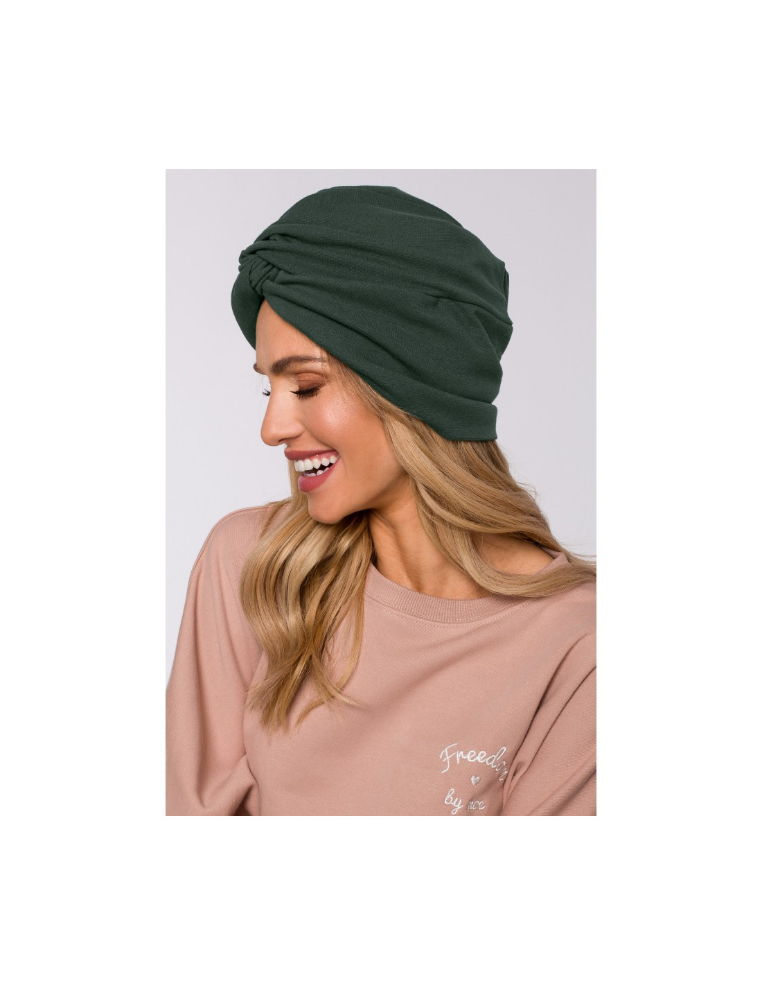 95% cotton 5% elastanas A light cotton-based hat styled like a turban will be an original accessory to complete your perfect styling.  PRODUCT INFORMATION: knit fabric lightweight turban-hat with a decorative knot and gathering
