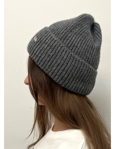 Moteriška žieminė kepurė - minkštas akrilo trikotažas su blizgiais siūlais - briaunuotas raštas - užlenktas apačios kraštas - nedidelis Veilo logotipo lopas