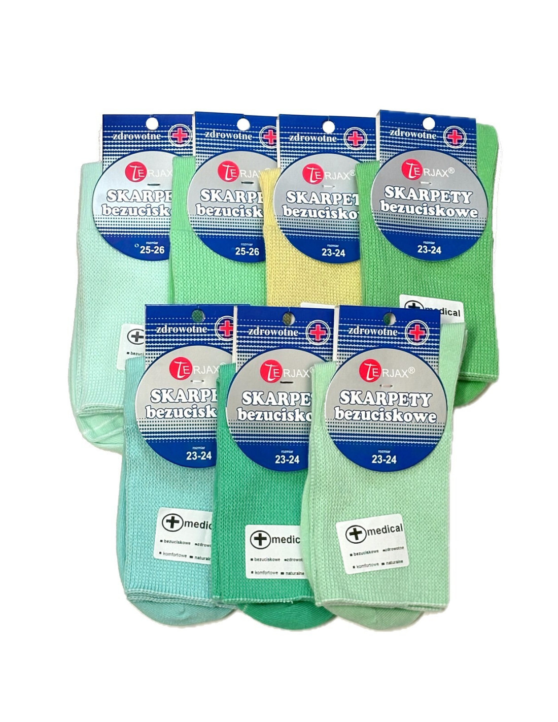 Sudėtis: sudėtis: 80% medvilnė, 11% poliamidas, 7% polipropilenas, 2% elastanas Dydžiai: 23-24 (36-38), 25-26 (39-41), 27-28 (42-44), 29-30 (45-47)