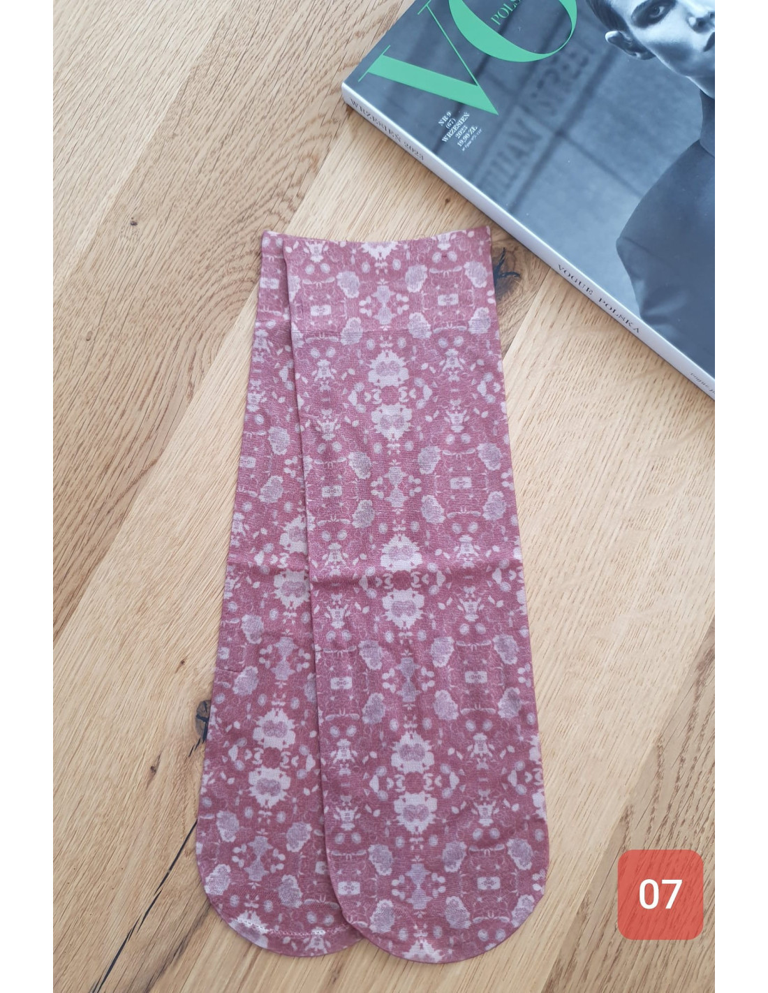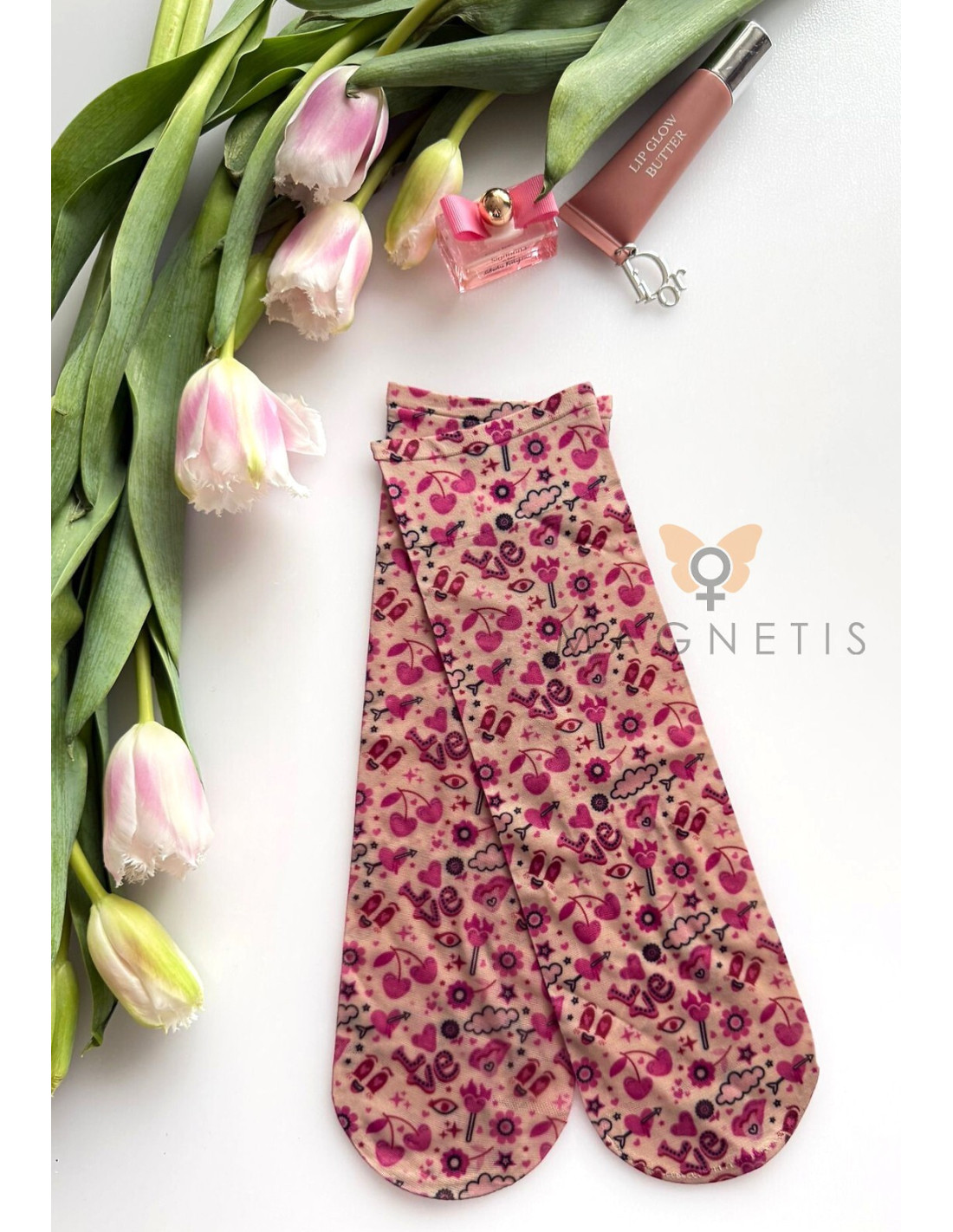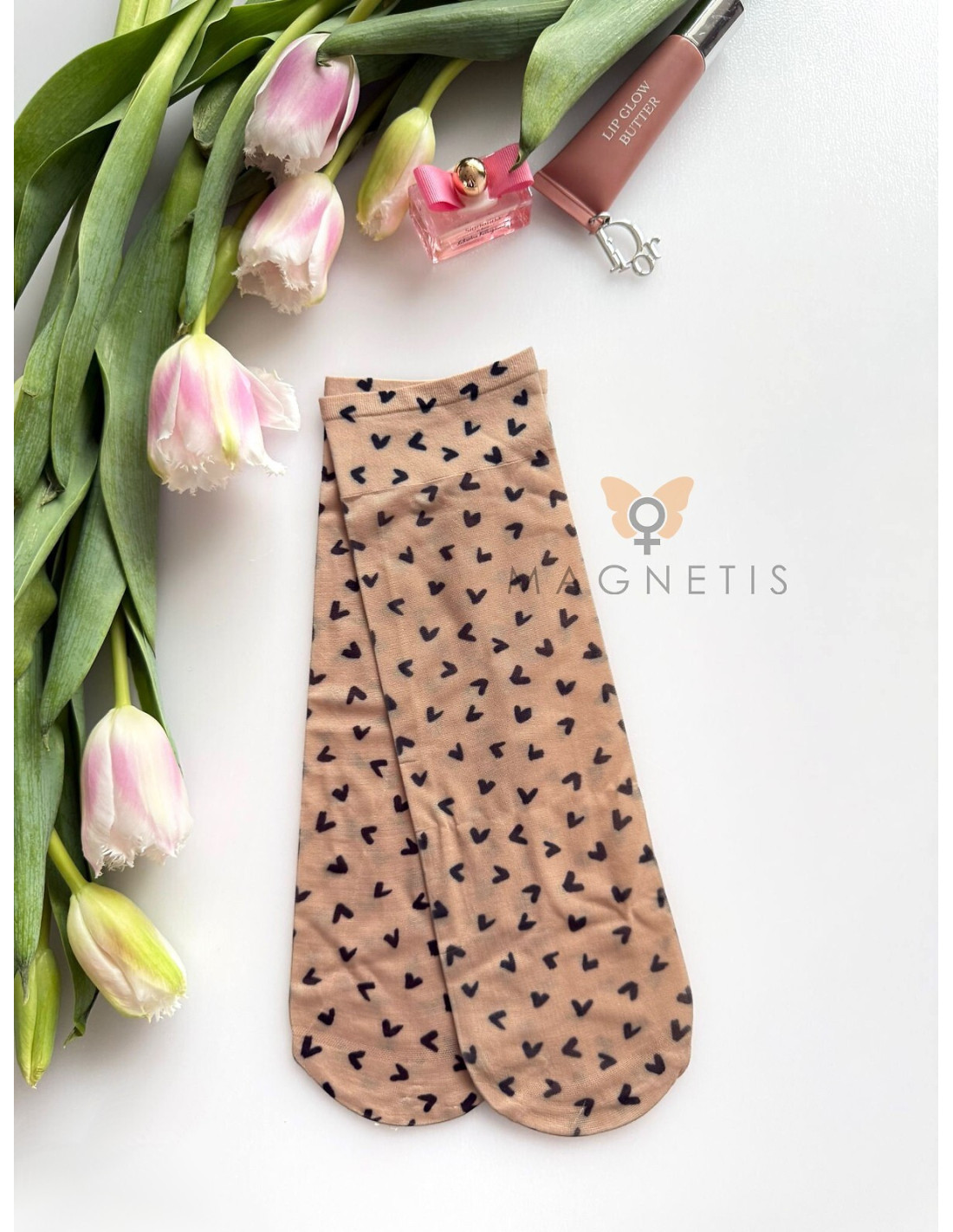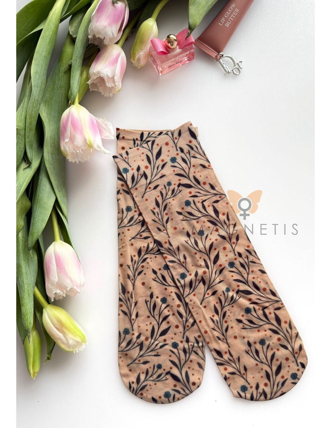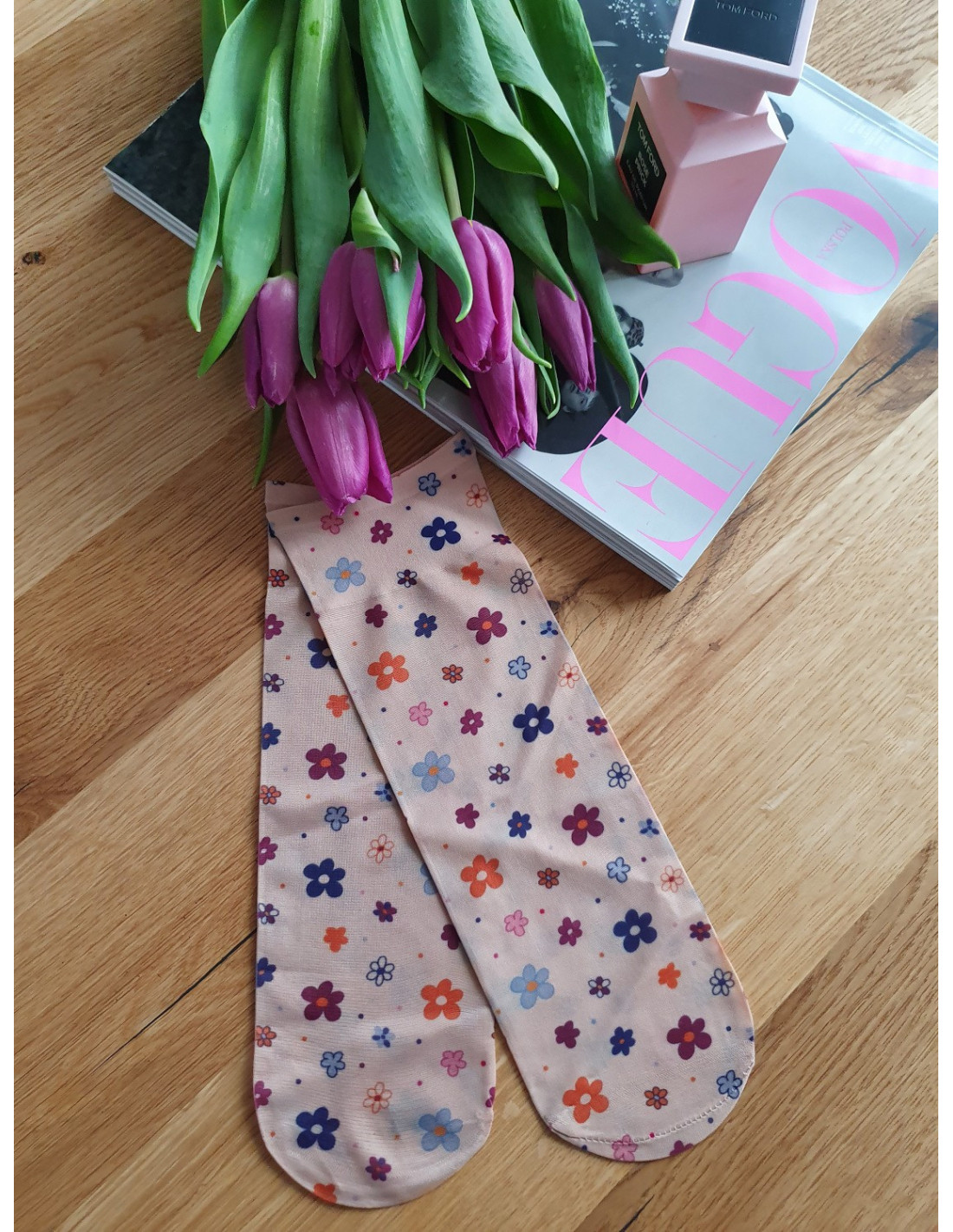 Lycra moteriškos kojinės - dekoruotos gėlių, dėmių, langelių, taškelių, širdelių, širdelių raštais - nespaudžiantis apvadas