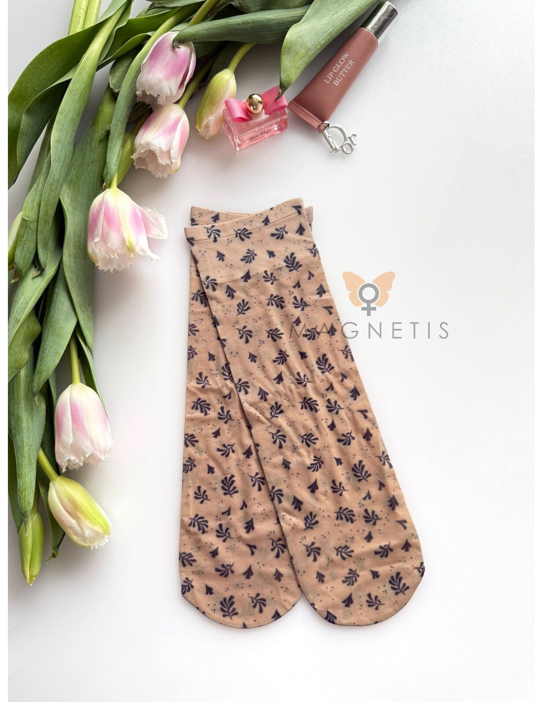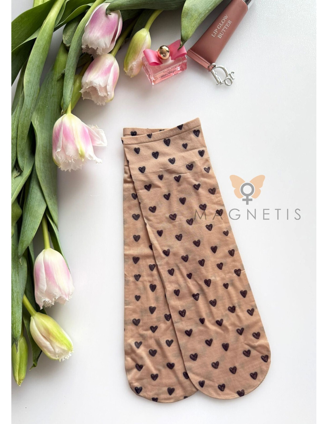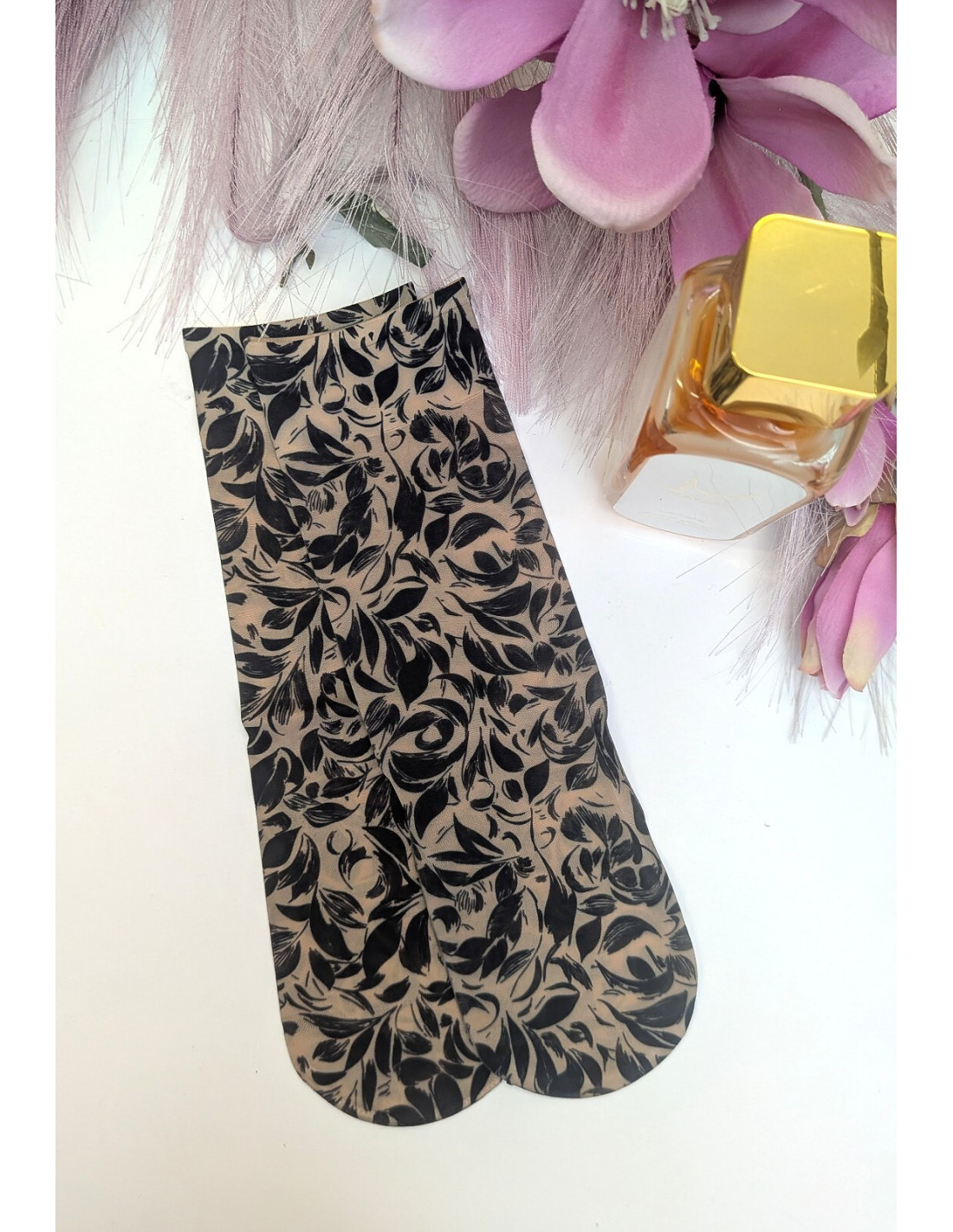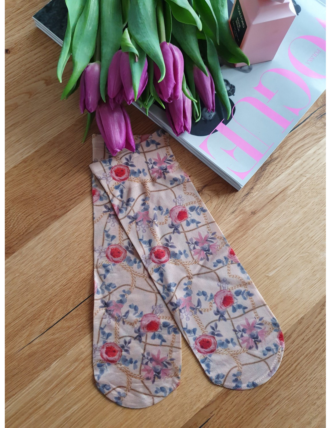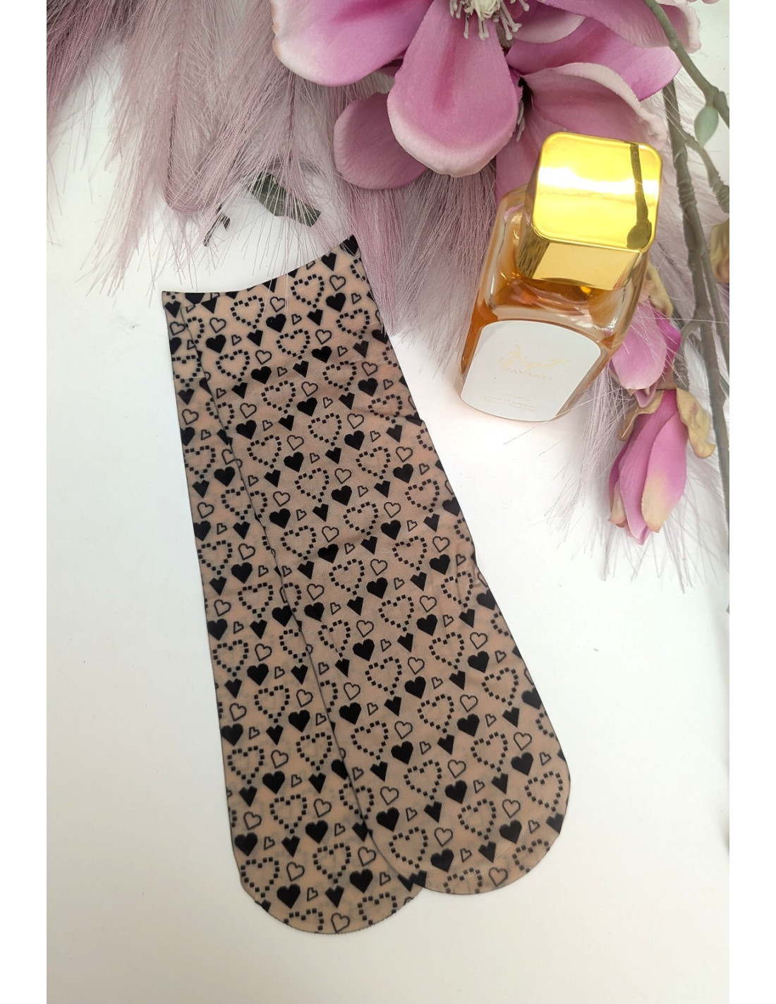 Lycra moteriškos kojinės - dekoruotos gėlių, dėmių, langelių, taškelių, širdelių, širdelių raštais - nespaudžiantis apvadas