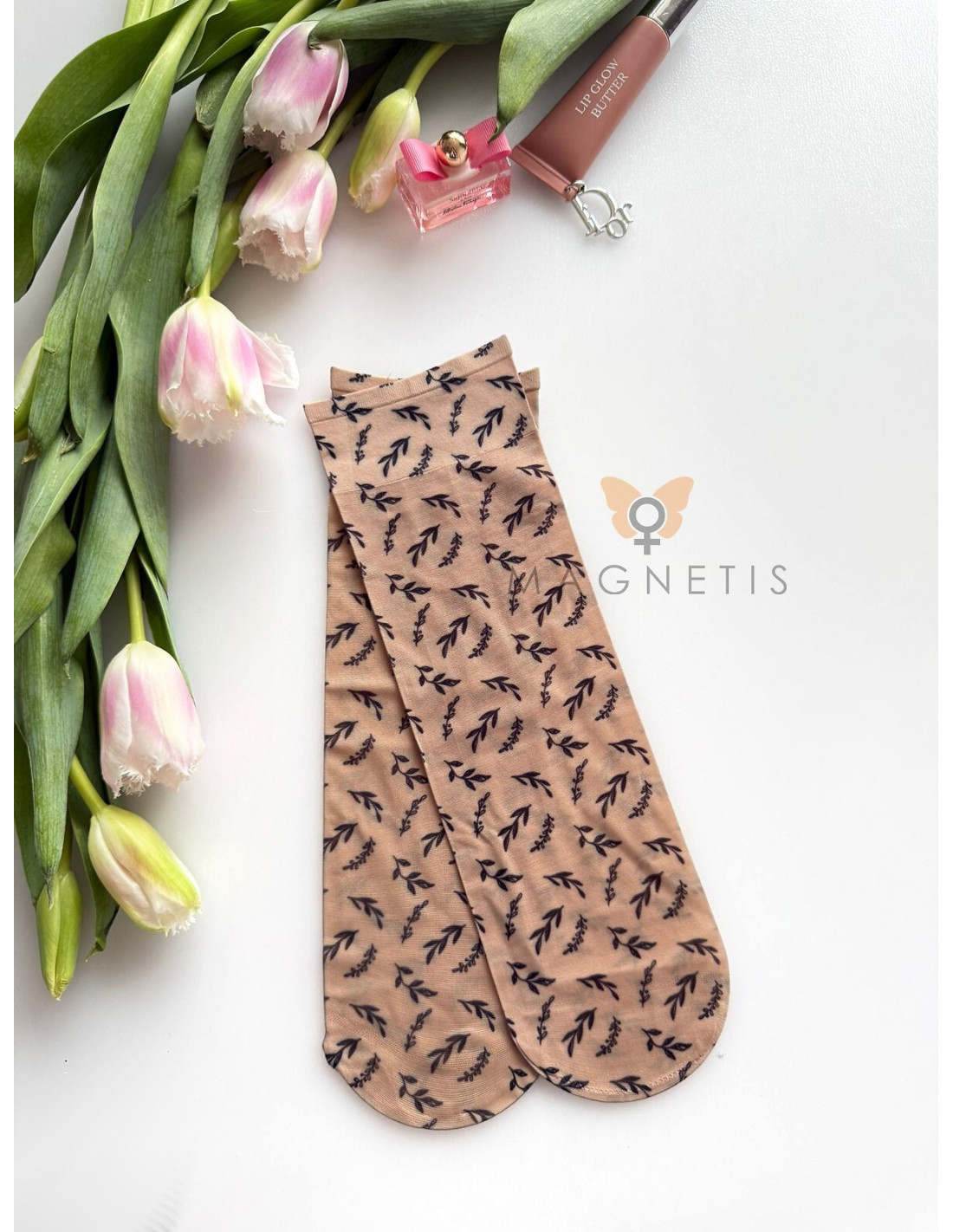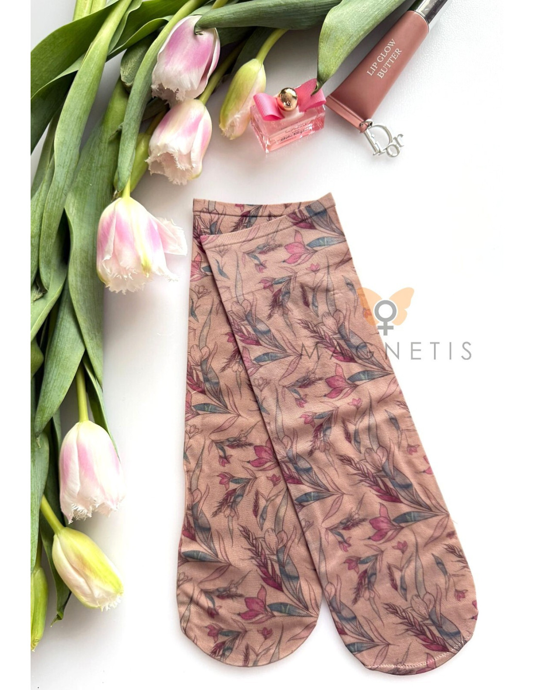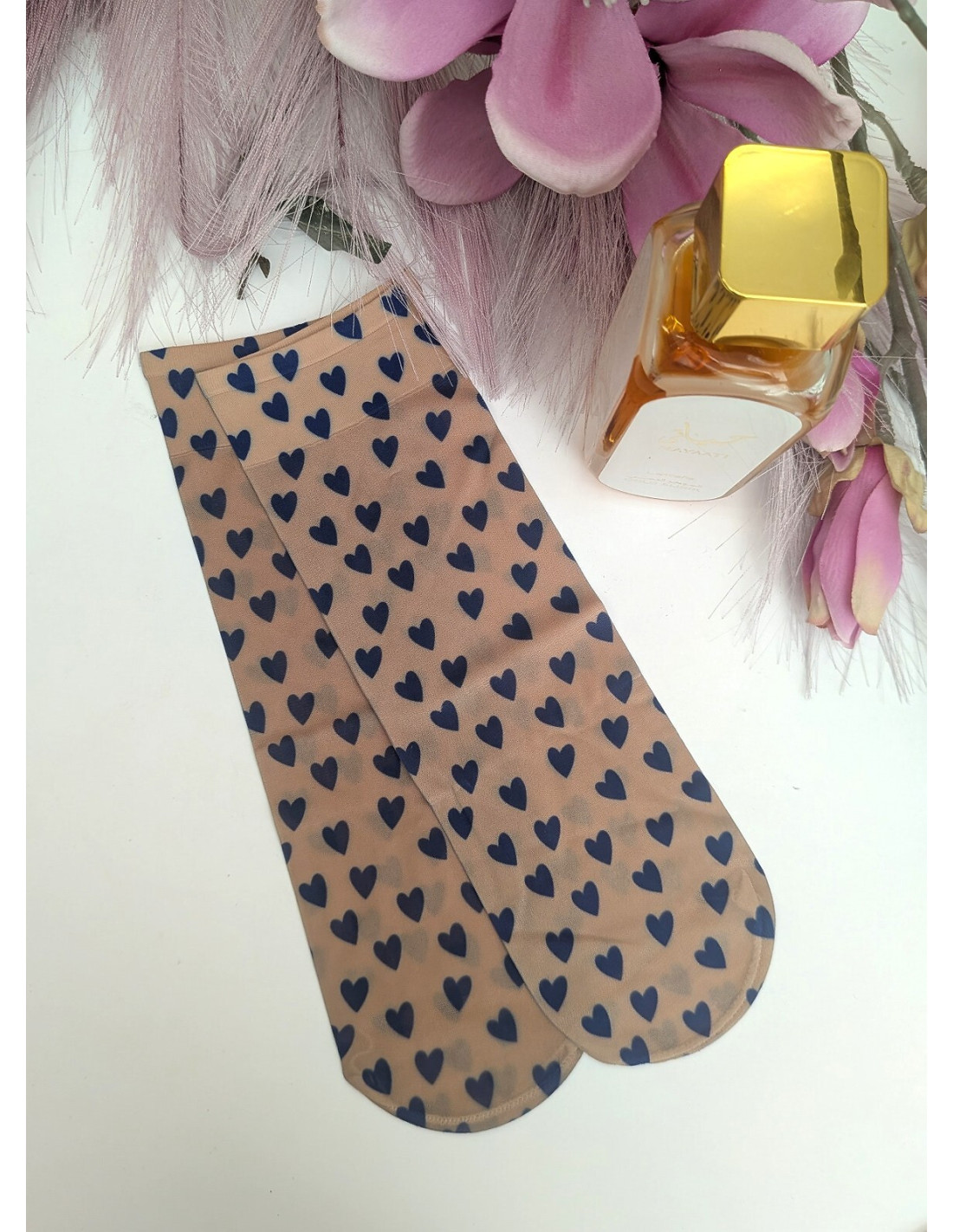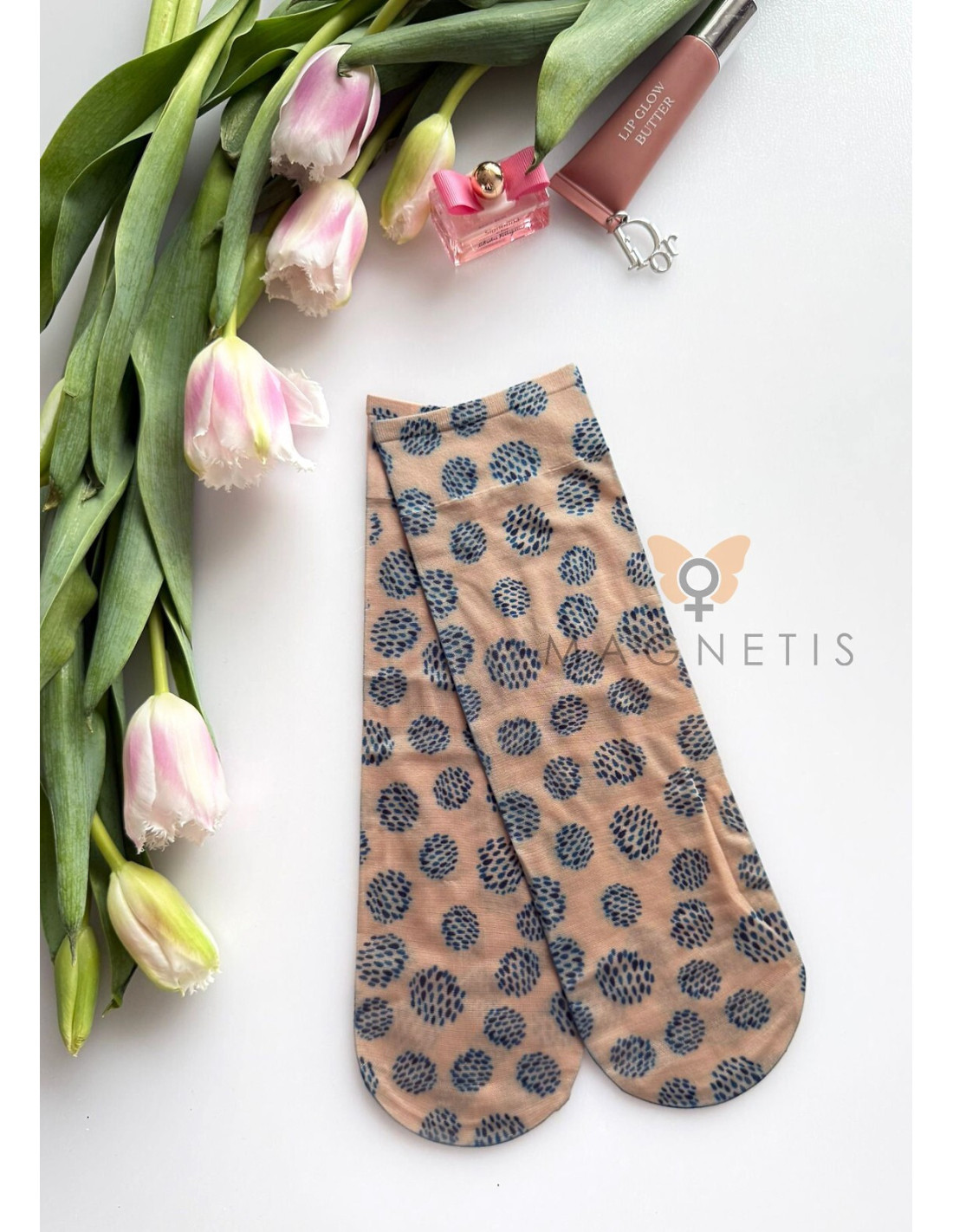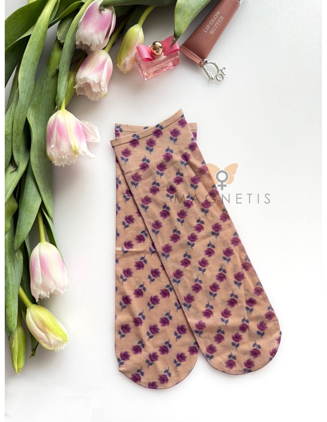 Lycra moteriškos kojinės - dekoruotos gėlių, dėmių, langelių, taškelių, širdelių, širdelių raštais - nespaudžiantis apvadas