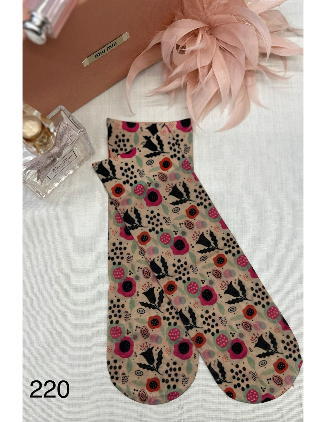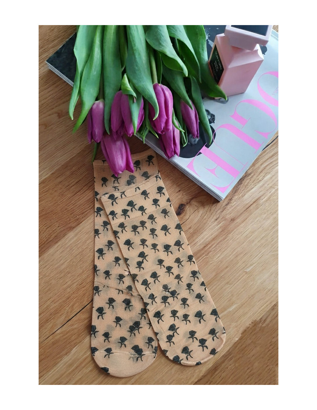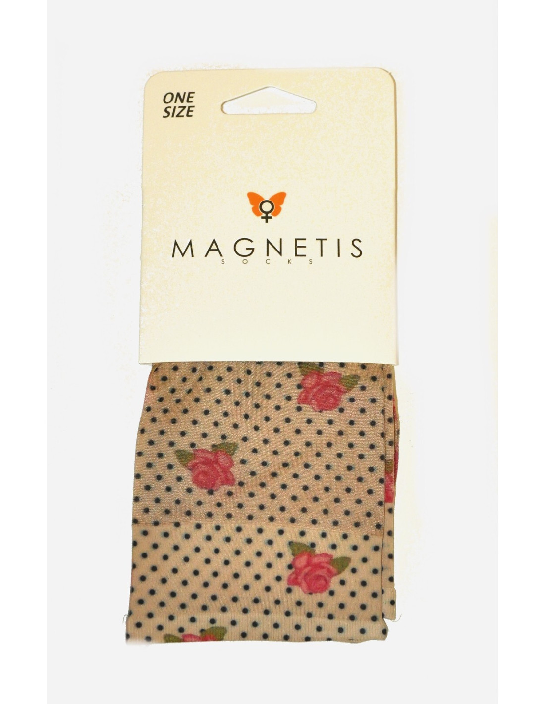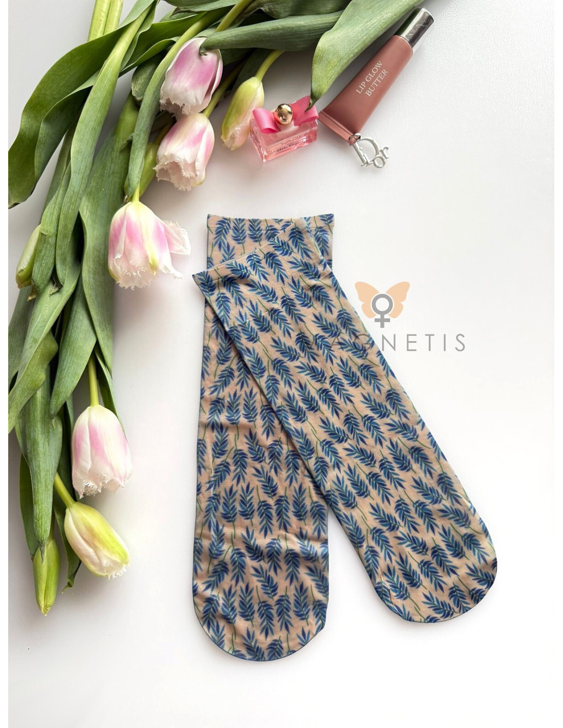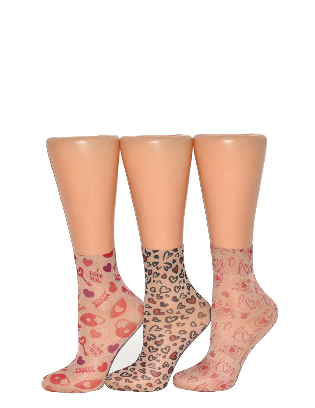 Lycra moteriškos kojinės - dekoruotos gėlių, dėmių, langelių, taškelių, širdelių, širdelių raštais - nespaudžiantis apvadas