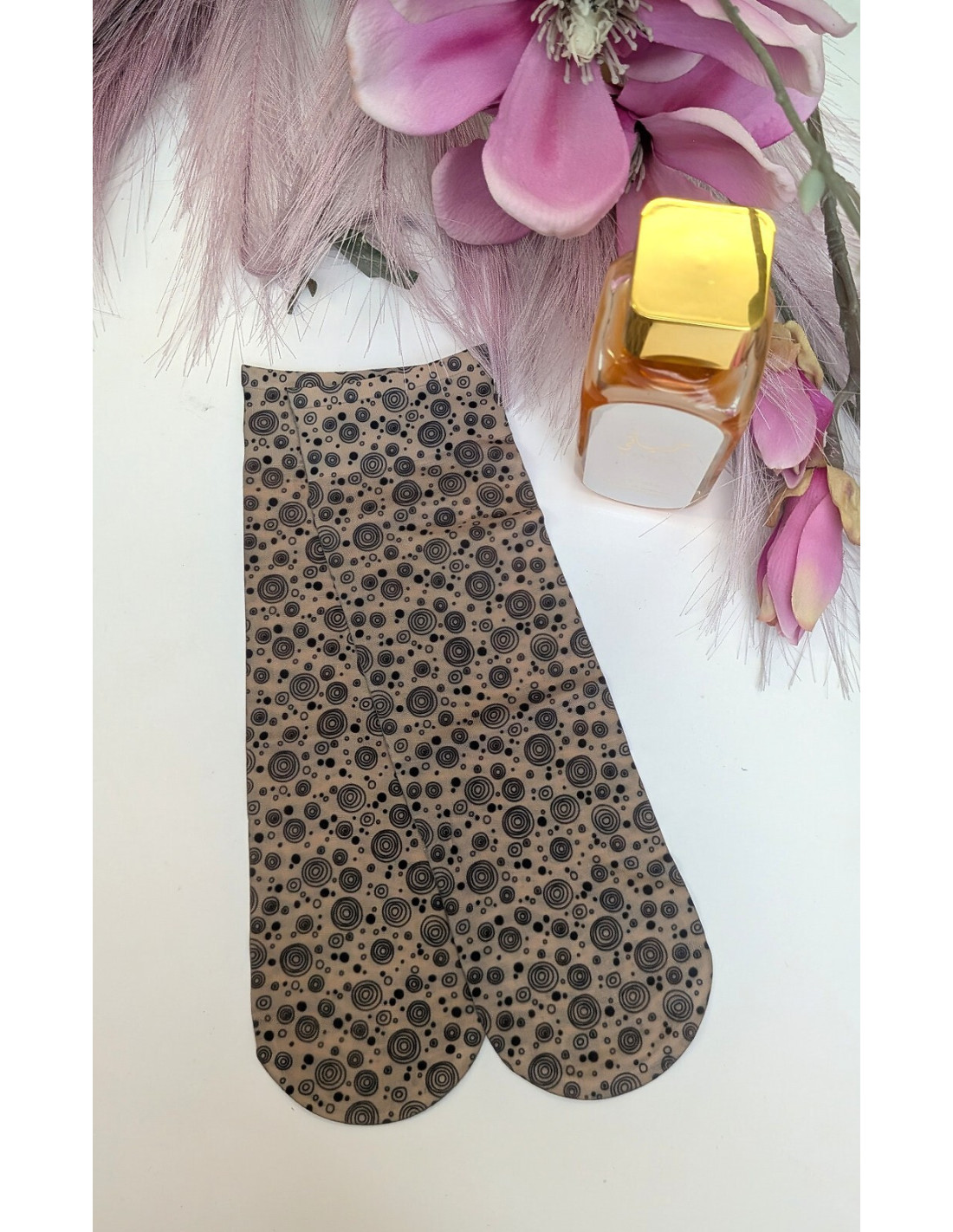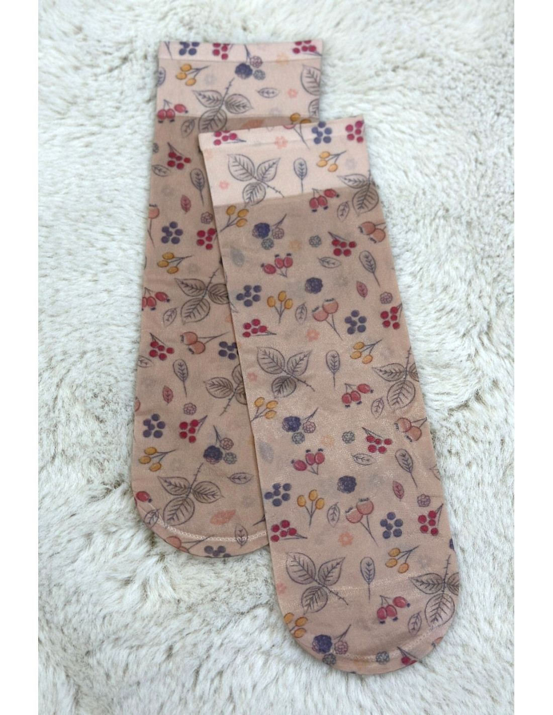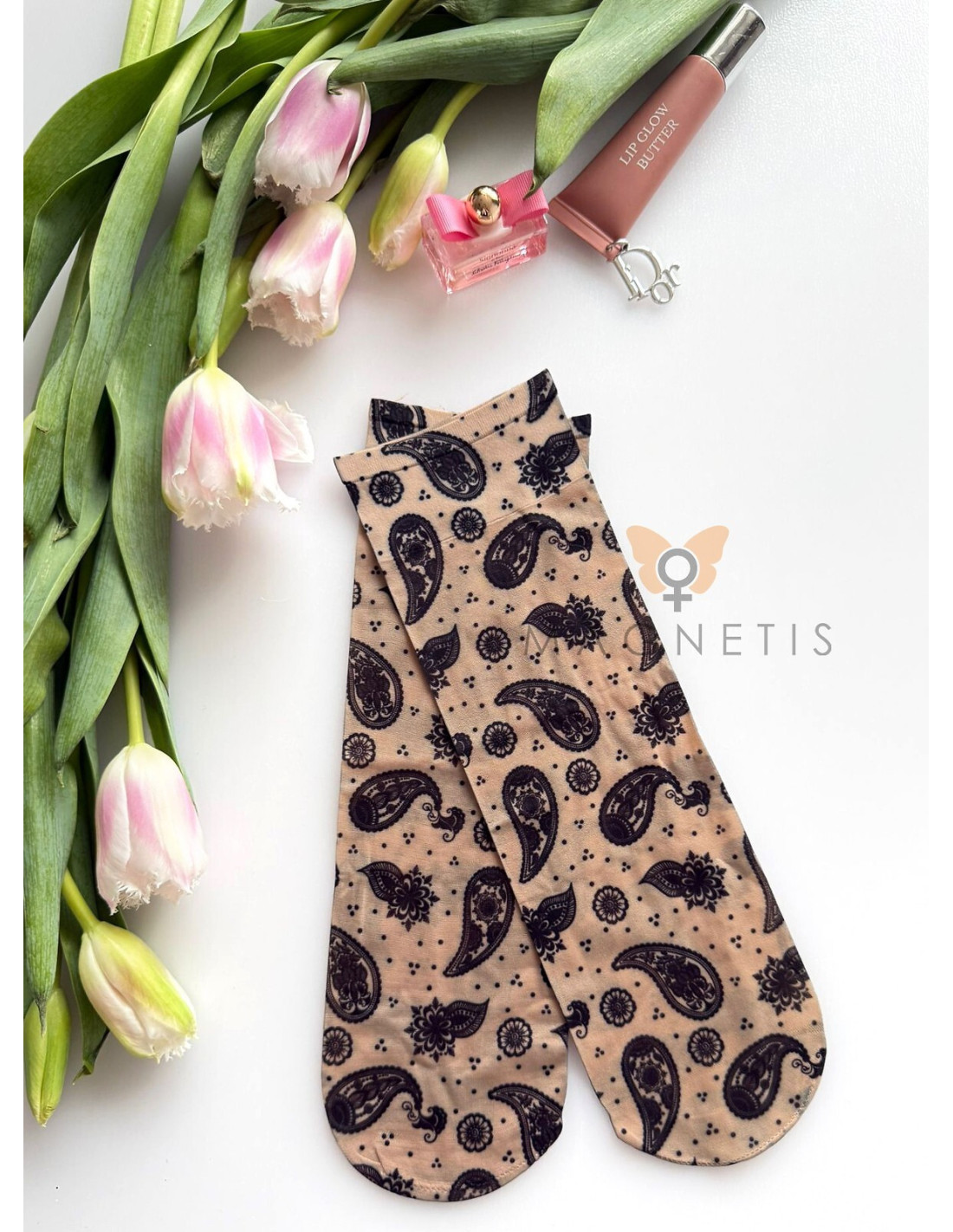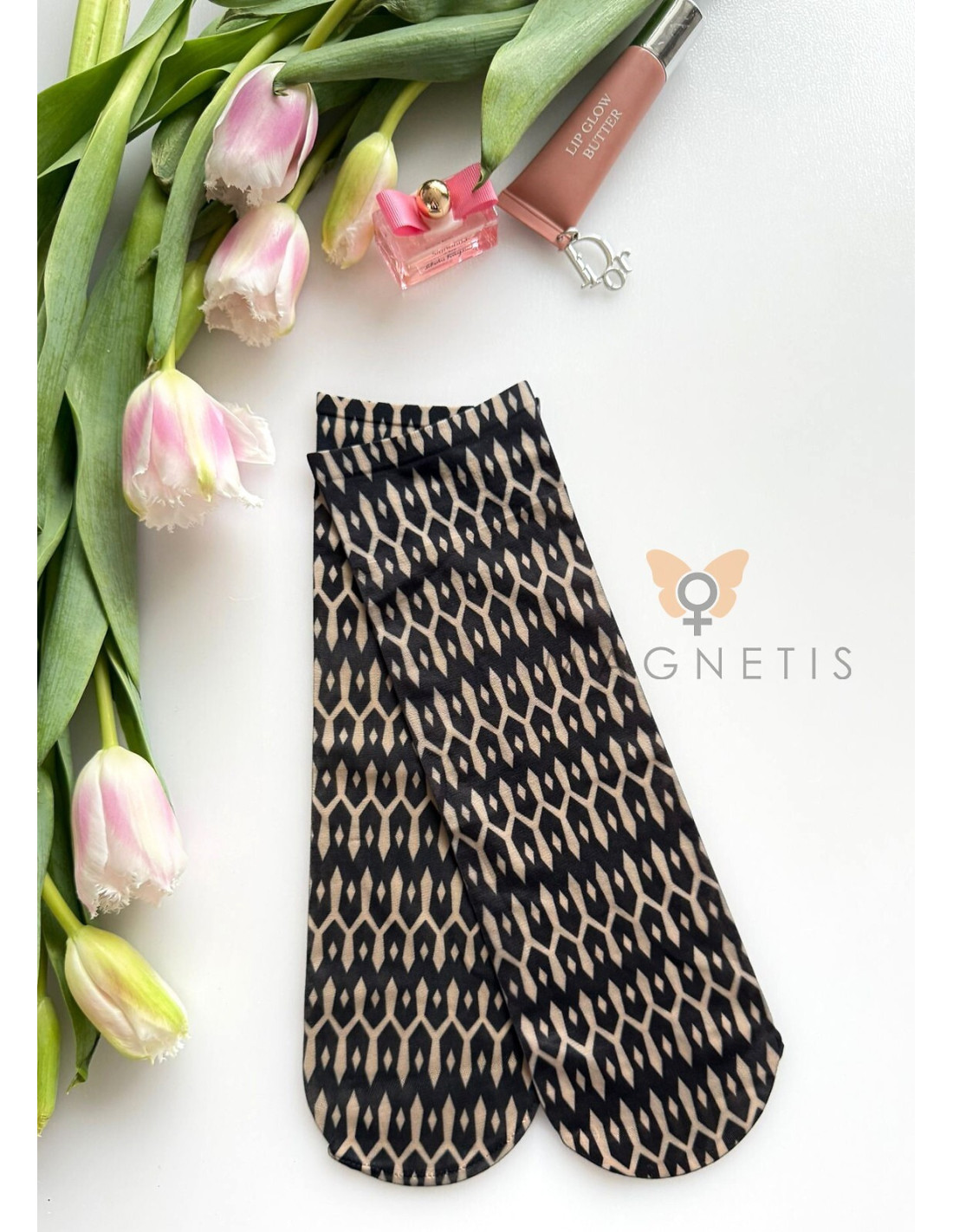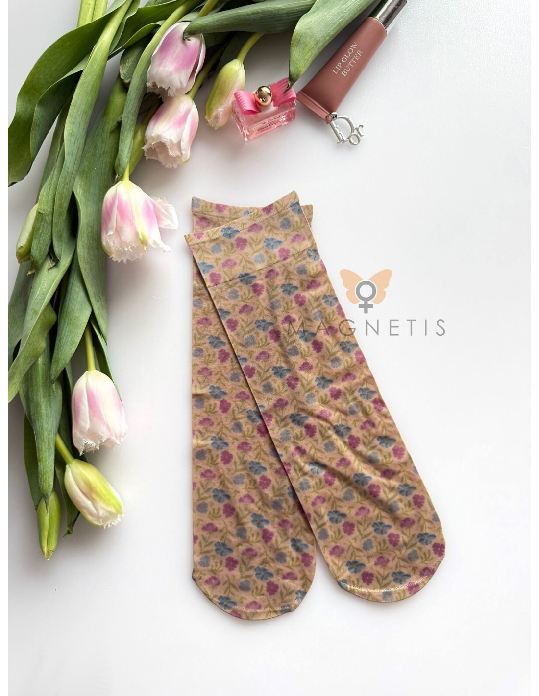 Lycra moteriškos kojinės - dekoruotos gėlių, dėmių, langelių, taškelių, širdelių, širdelių raštais - nespaudžiantis apvadas