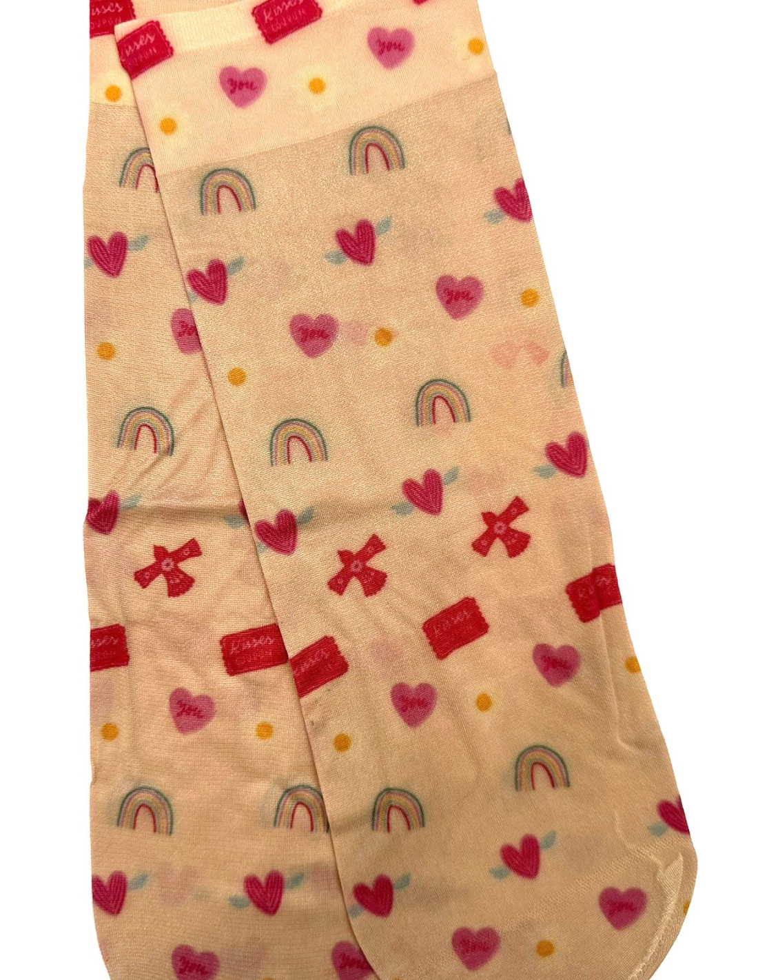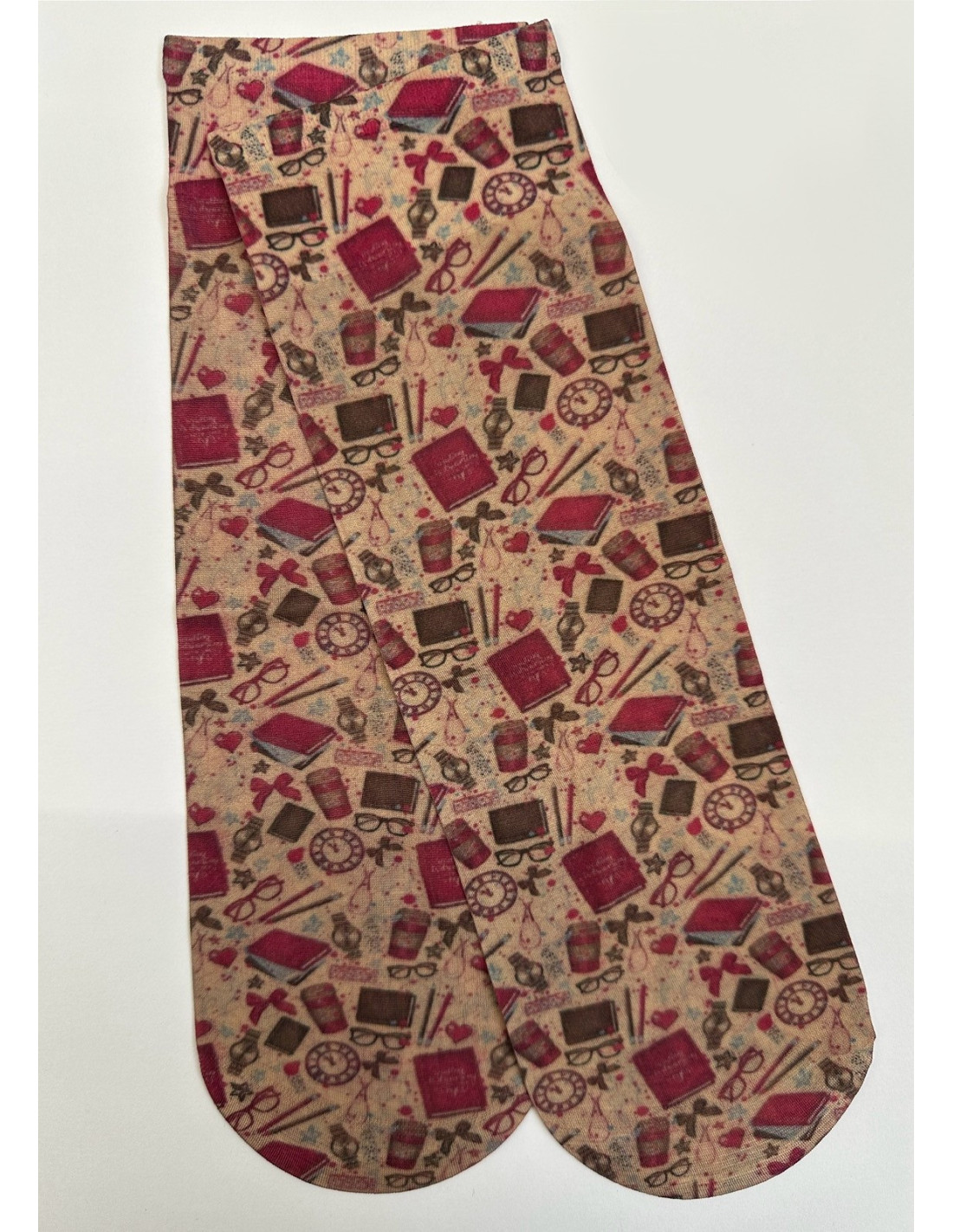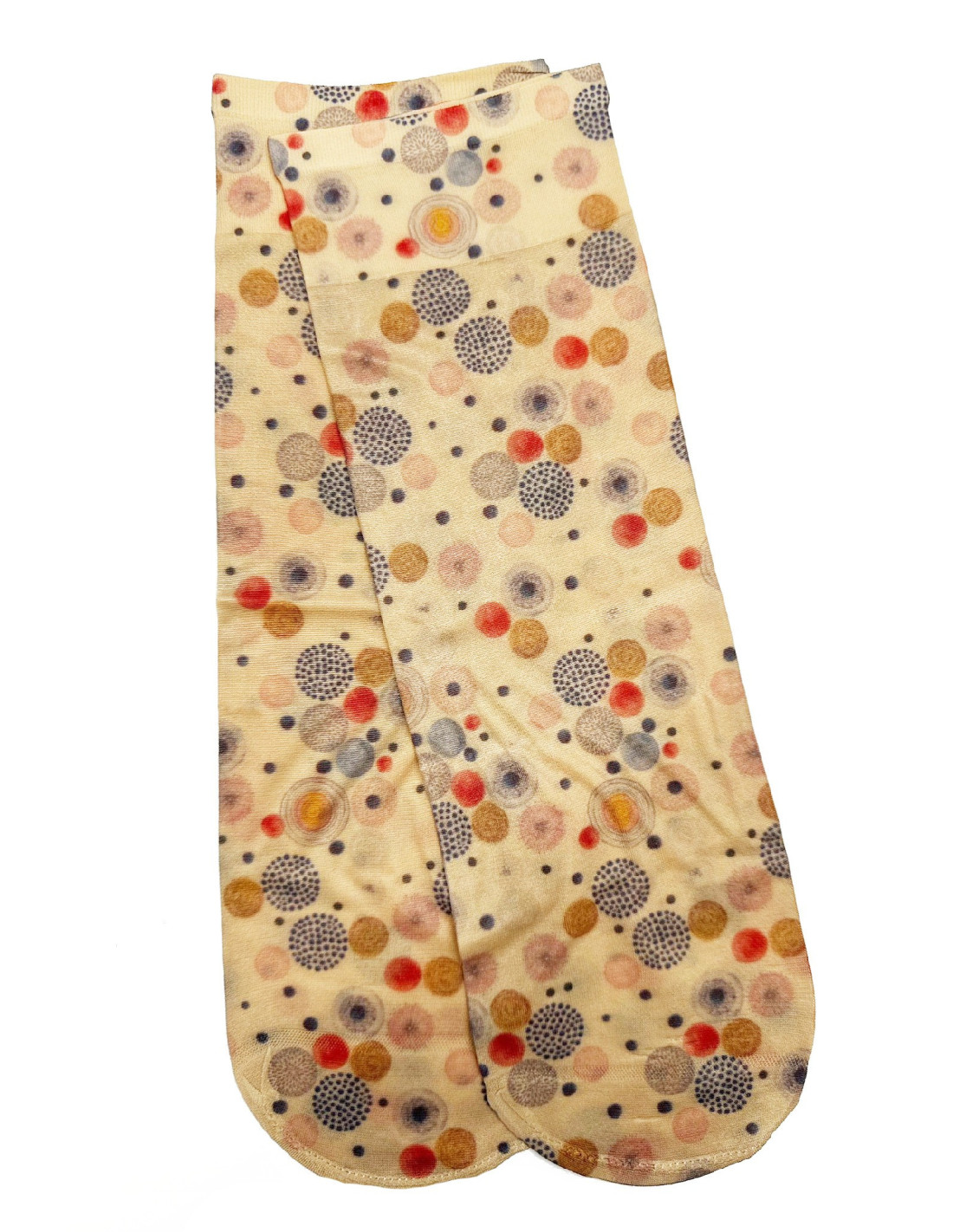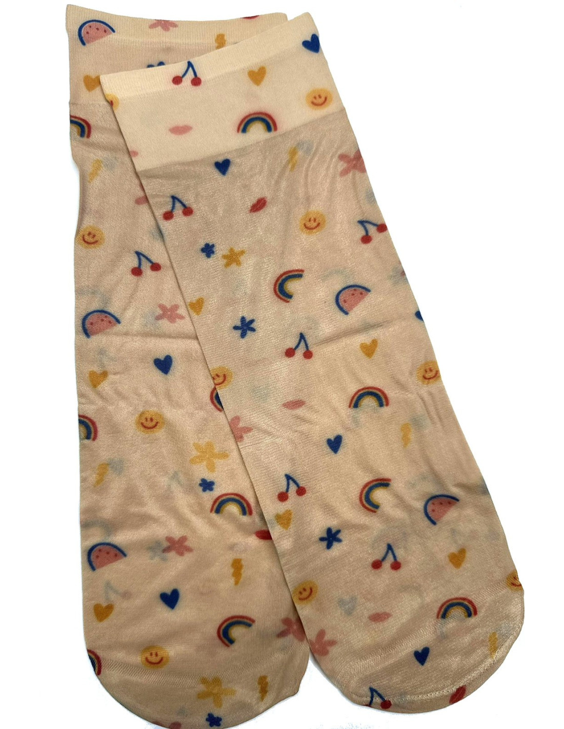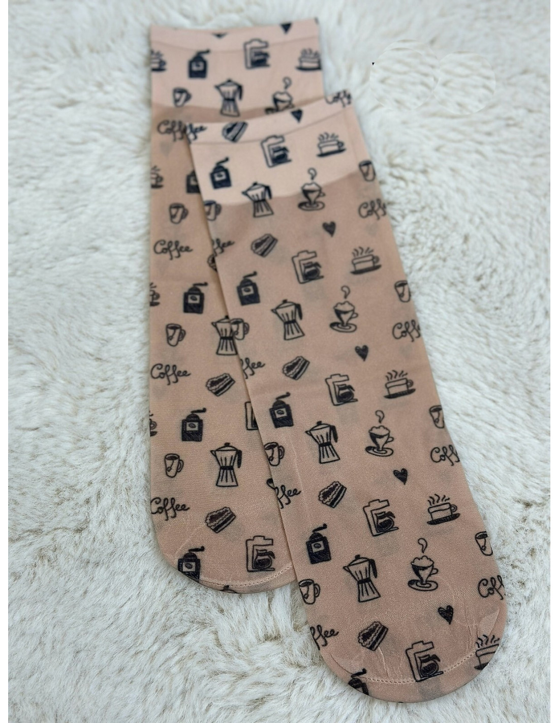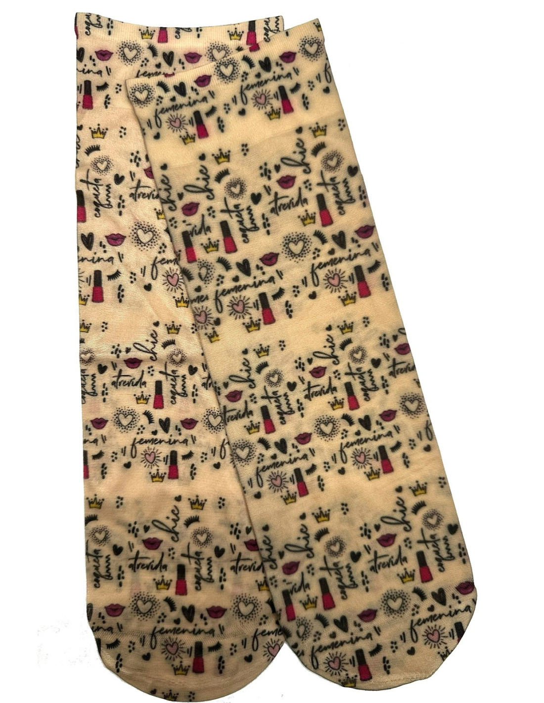 Lycra moteriškos kojinės - dekoruotos gėlių, dėmių, langelių, taškelių, širdelių, širdelių raštais - nespaudžiantis apvadas