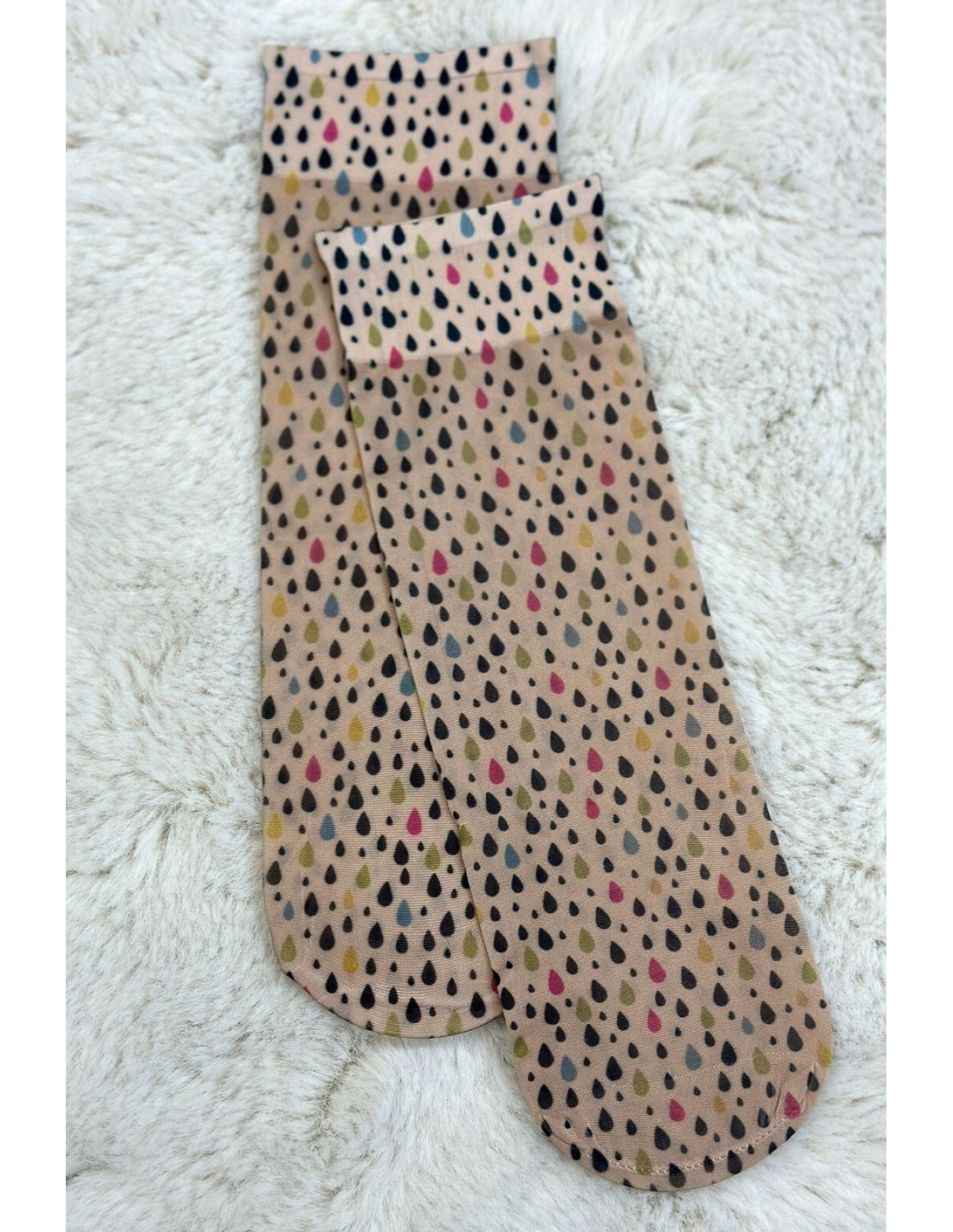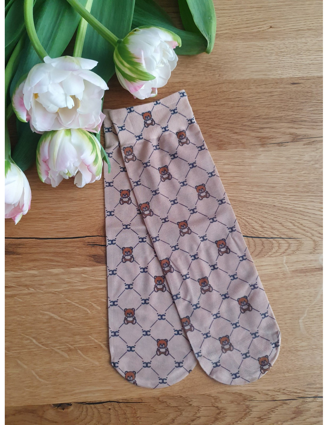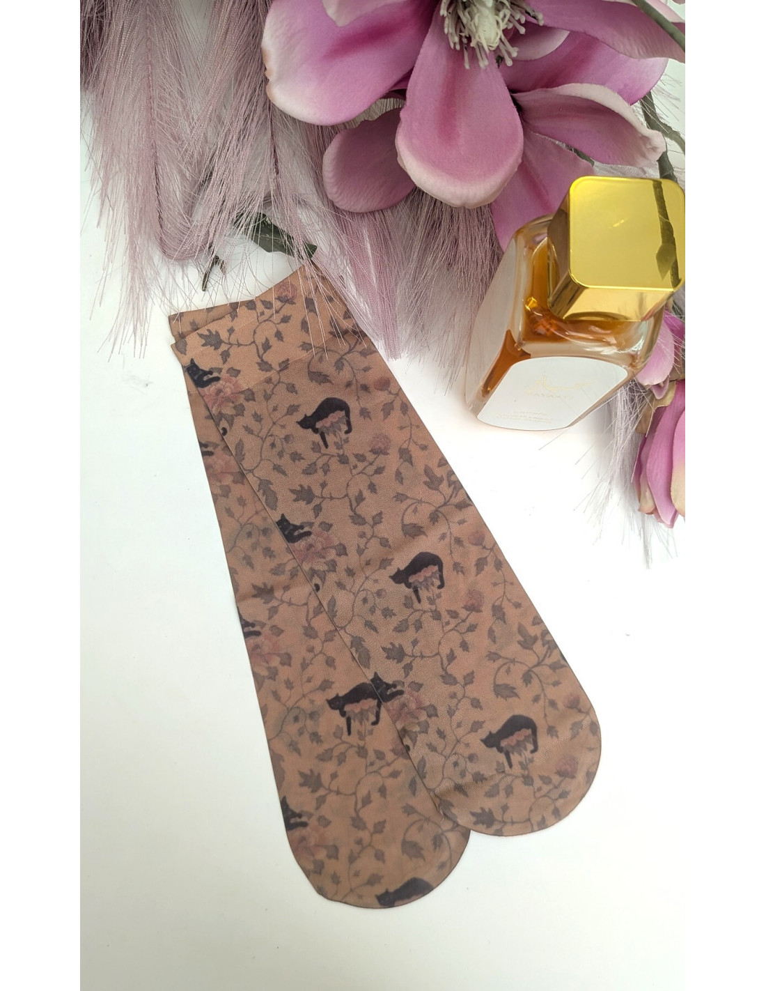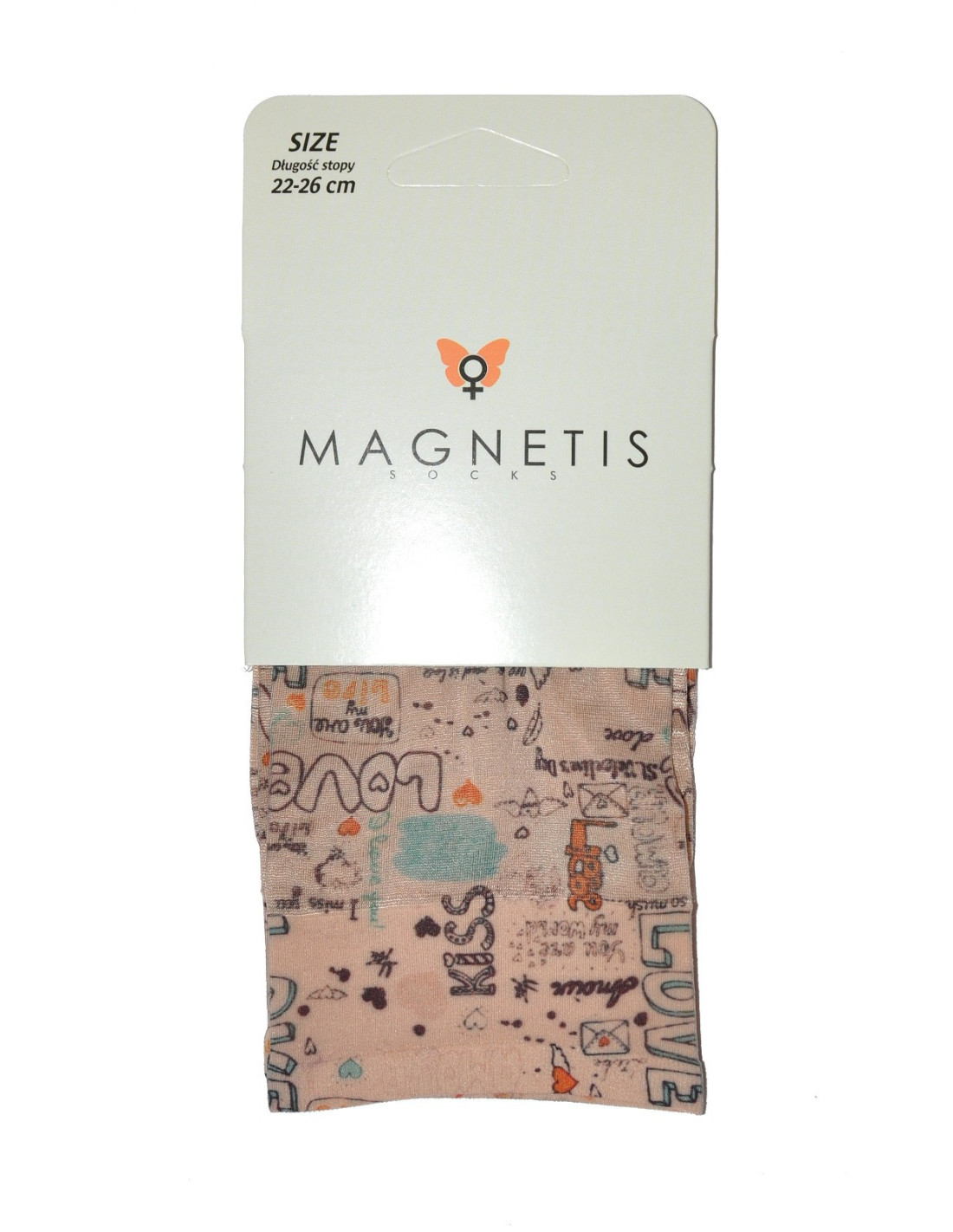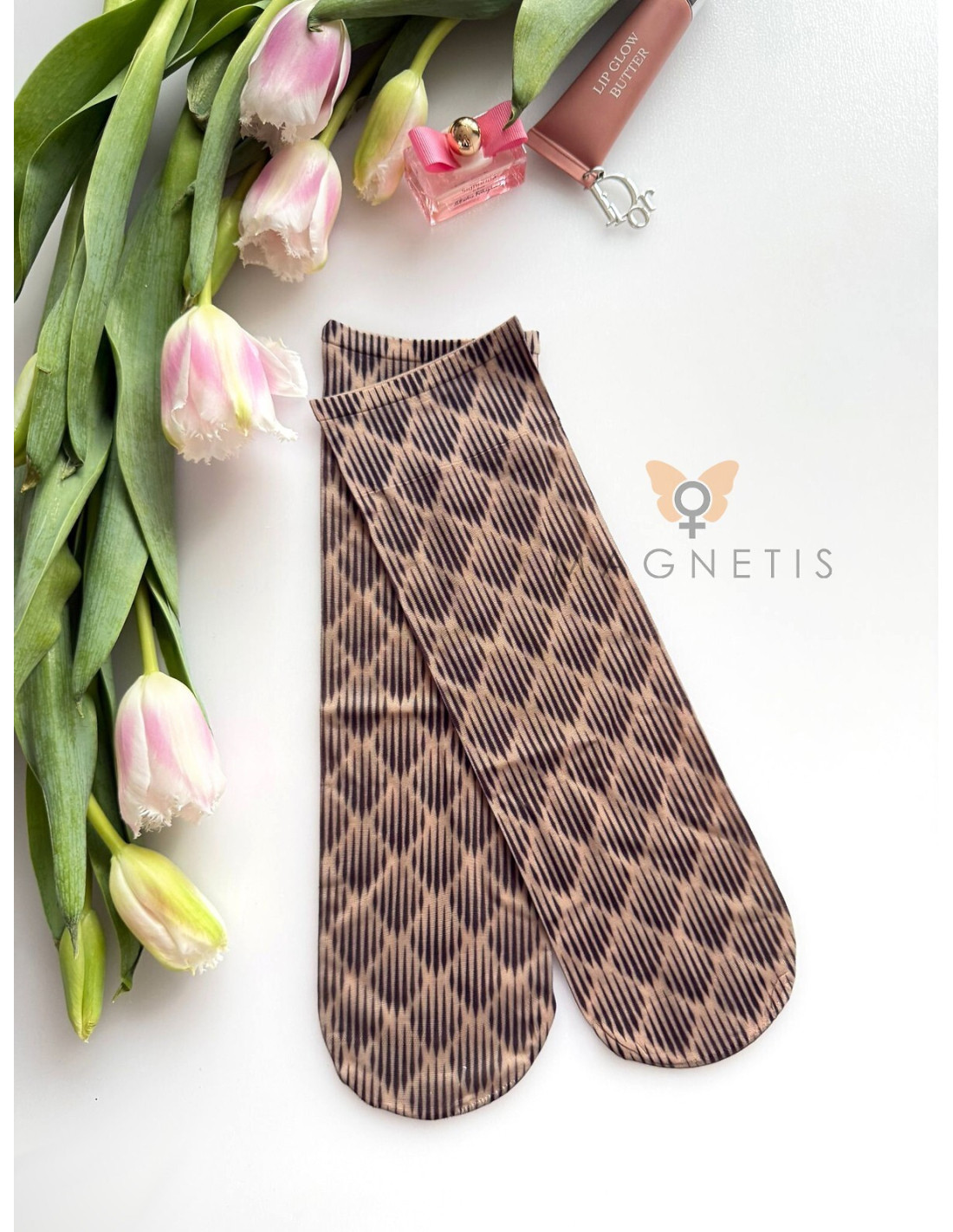 Lycra moteriškos kojinės - dekoruotos gėlių, dėmių, langelių, taškelių, širdelių, širdelių raštais - nespaudžiantis apvadas