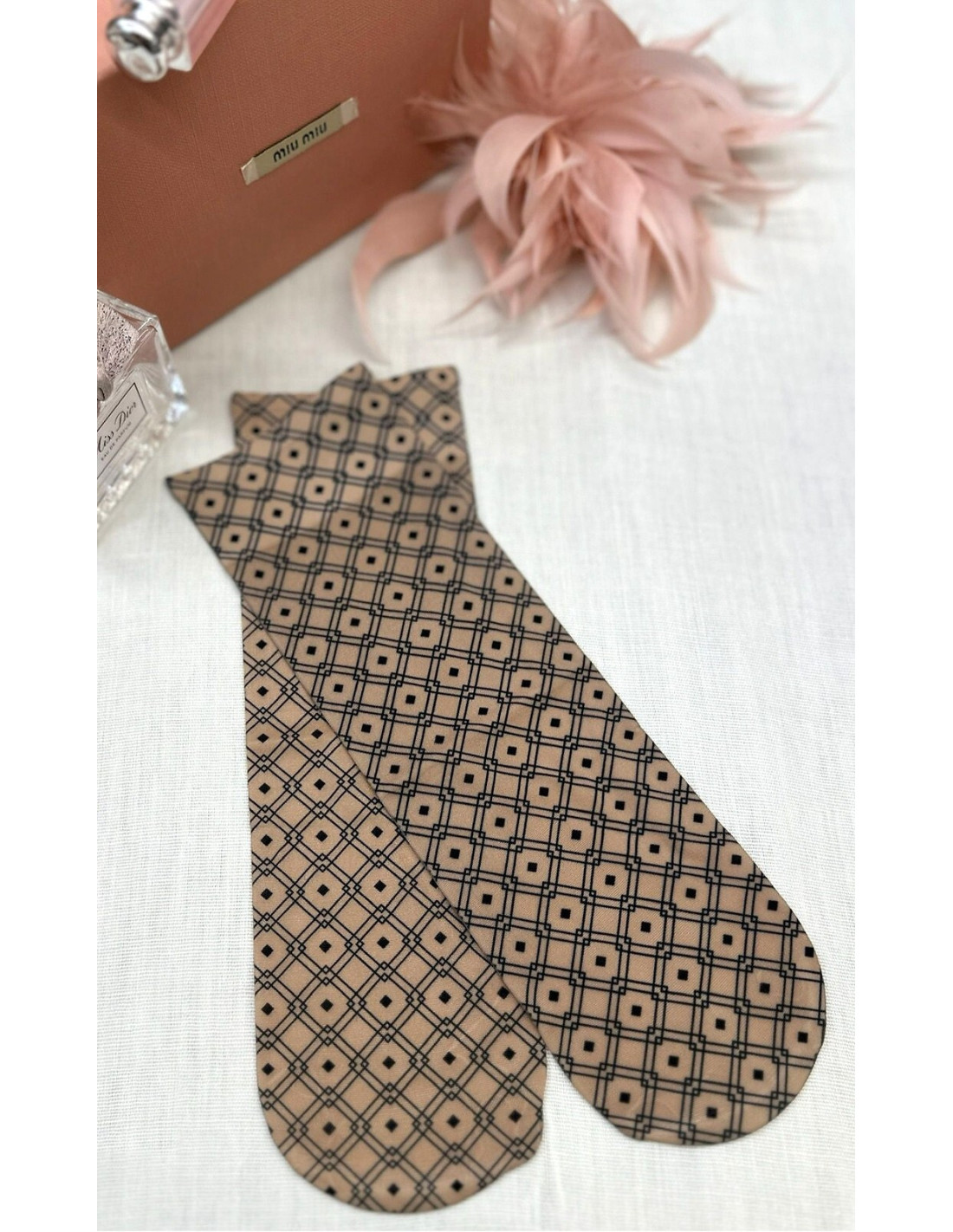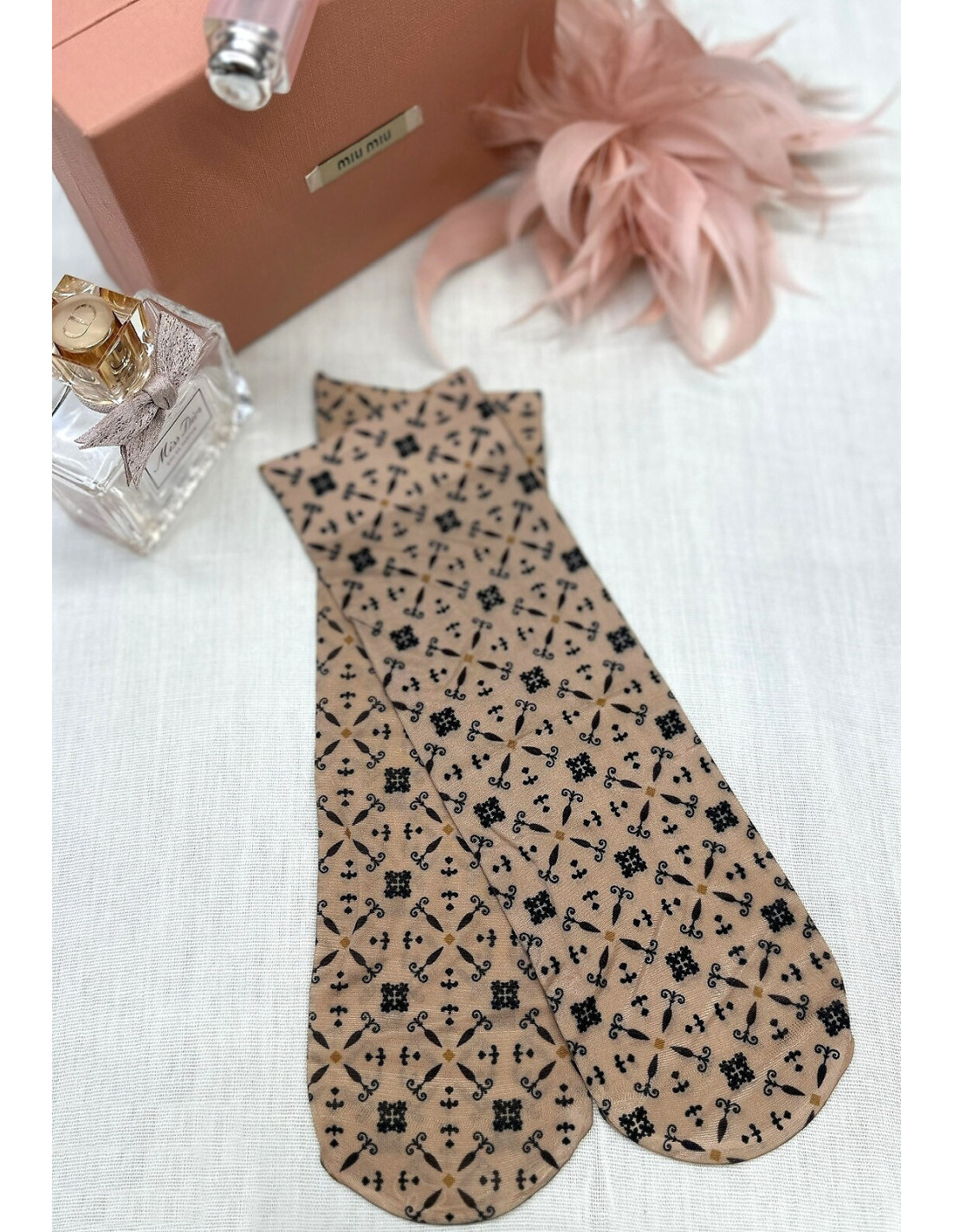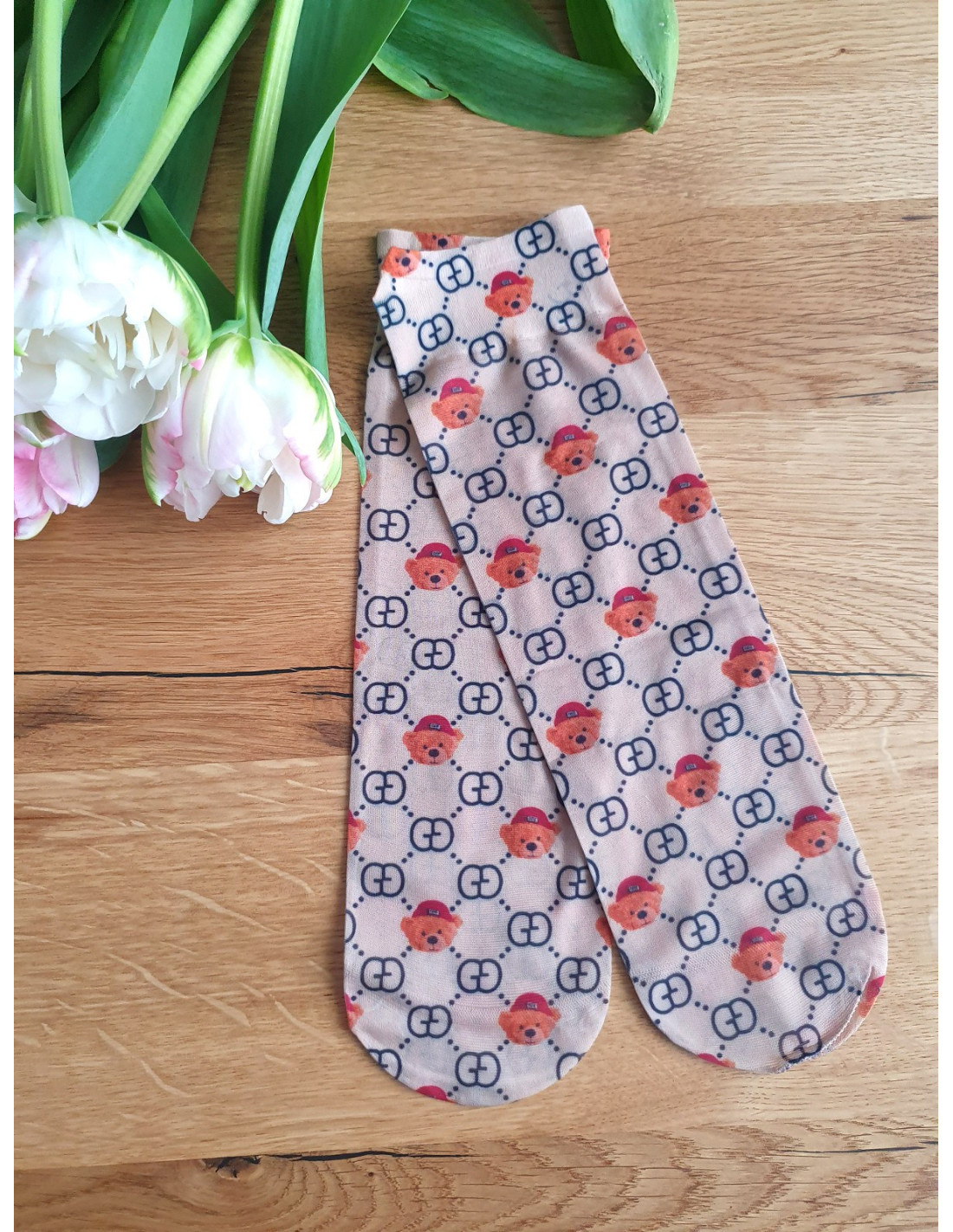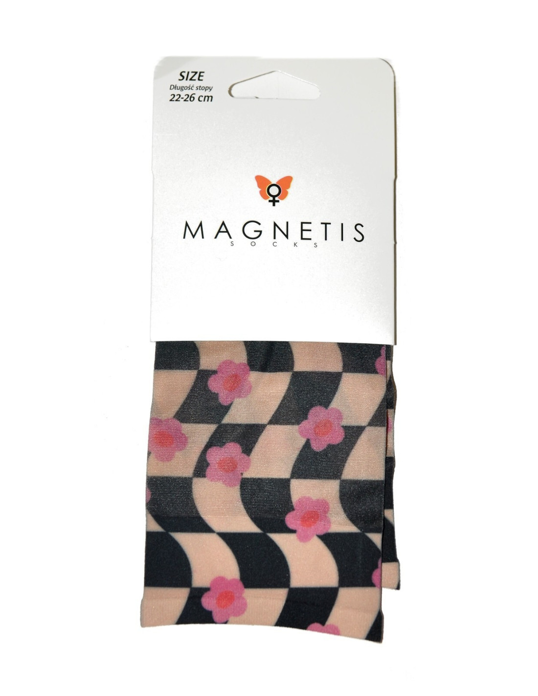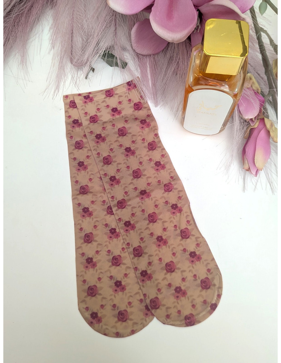 Lycra moteriškos kojinės - dekoruotos gėlių, dėmių, langelių, taškelių, širdelių, širdelių raštais - nespaudžiantis apvadas
