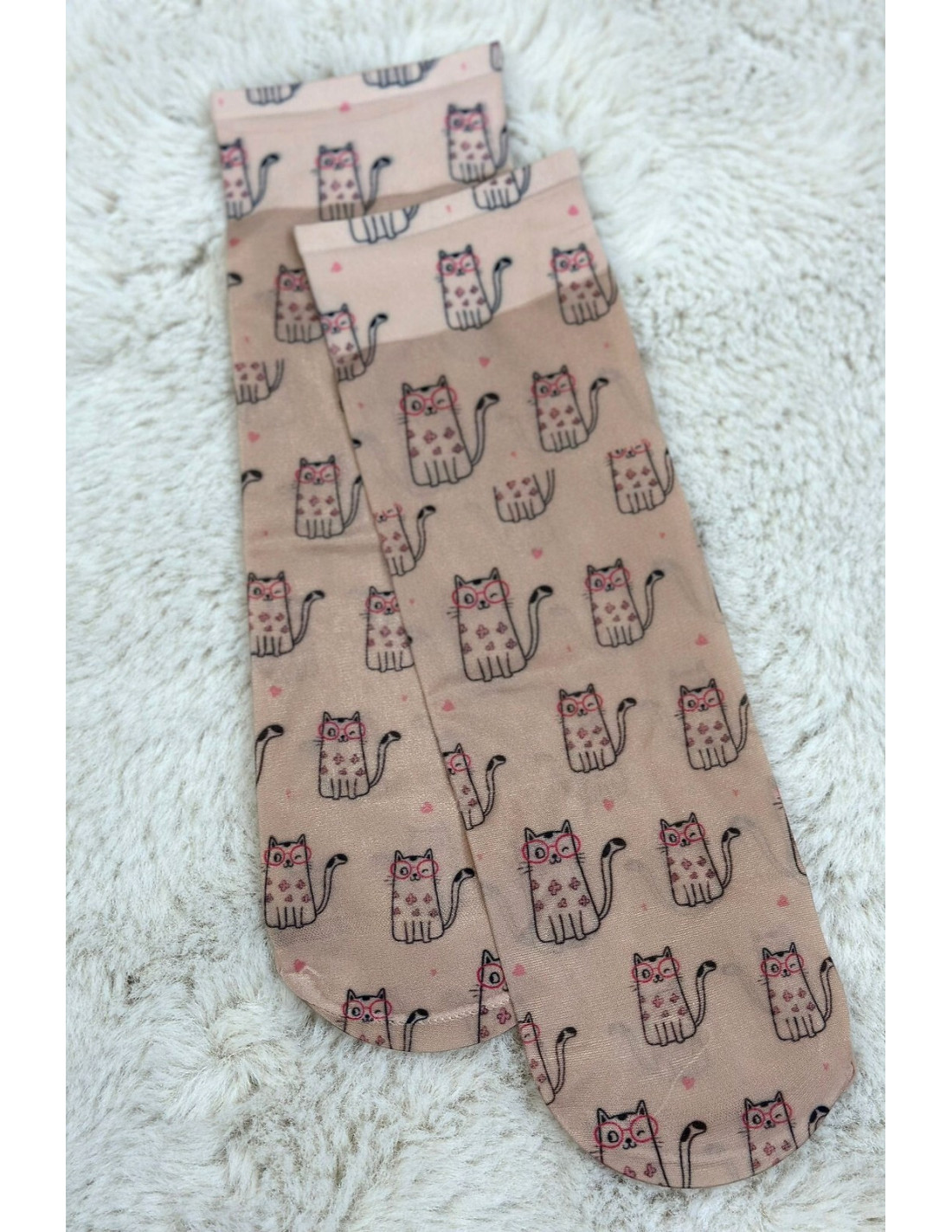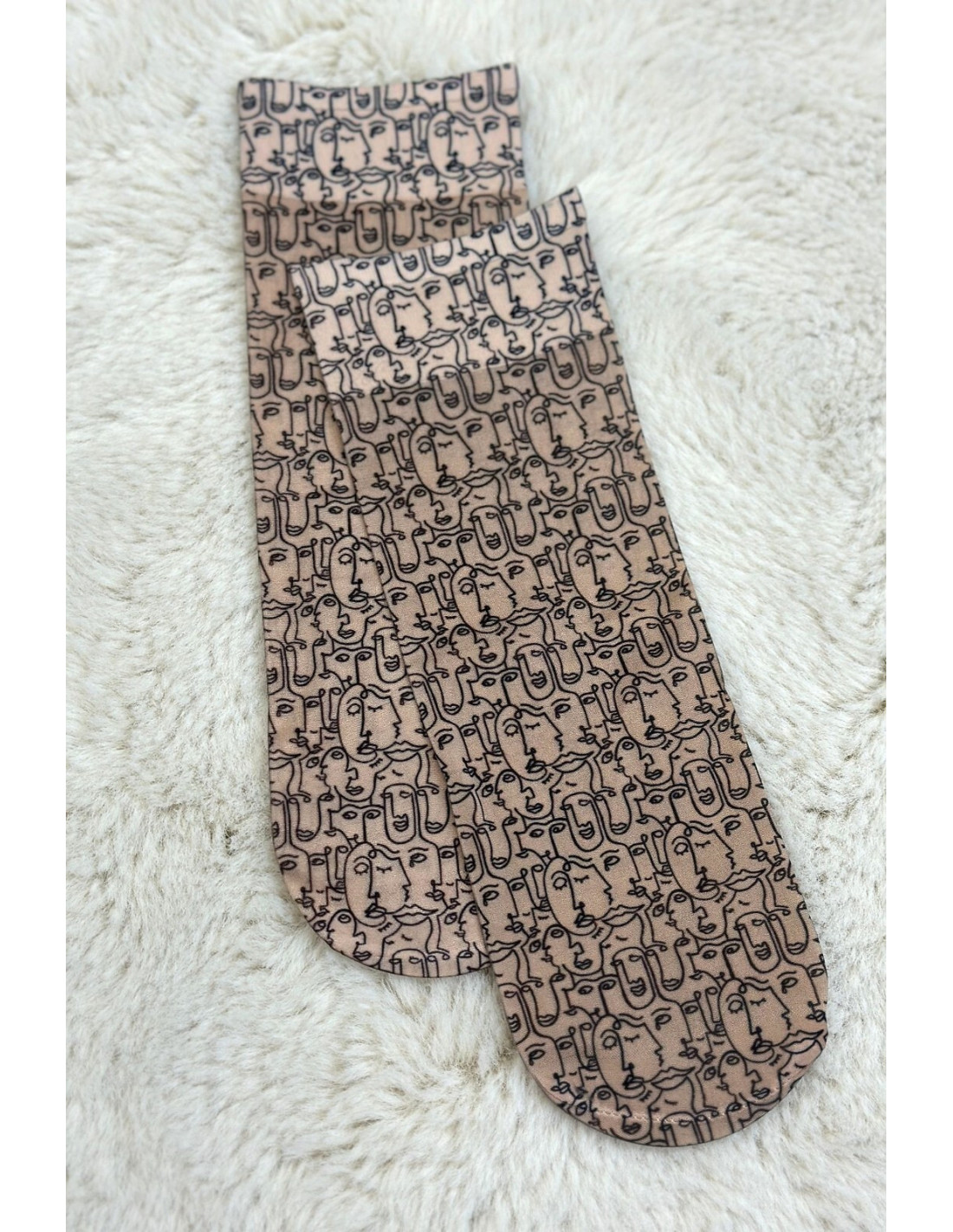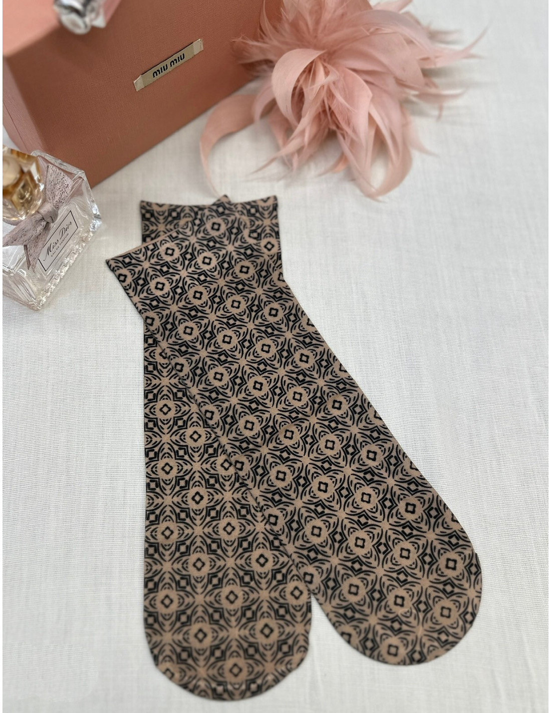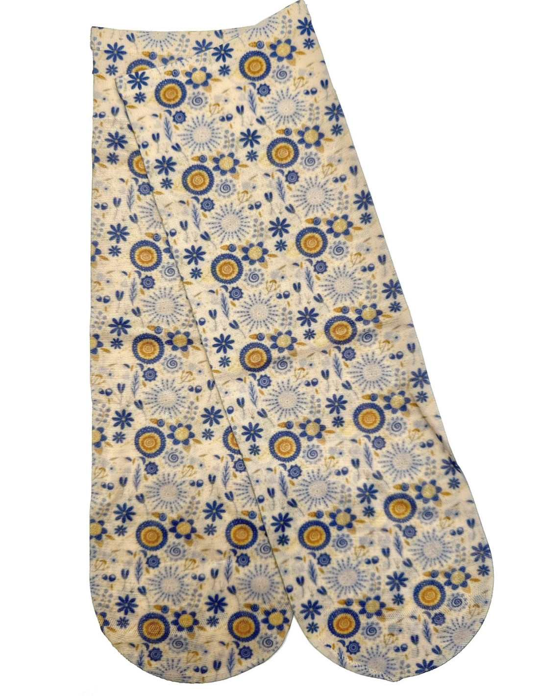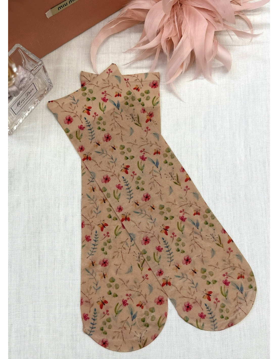 Lycra moteriškos kojinės - dekoruotos gėlių, dėmių, langelių, taškelių, širdelių, širdelių raštais - nespaudžiantis apvadas