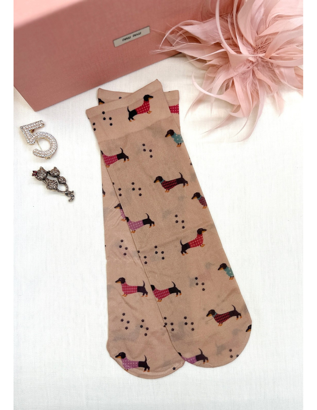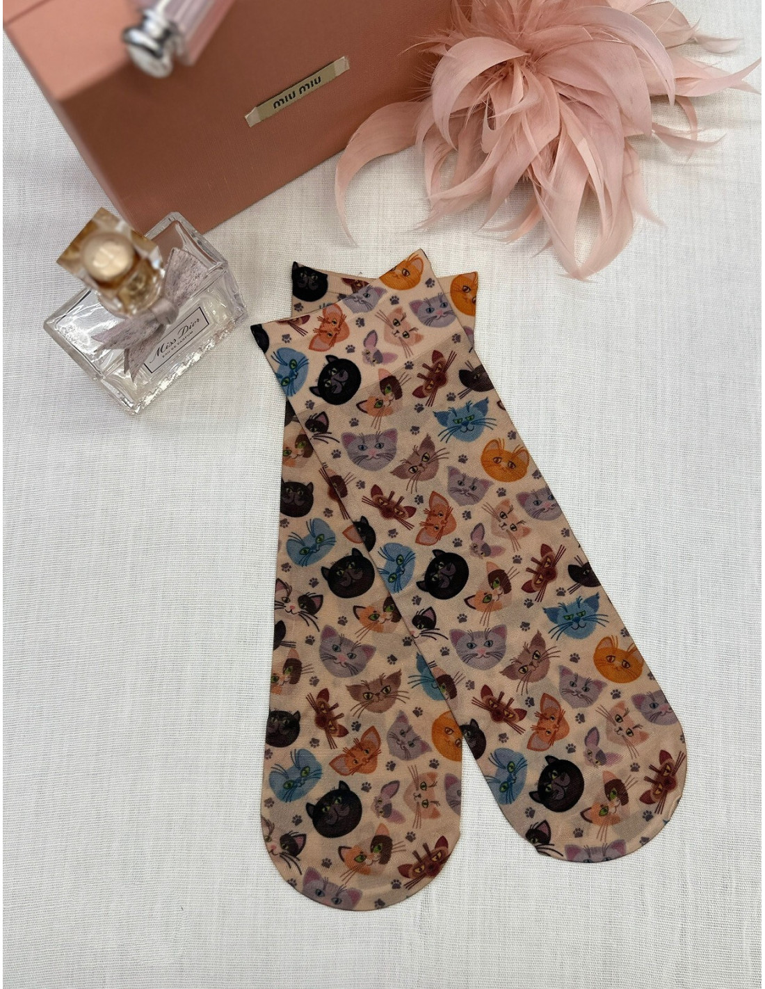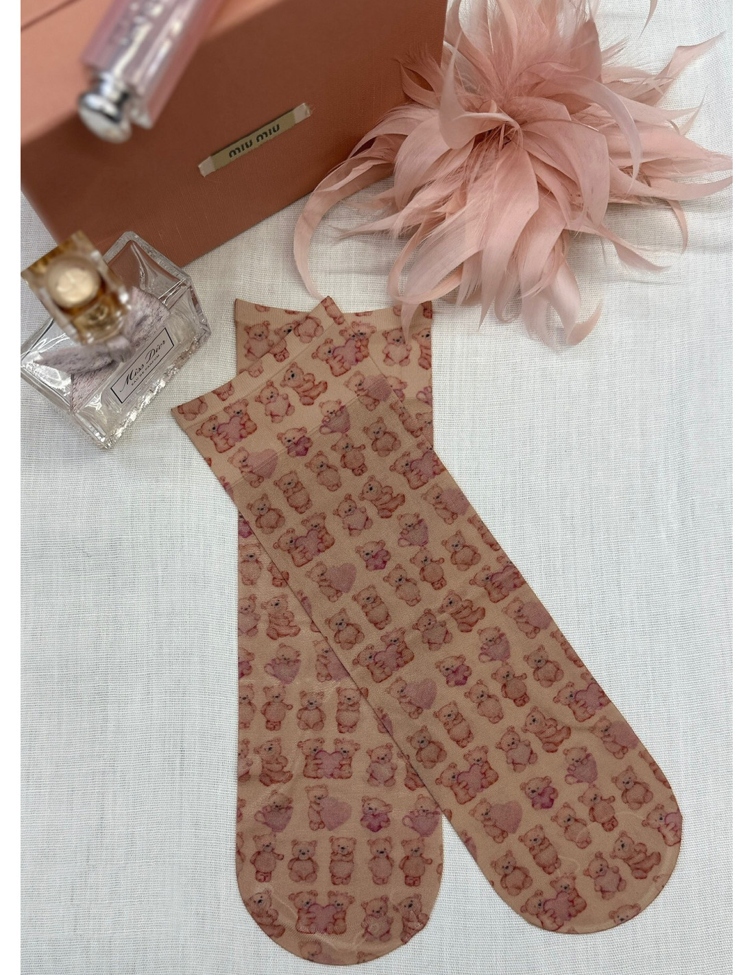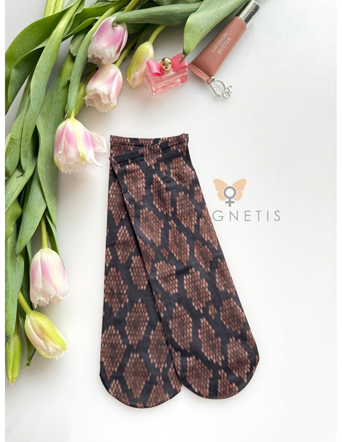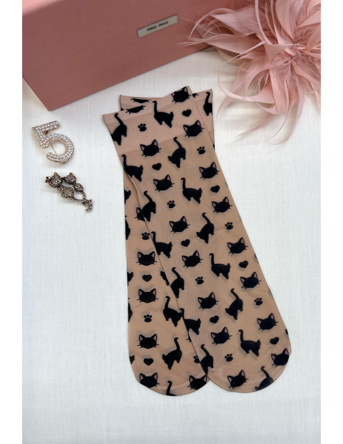 Lycra moteriškos kojinės - dekoruotos gėlių, dėmių, langelių, taškelių, širdelių, širdelių raštais - nespaudžiantis apvadas
