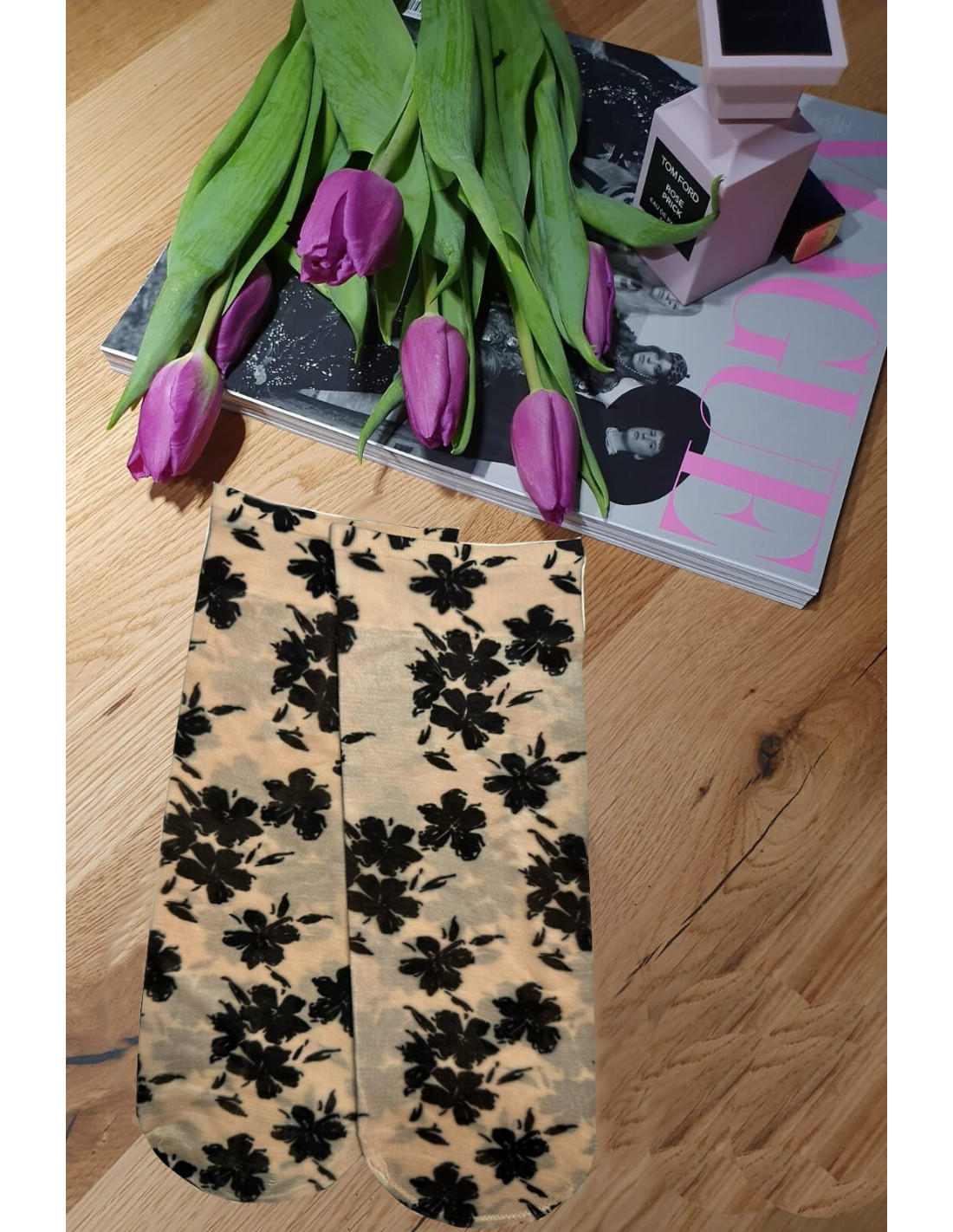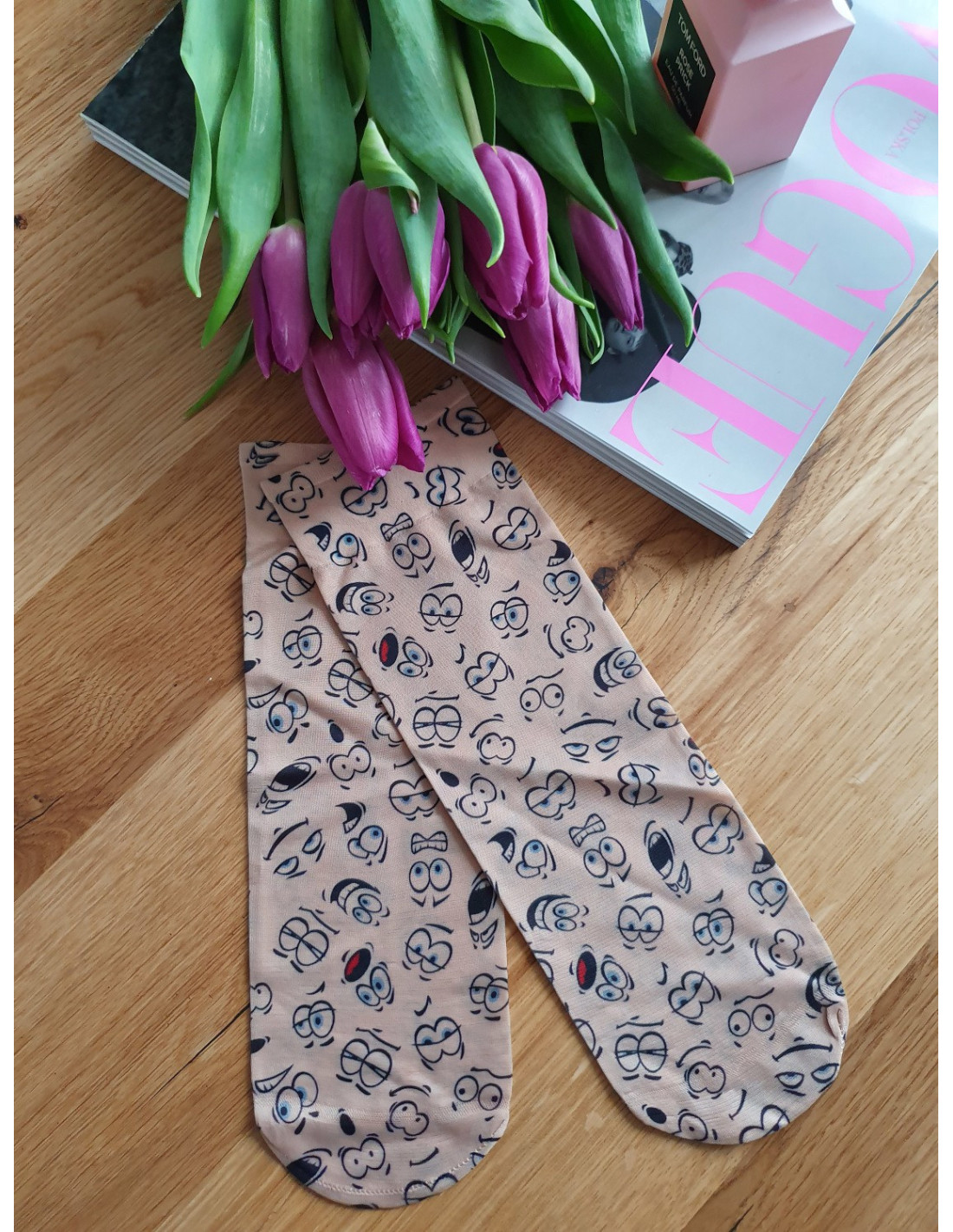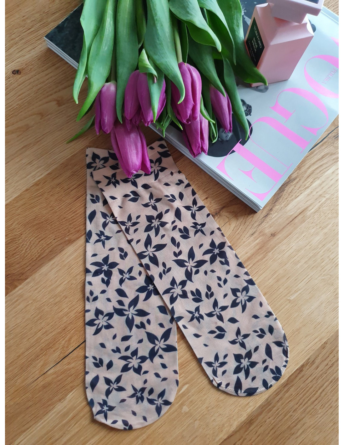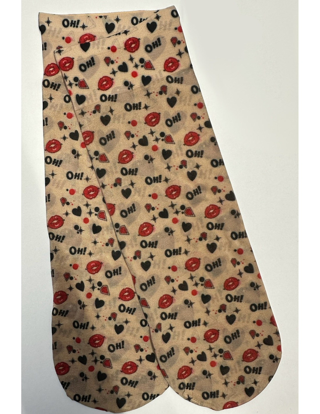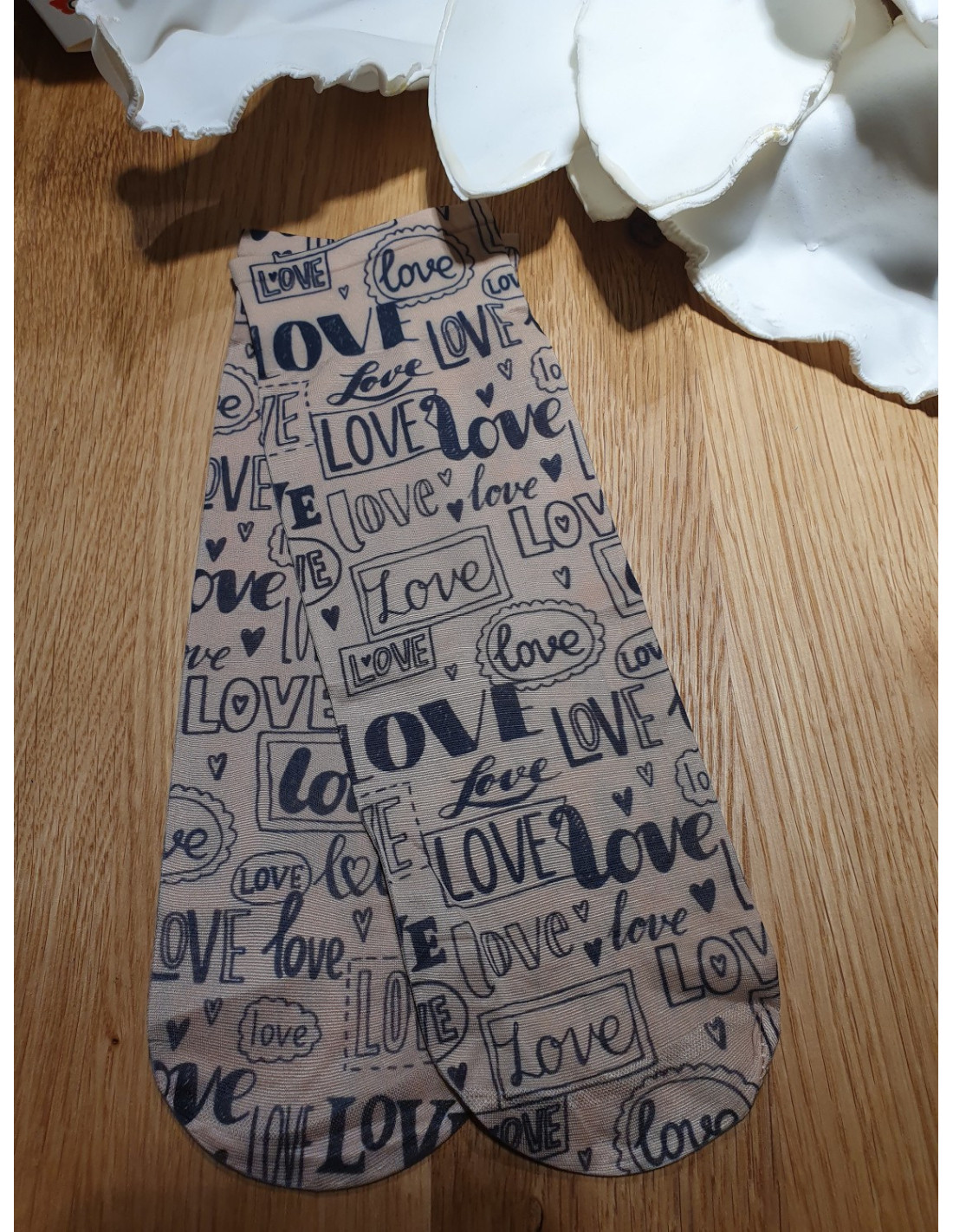 Lycra moteriškos kojinės - dekoruotos gėlių, dėmių, langelių, taškelių, širdelių, širdelių raštais - nespaudžiantis apvadas