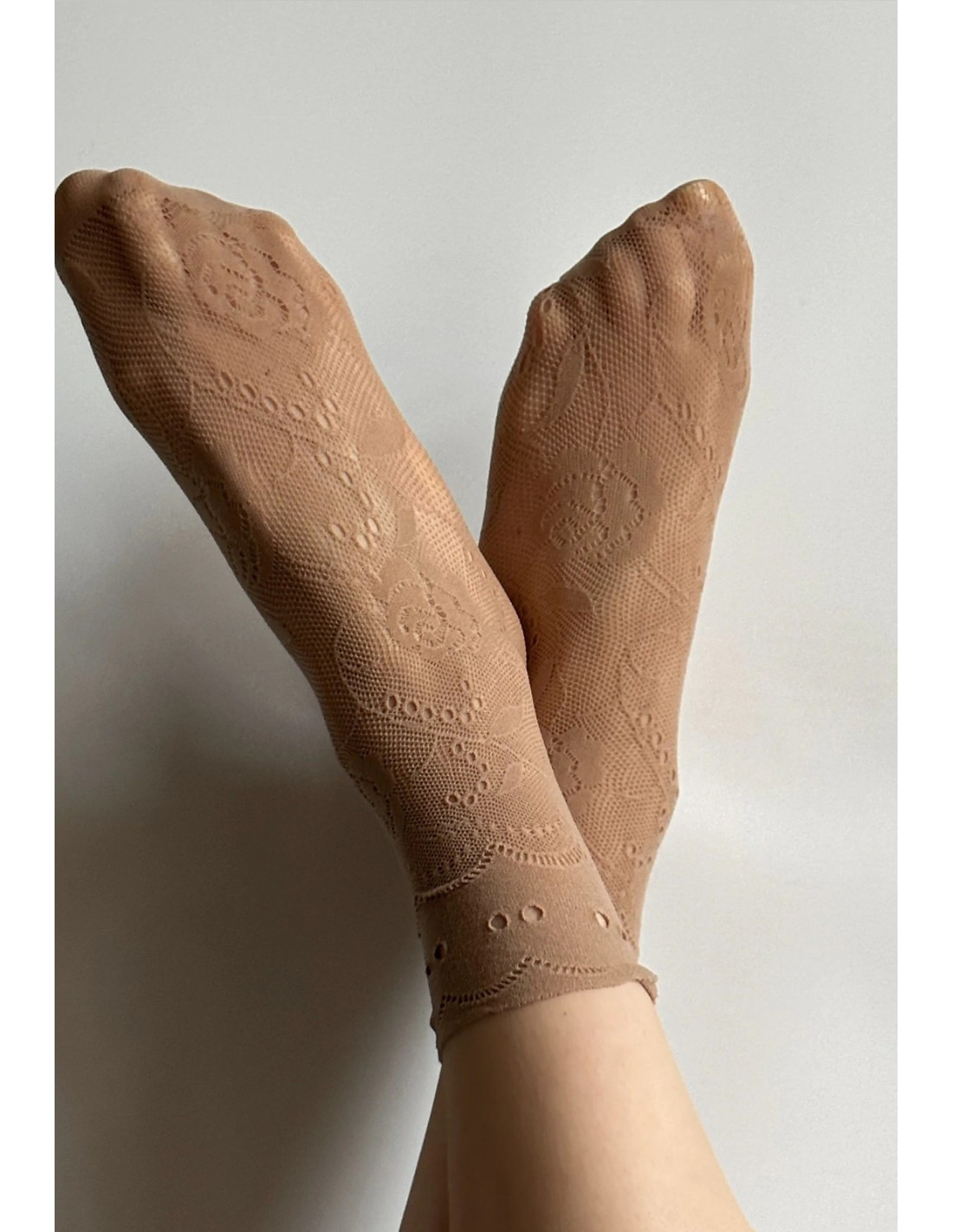Moteriškos kojinės - dekoruotos ažūriniu raštu