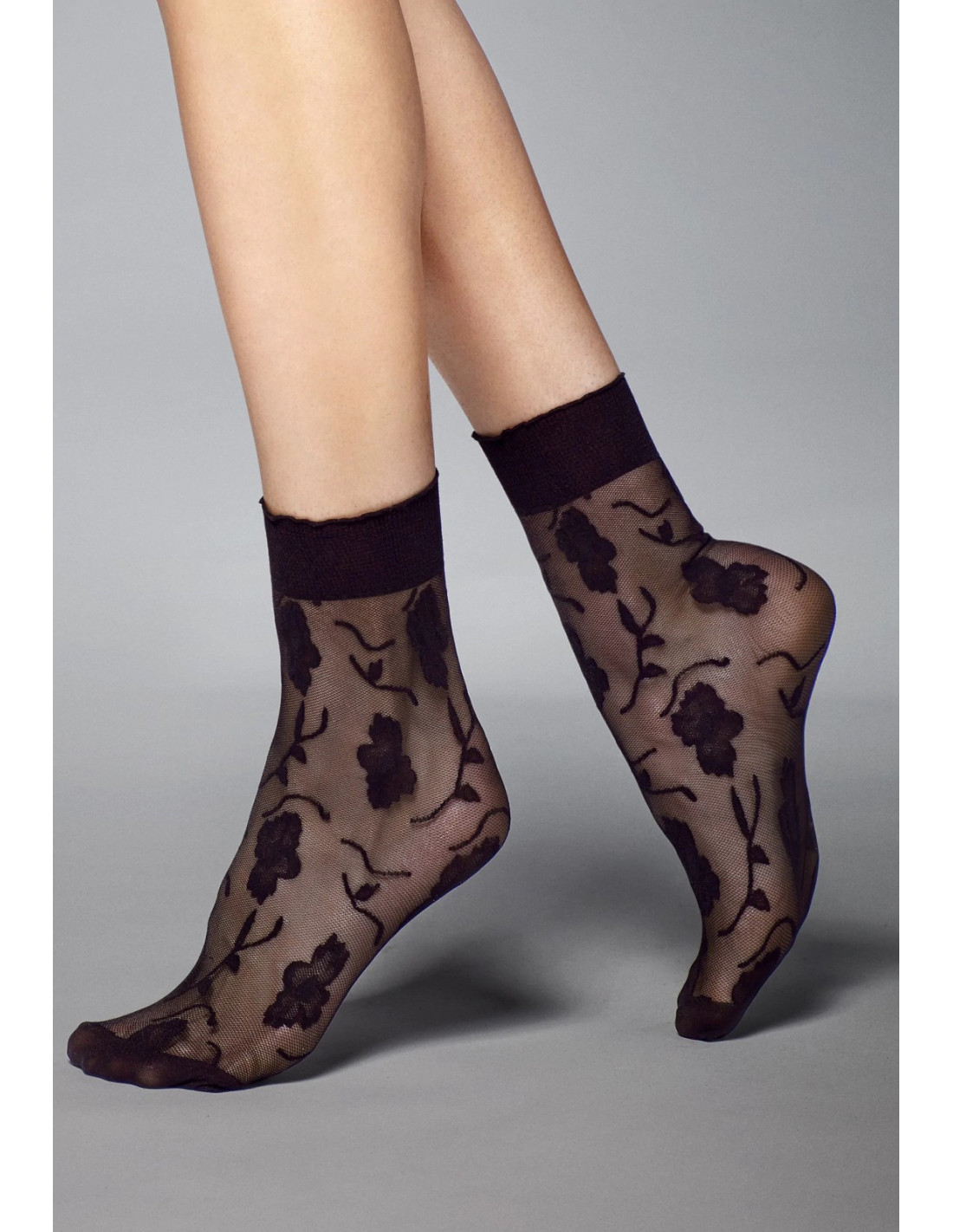 Plonos moteriškos kojinės - dekoruotos gėlių raštu - sustiprinta pirštų dalis - patogus raištis