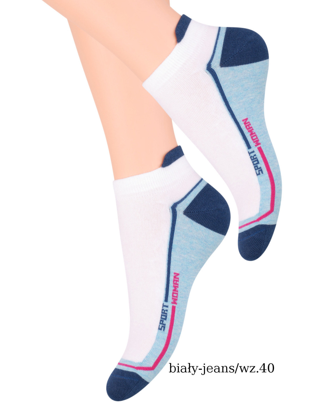 Moteriška medvilninė avalynė - sportinis stilius - su liežuvėliu ant batviršio - turtingi dizainai ir spalvos - lengvi ir erdvūs Sudėtis priklauso nuo dizaino: sudėtis: medvilnė 73-61%, poliamidas 24-30%, polipropilenas 1-8%, elastanas 2-3%, elastodienas 1%
