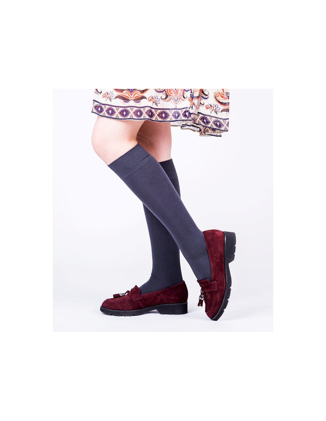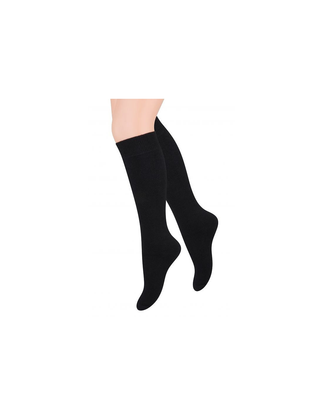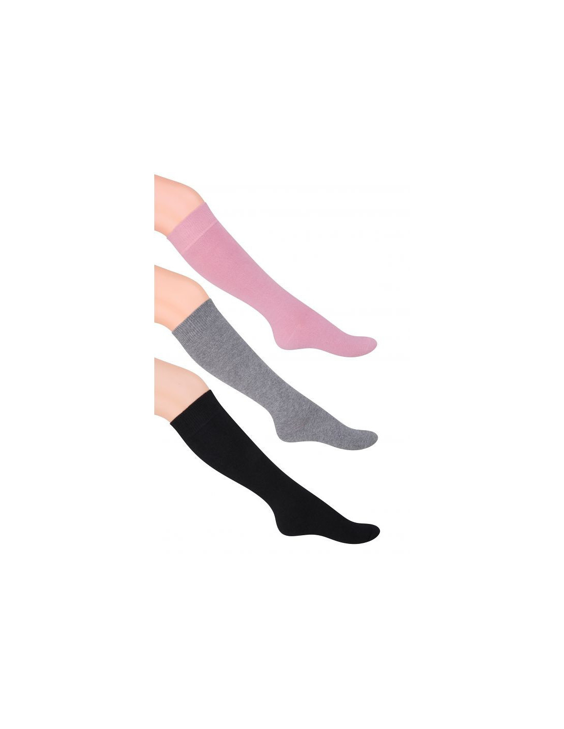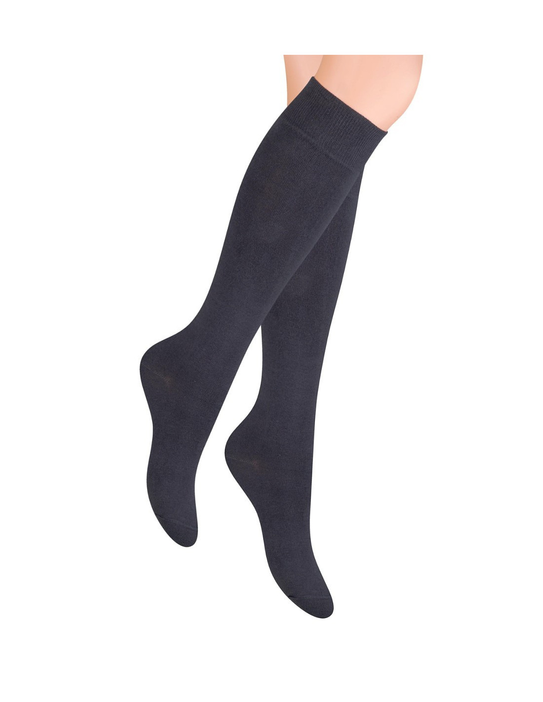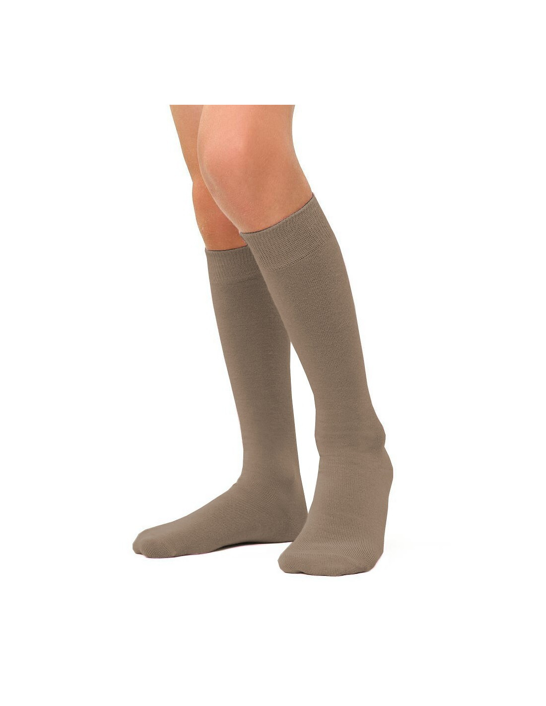 Medvilninės kojinės iki kelių jaunimui su elastiniu pluoštu - lygios, vienodos, su nespaudžiančia apačia - sudėtis, priklausomai nuo spalvos: 65-70 % medvilnės, 26-27 % poliamido, 4 % polipropileno, 3-5 % elastano