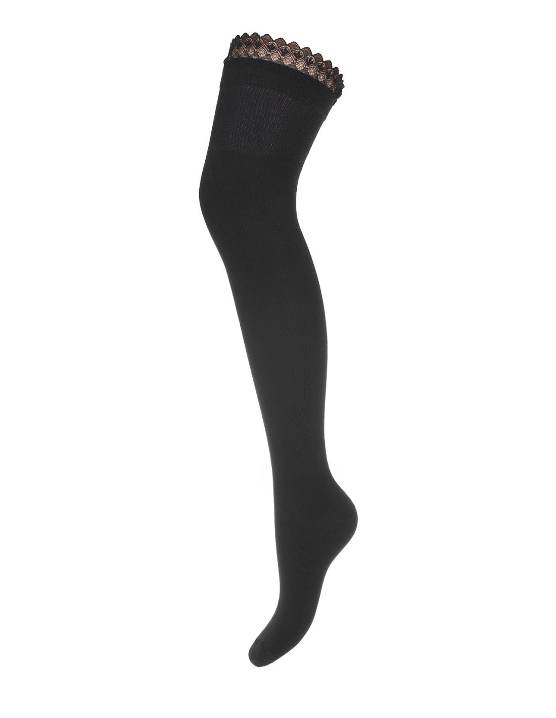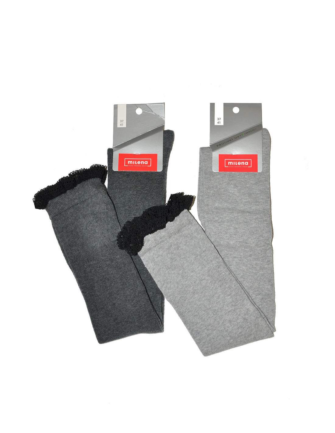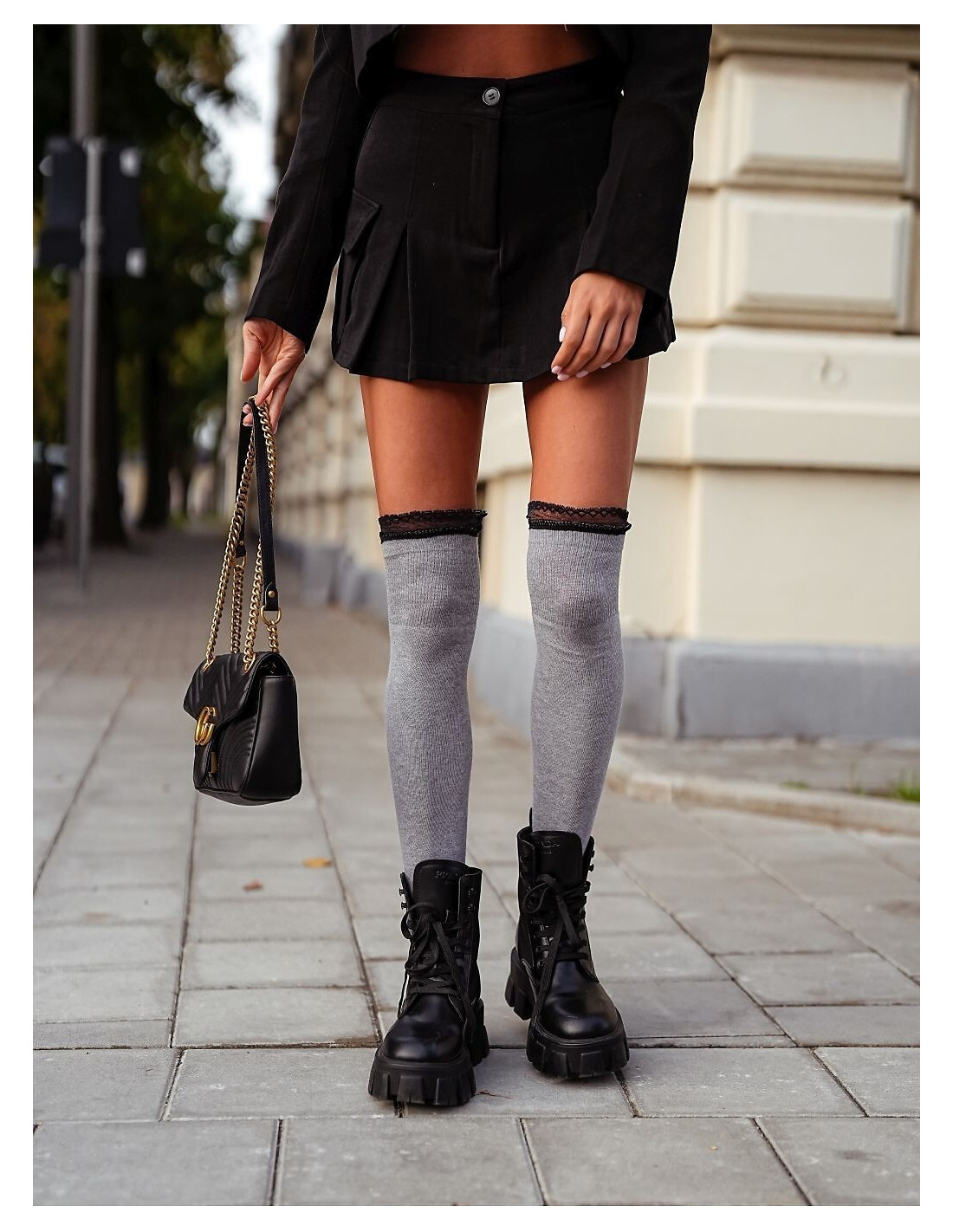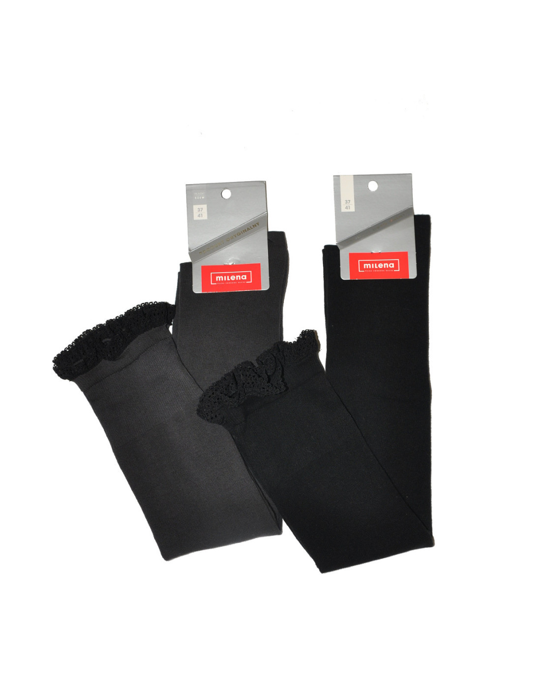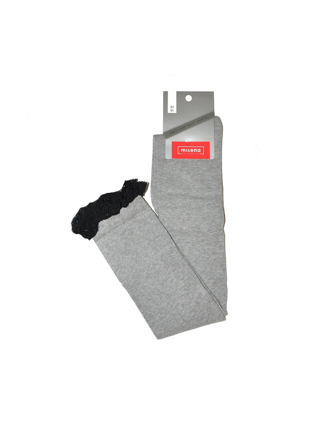 Moteriškos kojinės iki kelių - pagamintos iš aukštos kokybės medvilnės 75 %, poliamido 20 % ir elastano - juostelės dekoruotos ažūriniais nėriniais