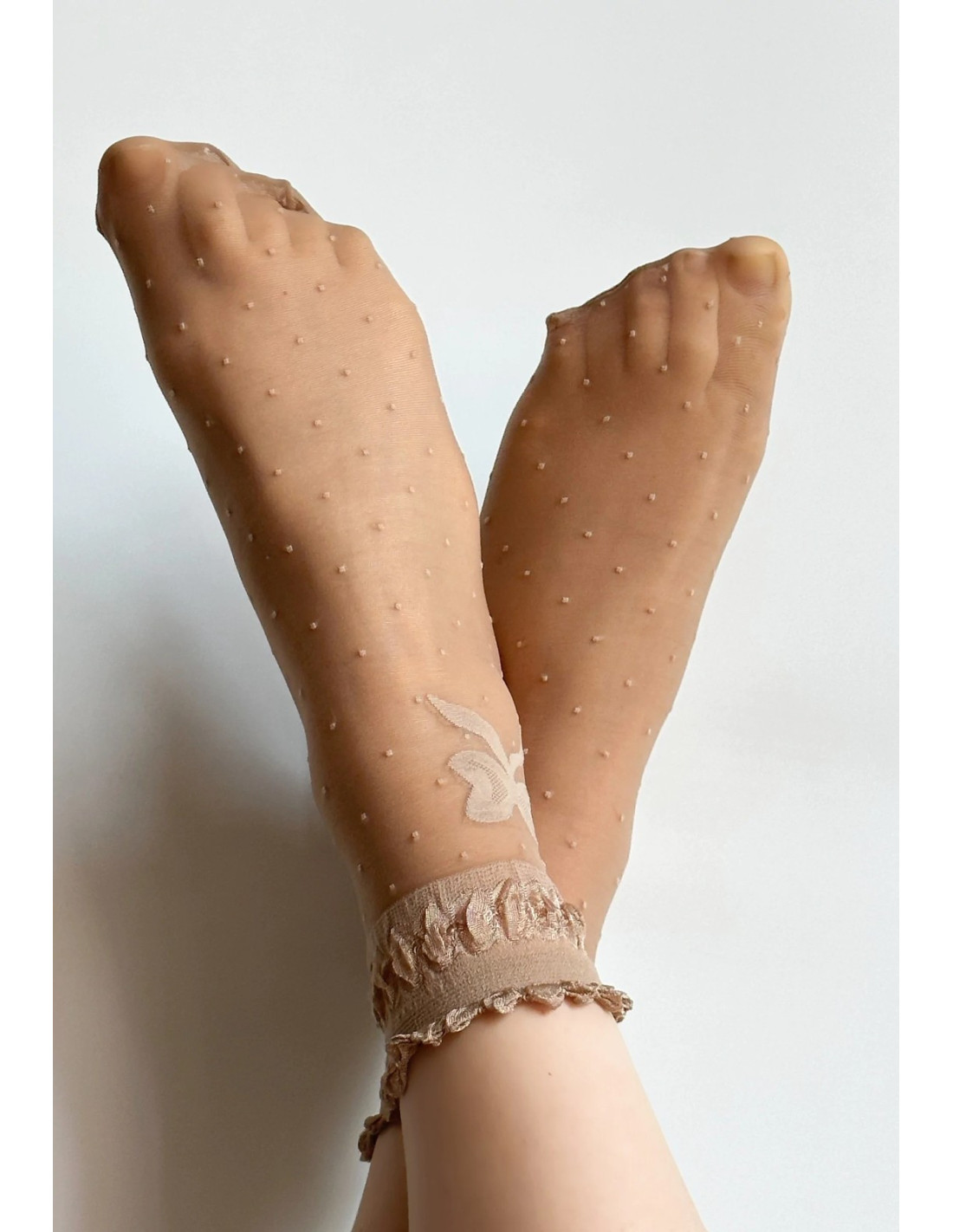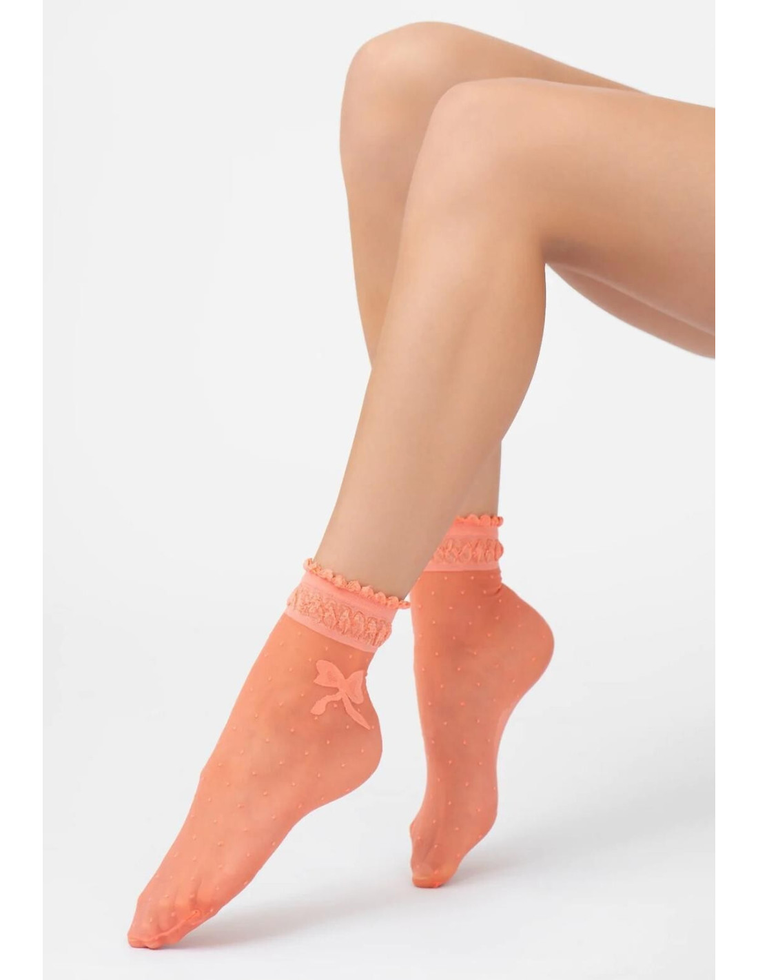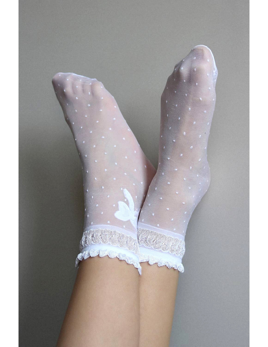 Plonos raštuotos moteriškos kojinės - su dekoratyviniu kaspinu - universalus dydis