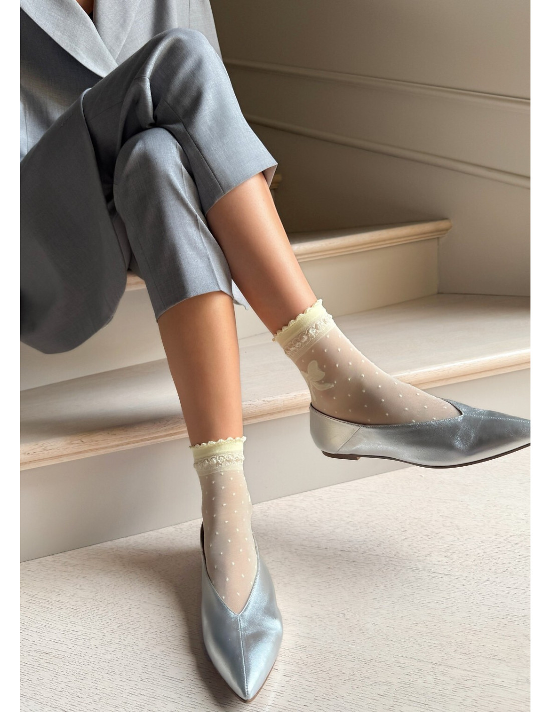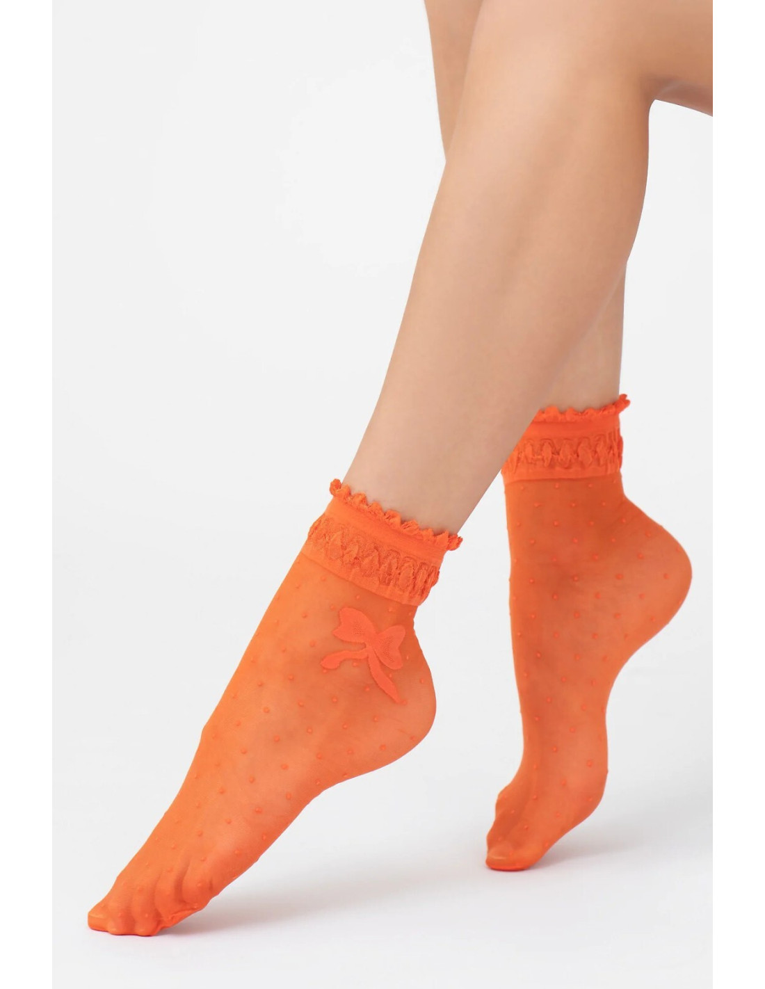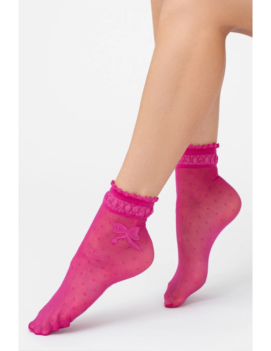 Plonos raštuotos moteriškos kojinės - su dekoratyviniu kaspinu - universalus dydis